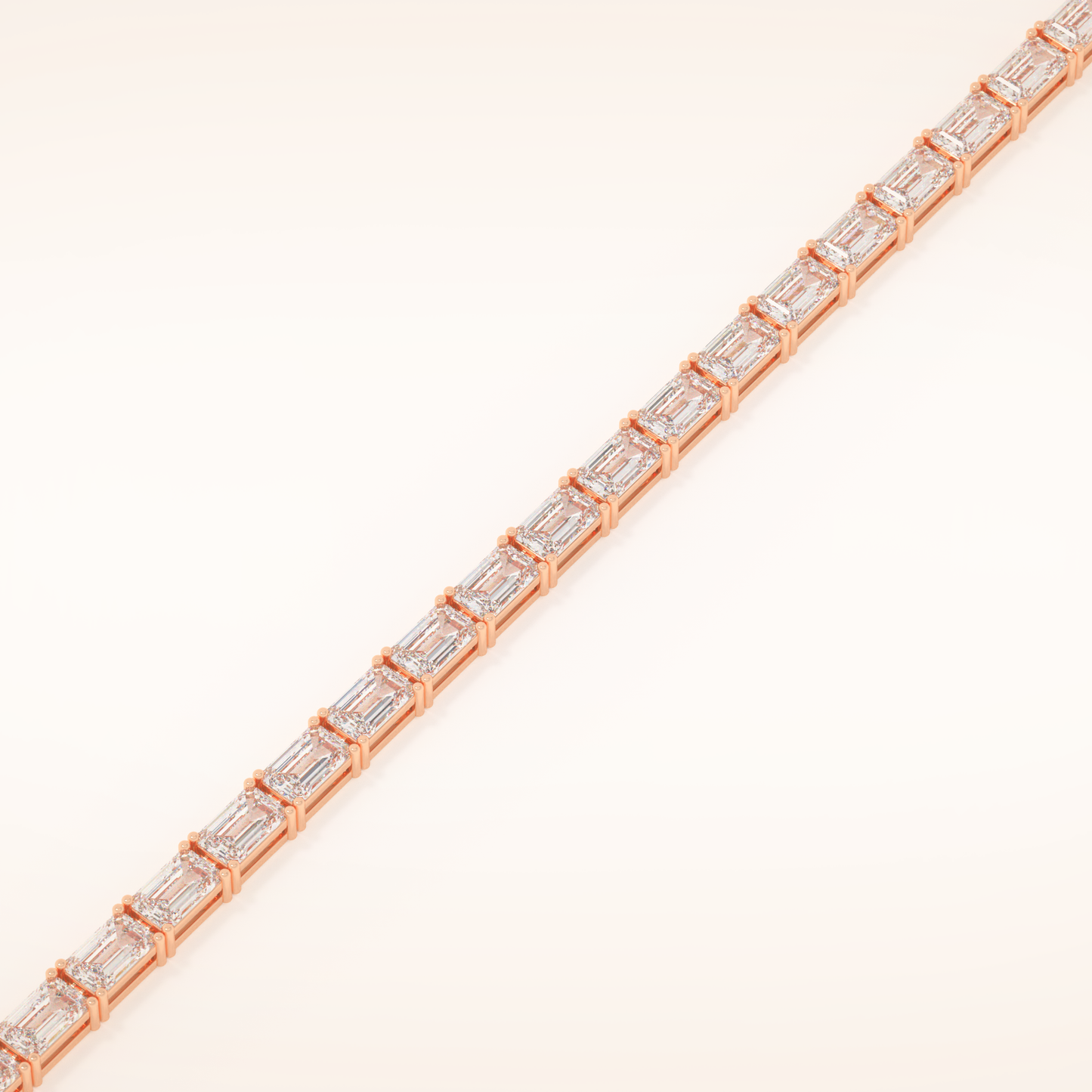 This bracelet showcases ethically grown lab-created emerald cut diamonds celebrated for their sharp symmetry and refined brilliance. With total diamond weights ranging from 8.38 carats, each stone is selected in EF color and VS1 clarity, offering luminous sparkle with no visible inclusions.