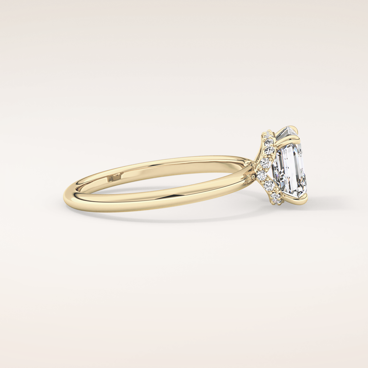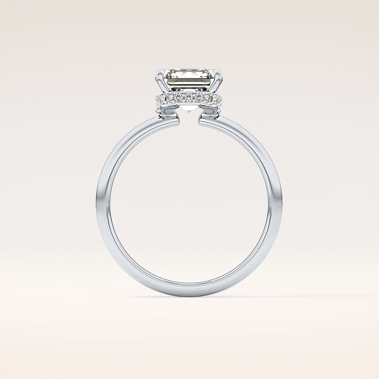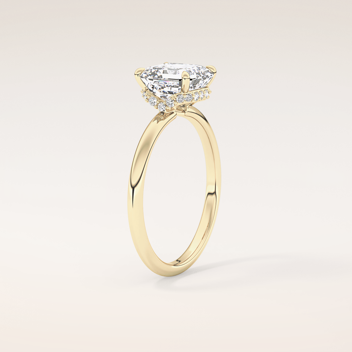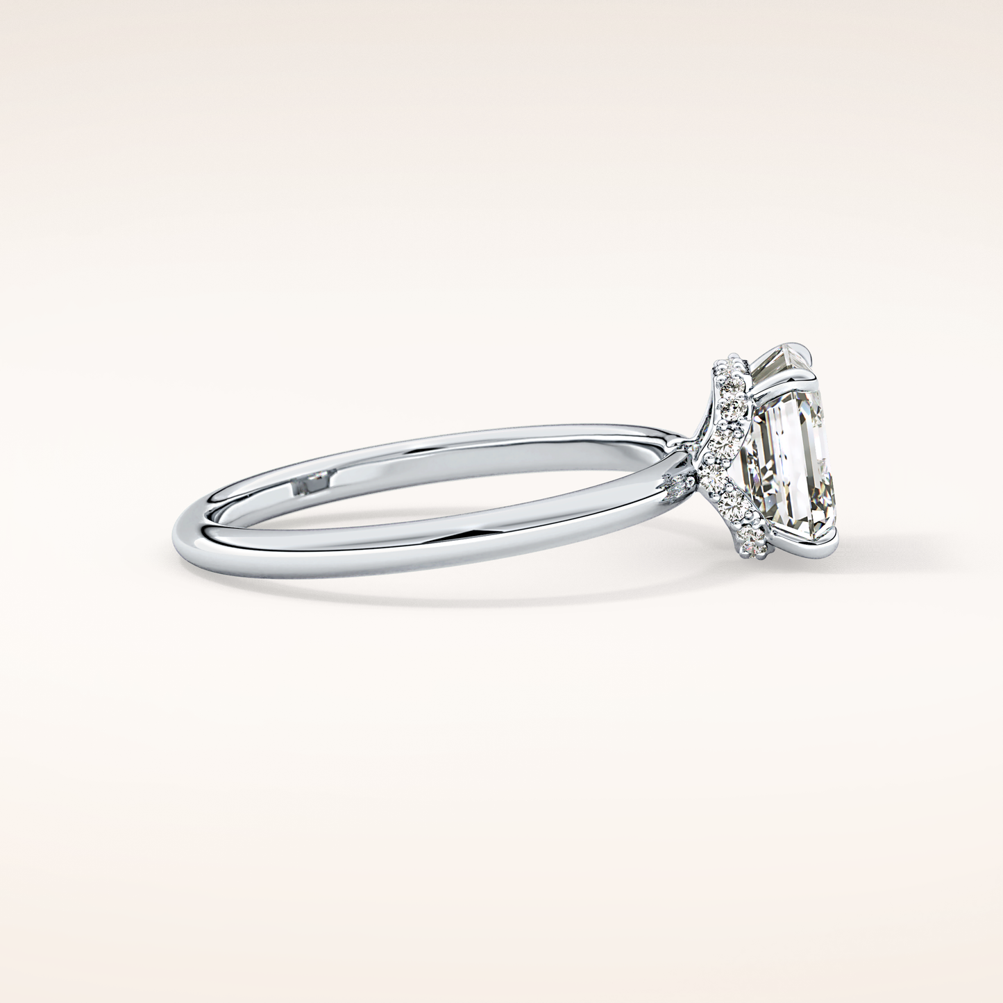 A luminous Asscher-cut lab grown diamond sits at the center, capturing light with extraordinary fire. It is gracefully balanced by a 0.1 TCW Round side diamond that adds depth, dimension, and a soft, romantic glow. The band is thoughtfully accented with two additional stones, creating a seamless sparkle that dances with every movement. Choose your perfect metal in 14KT or 18KT, available in Yellow, White, or Rose Gold.