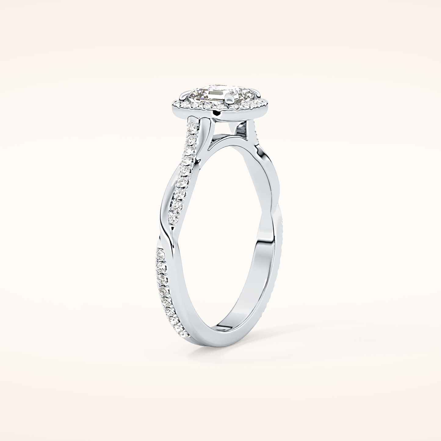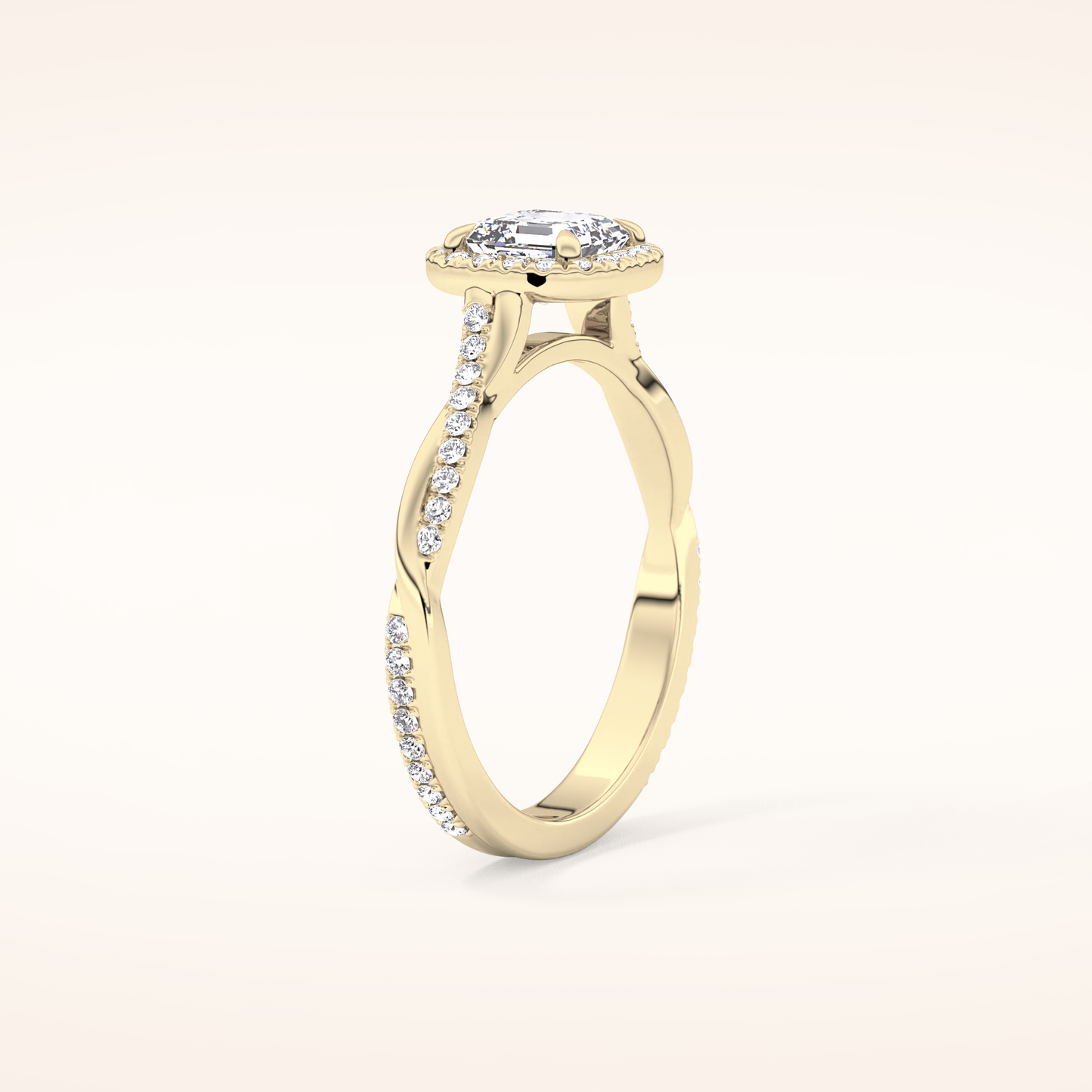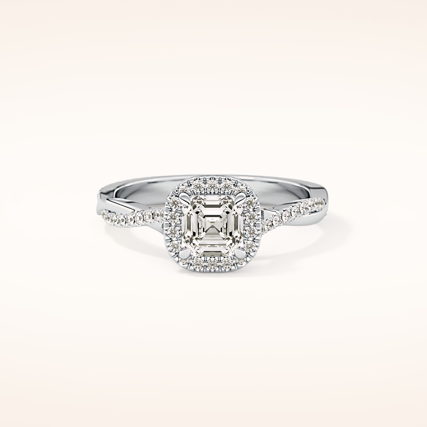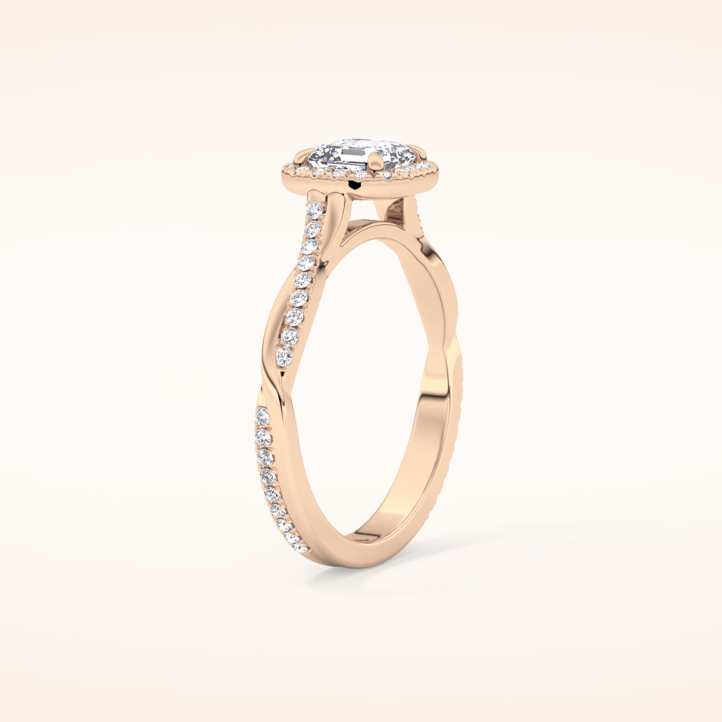 Asscher Twisted Shank, Halo and Pave Lab Grown Diamond Engagement Ring