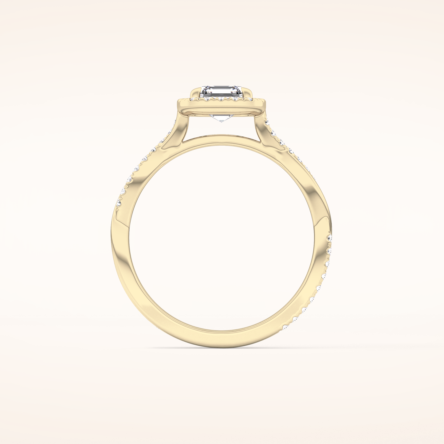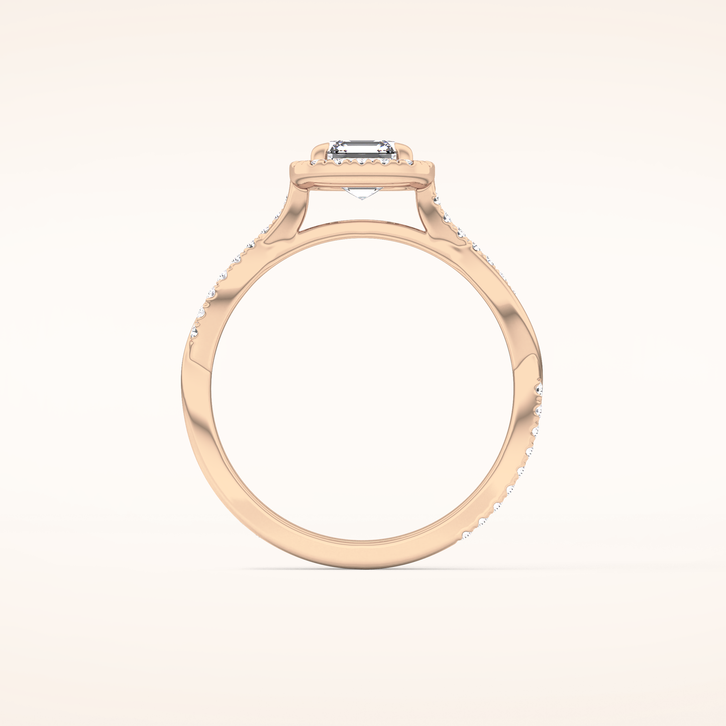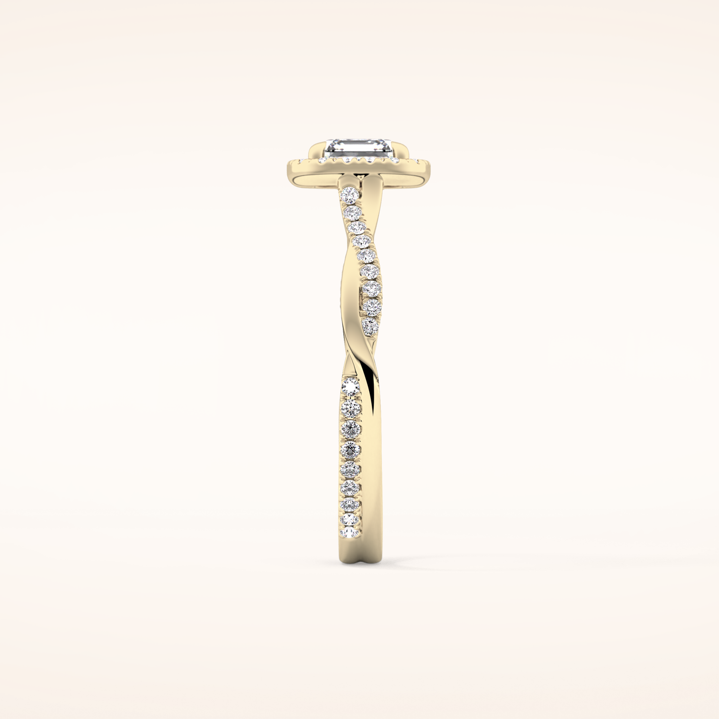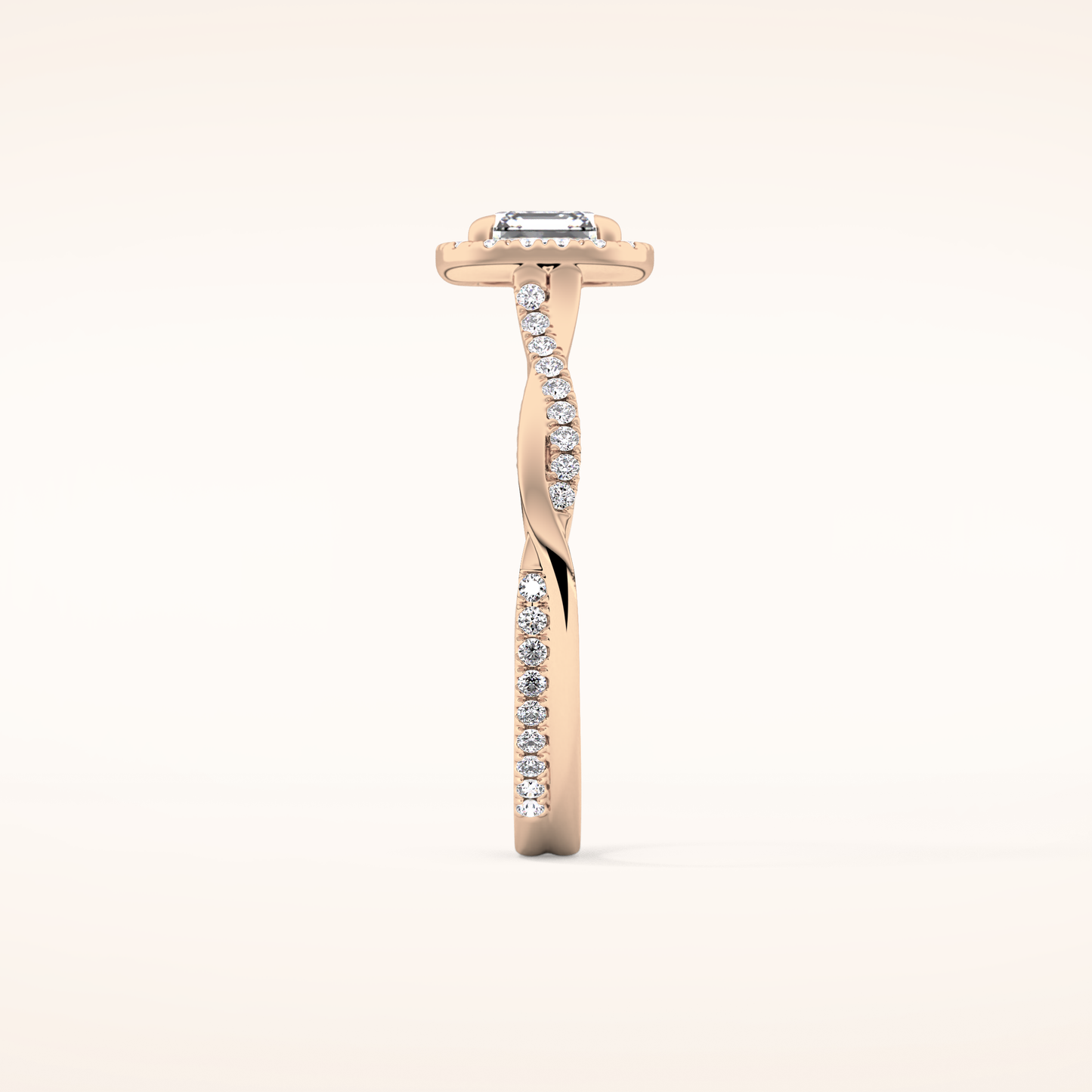 Asscher Twisted Shank, Halo and Pave Lab Grown Diamond Engagement Ring