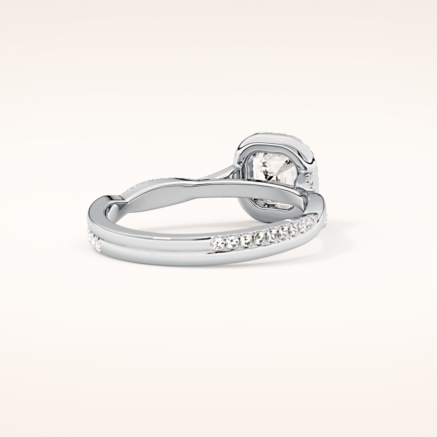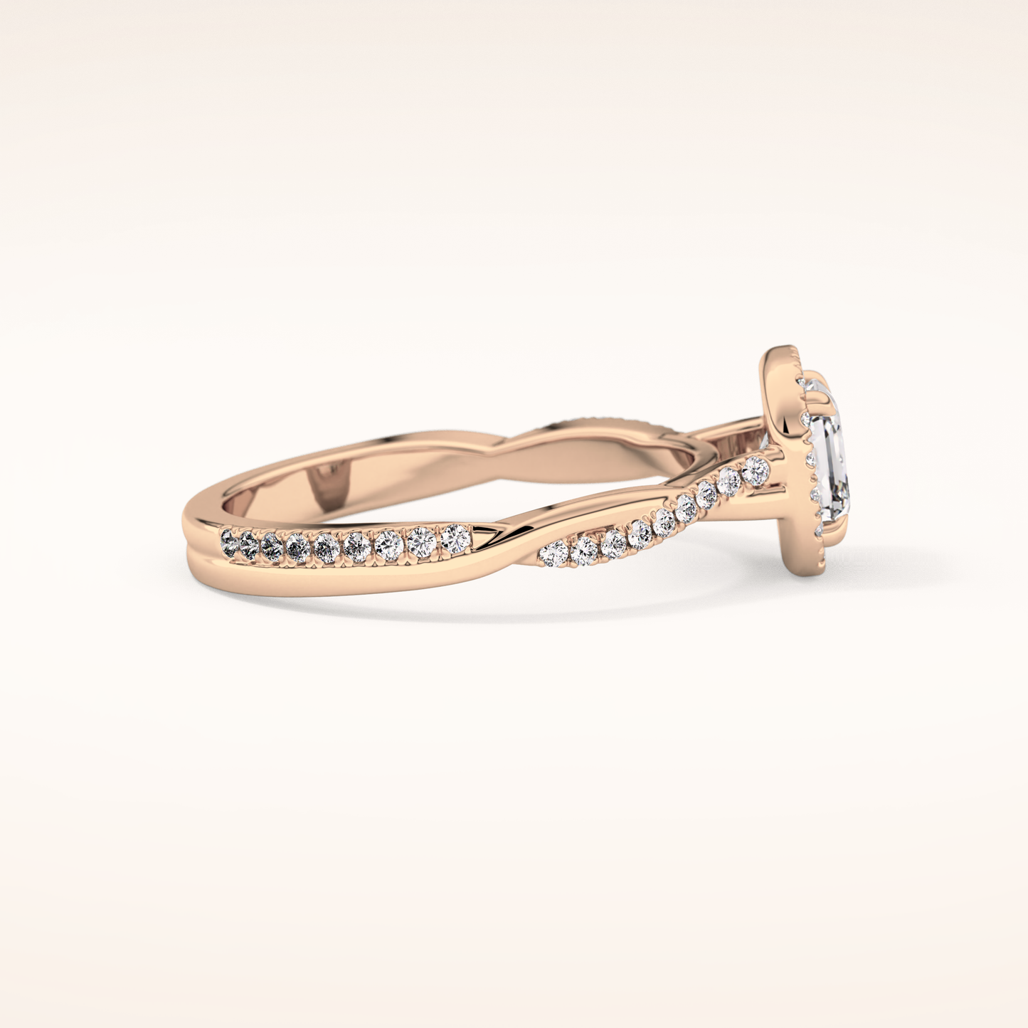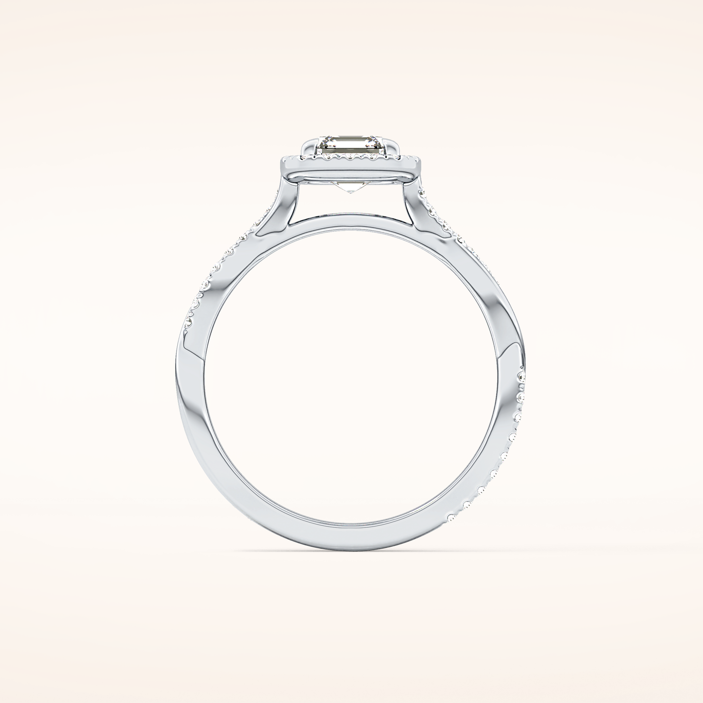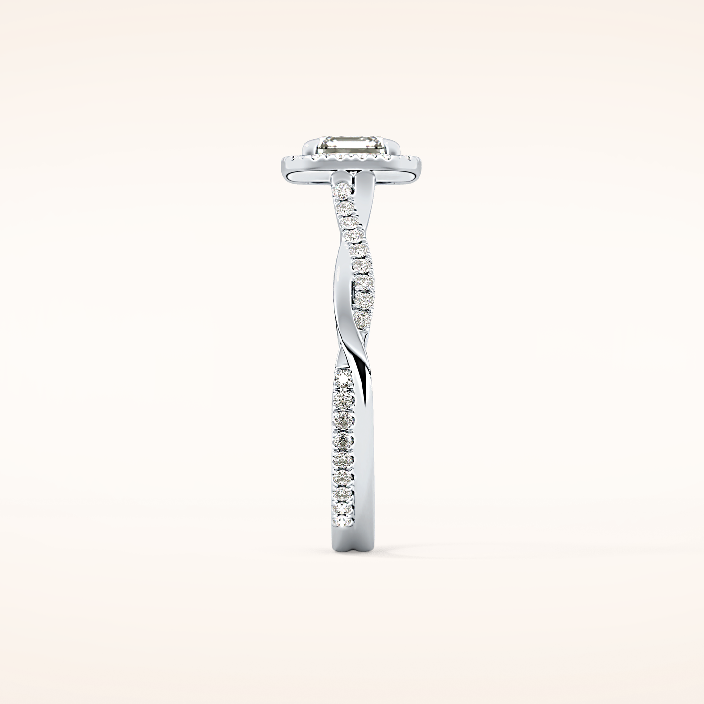 Asscher Twisted Shank, Halo and Pave Lab Grown Diamond Engagement Ring