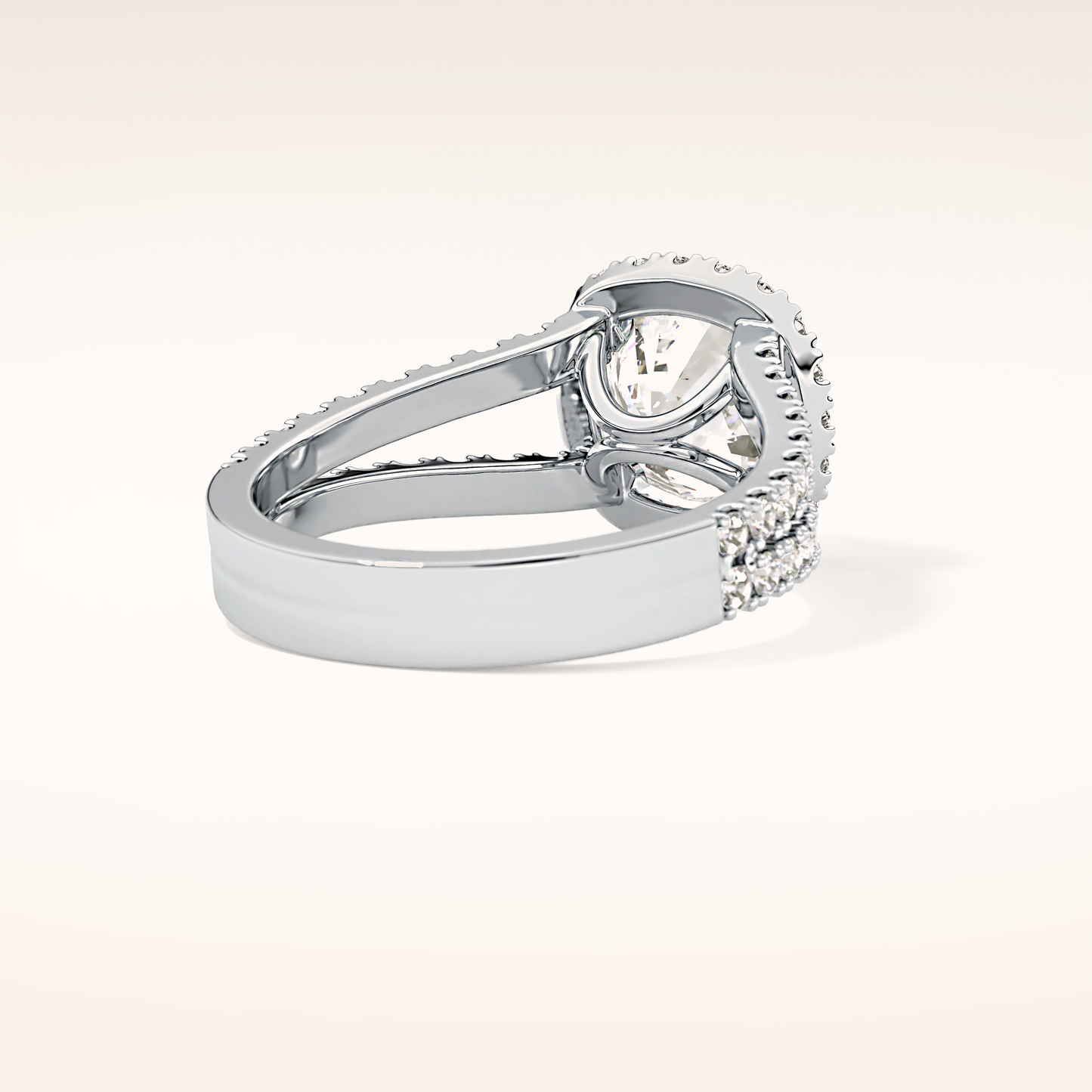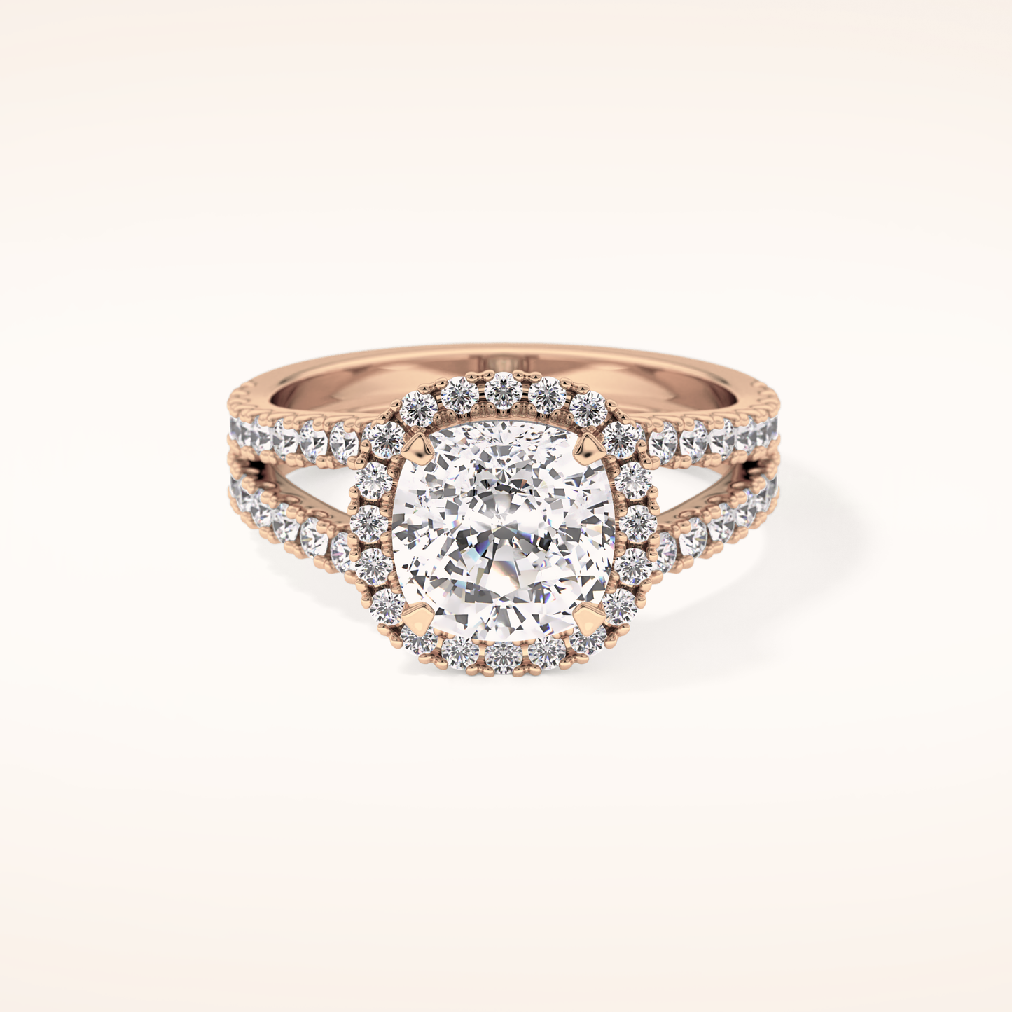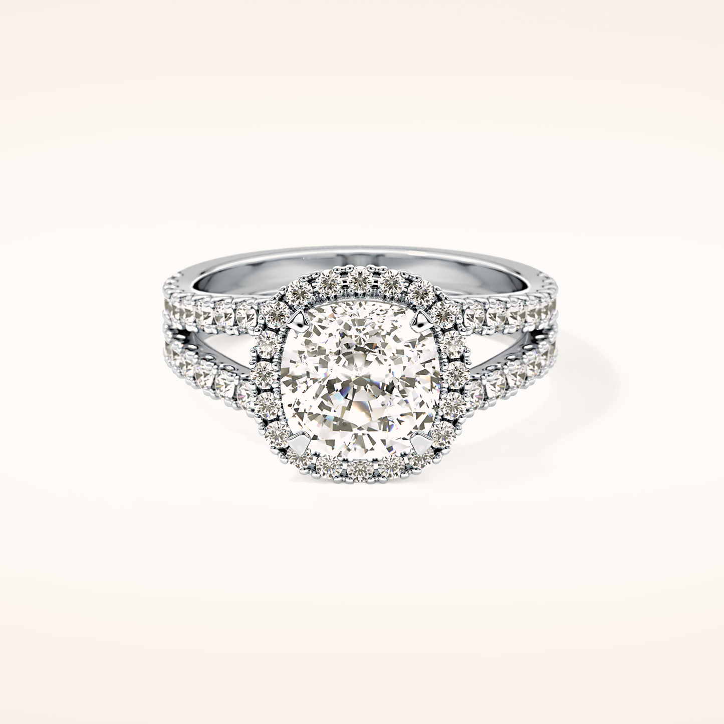 Cushion Pave Split Shank & Halo Lab Grown Diamond Engagement Ring