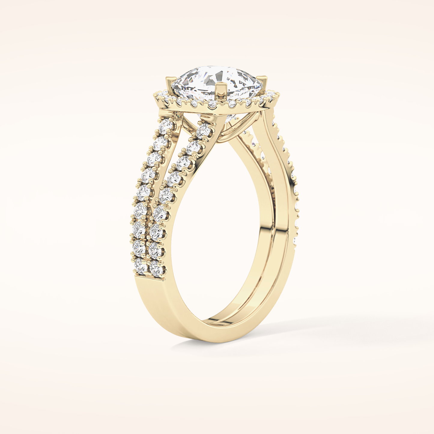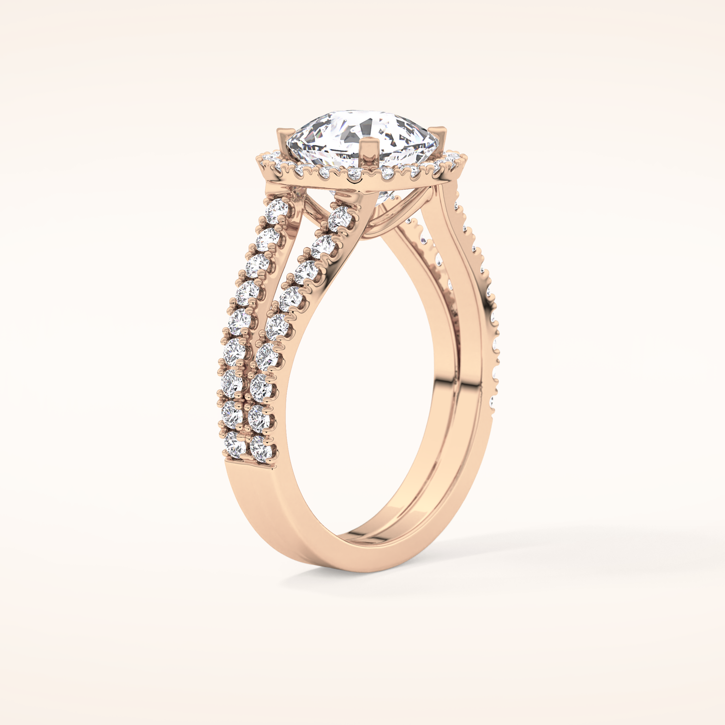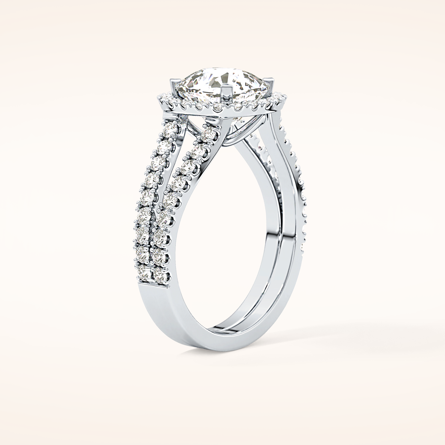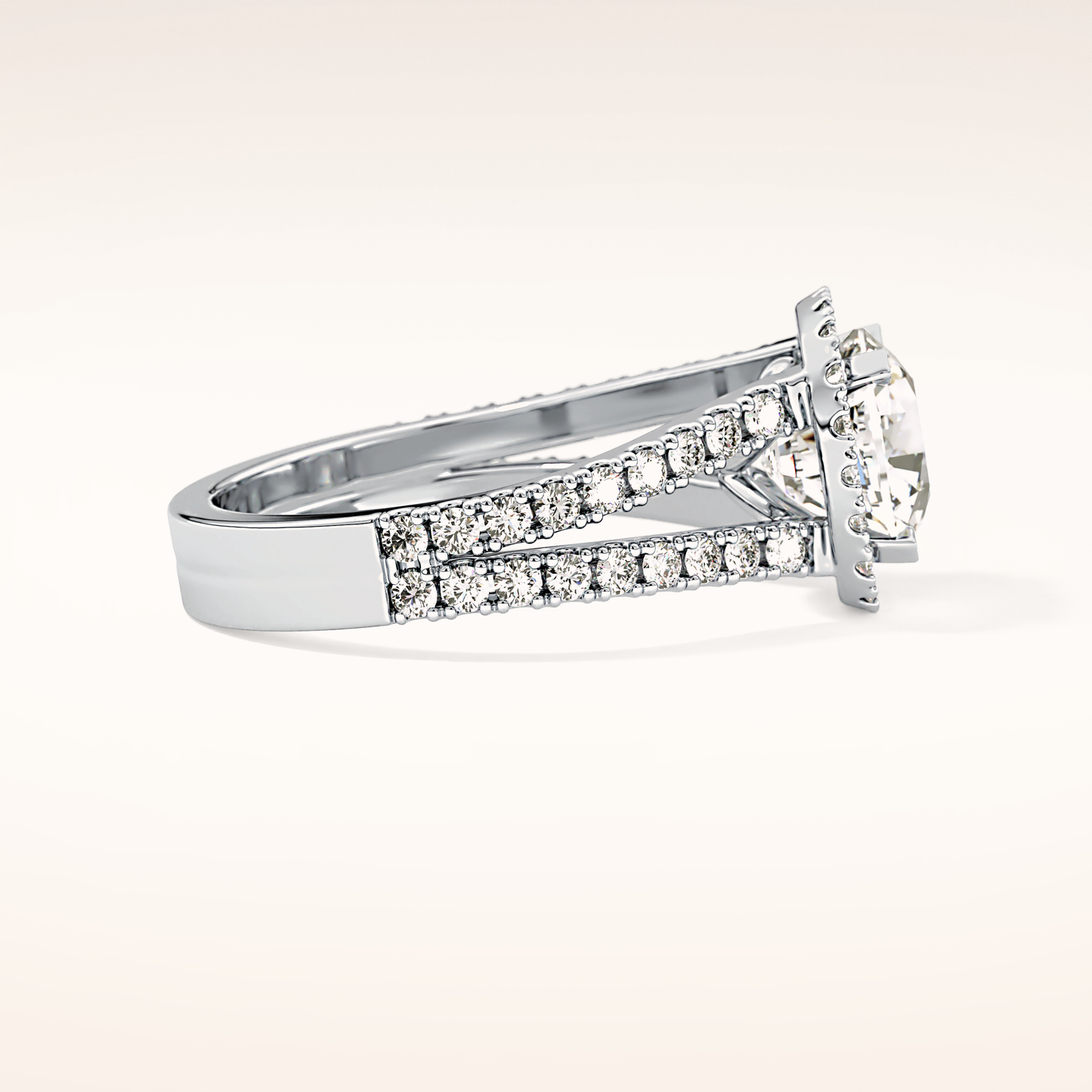 Cushion Pave Split Shank & Halo Lab Grown Diamond Engagement Ring