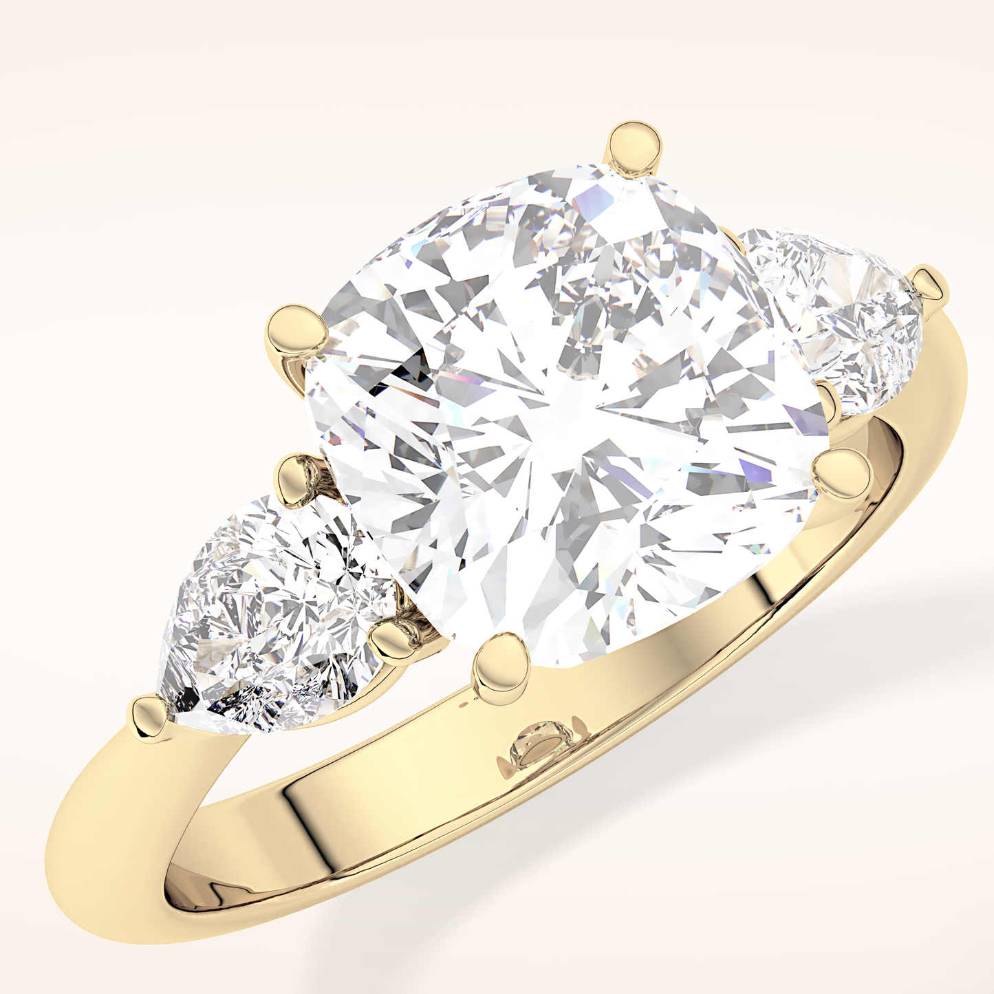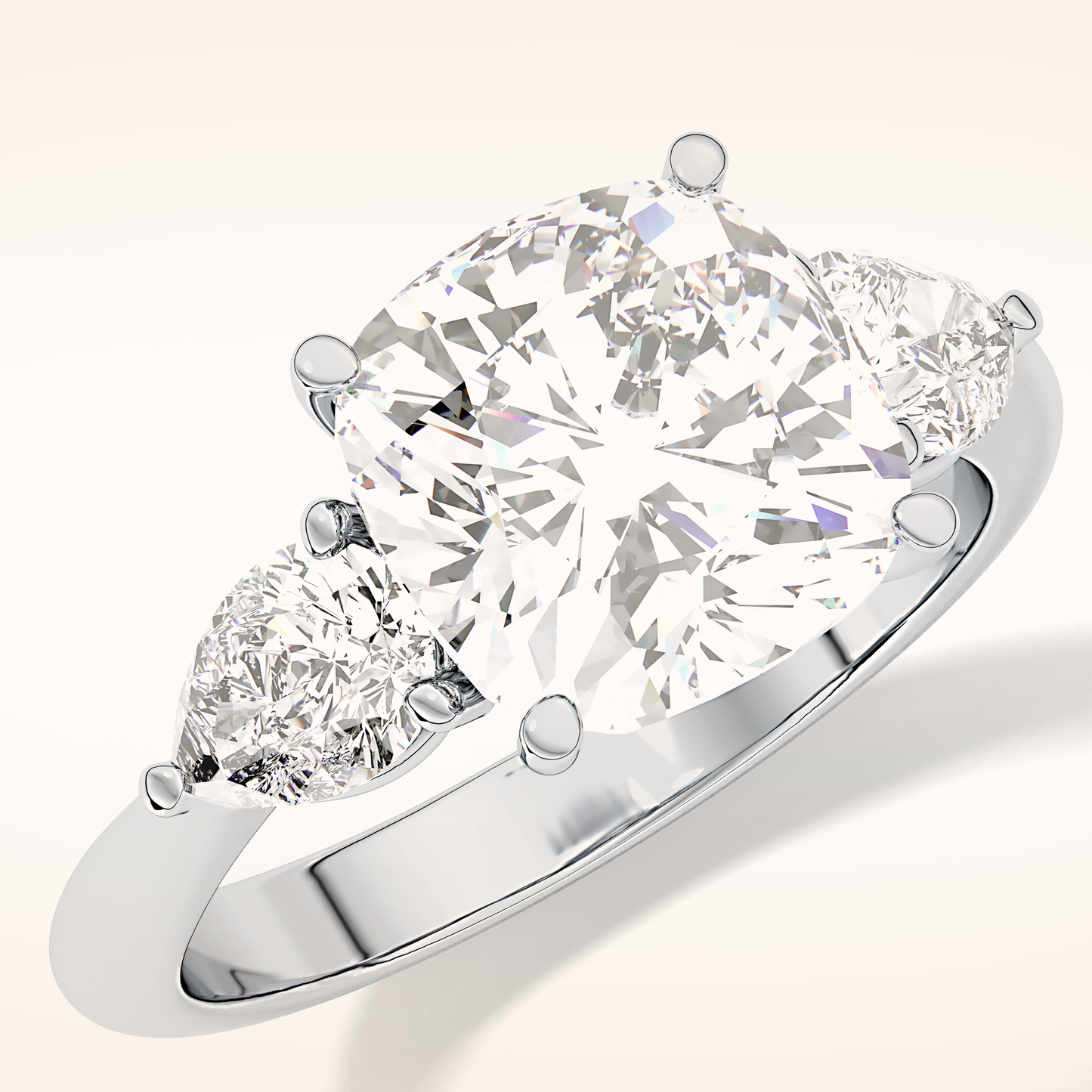 Cushion Three Stone Lab Grown Diamond Engagement Ring