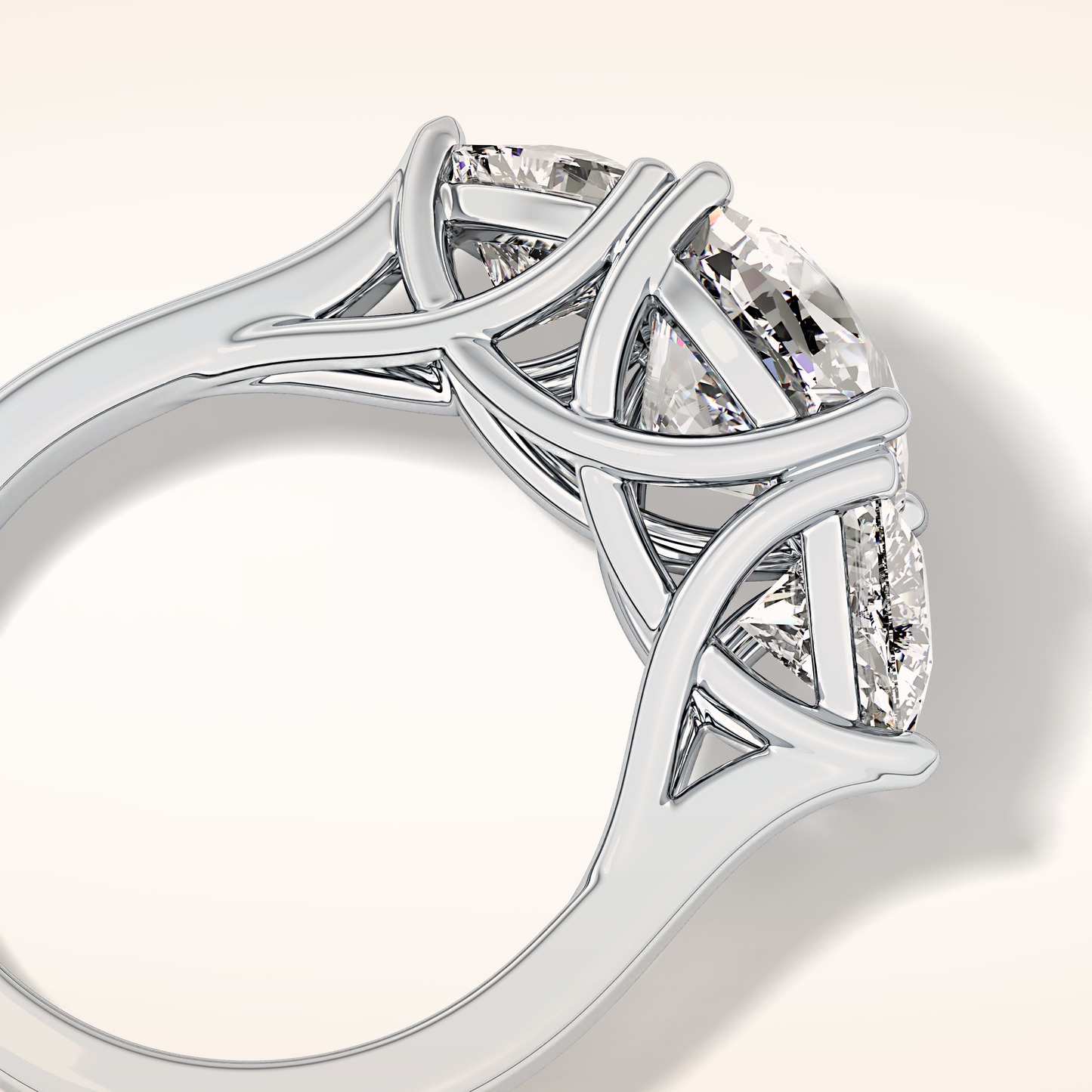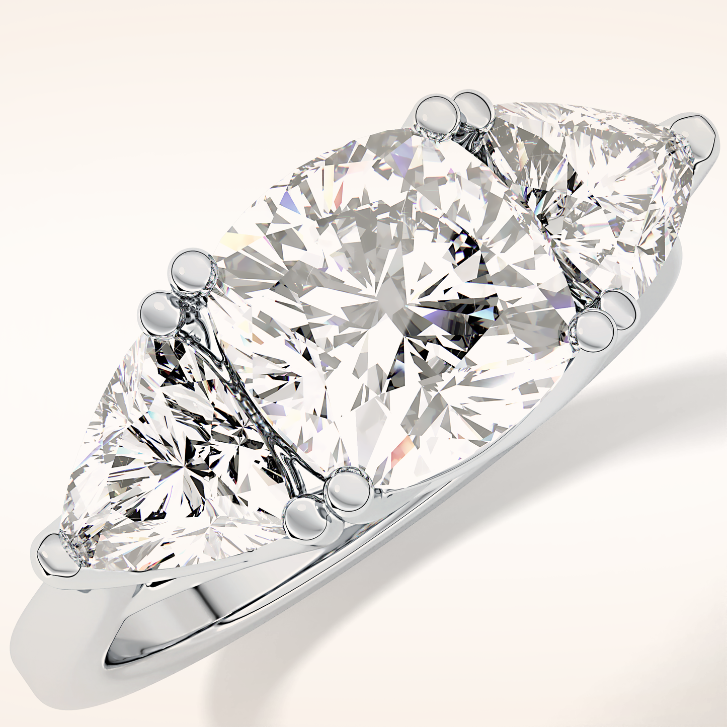 Cushion Three Stone Lab Grown Diamond Engagement Ring