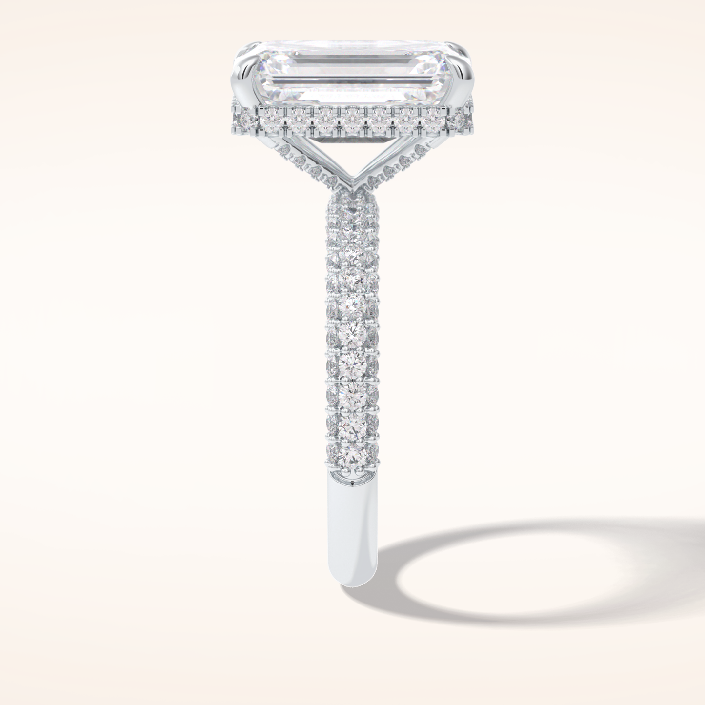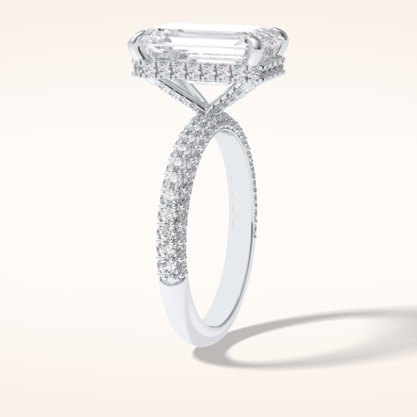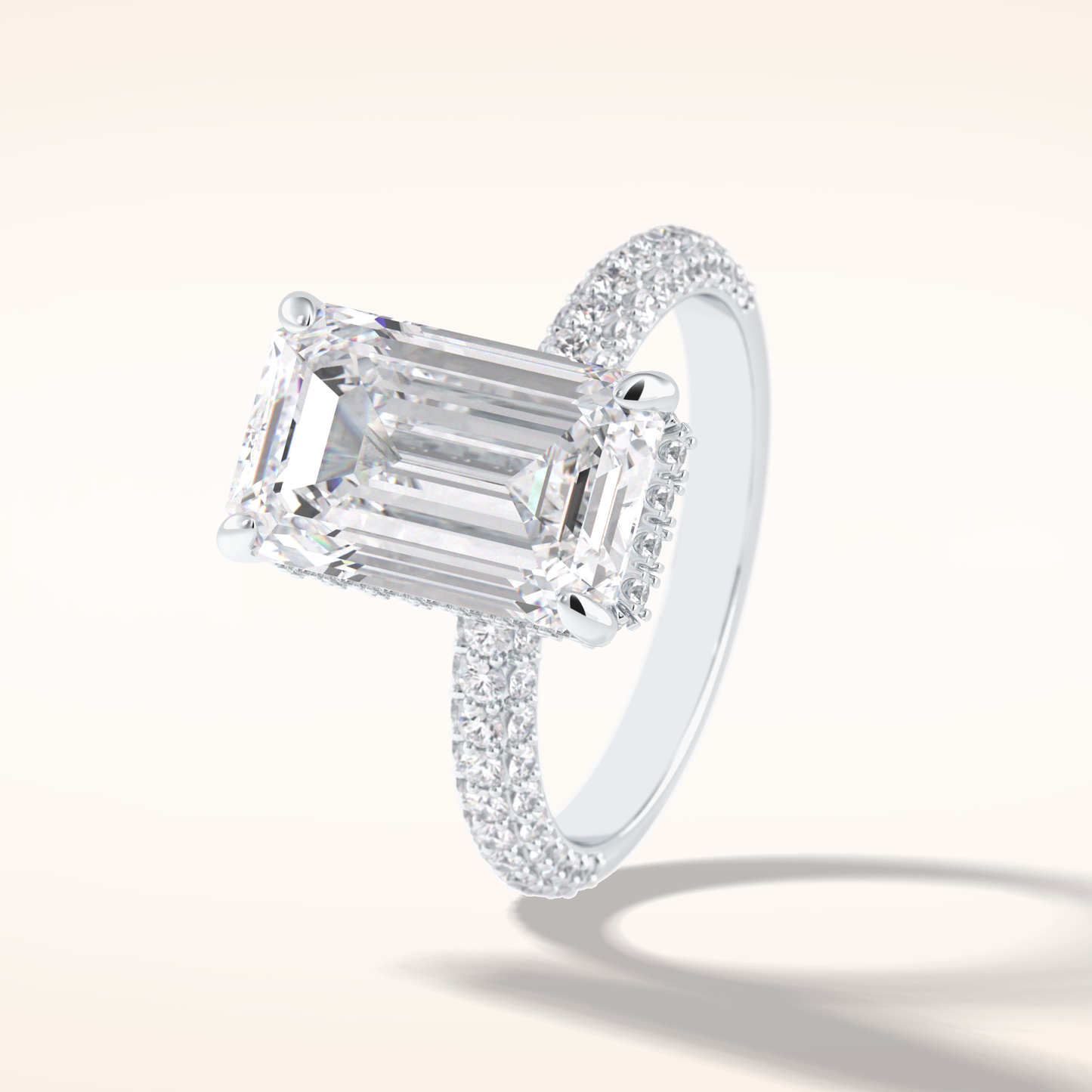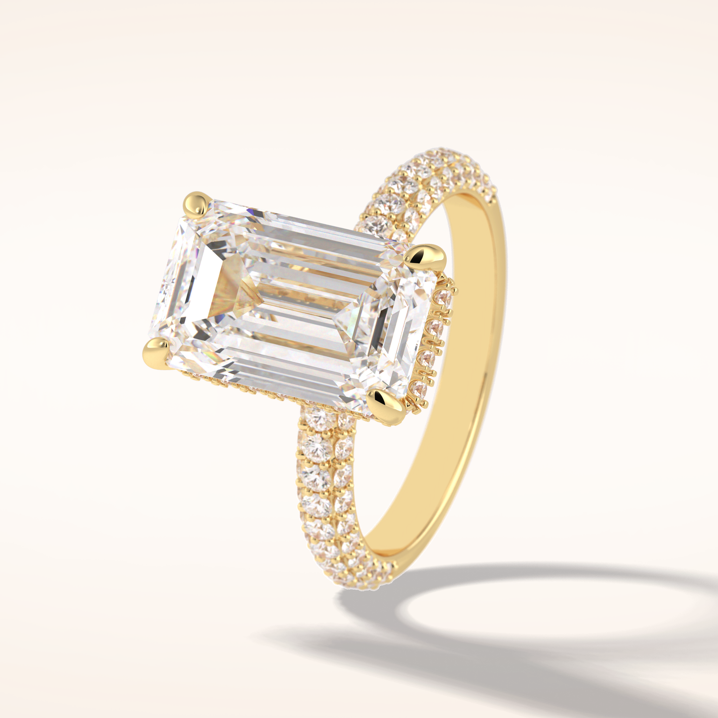 Emerald Cut Hidden Halo & Pave Style Moissanite Engagement Ring
