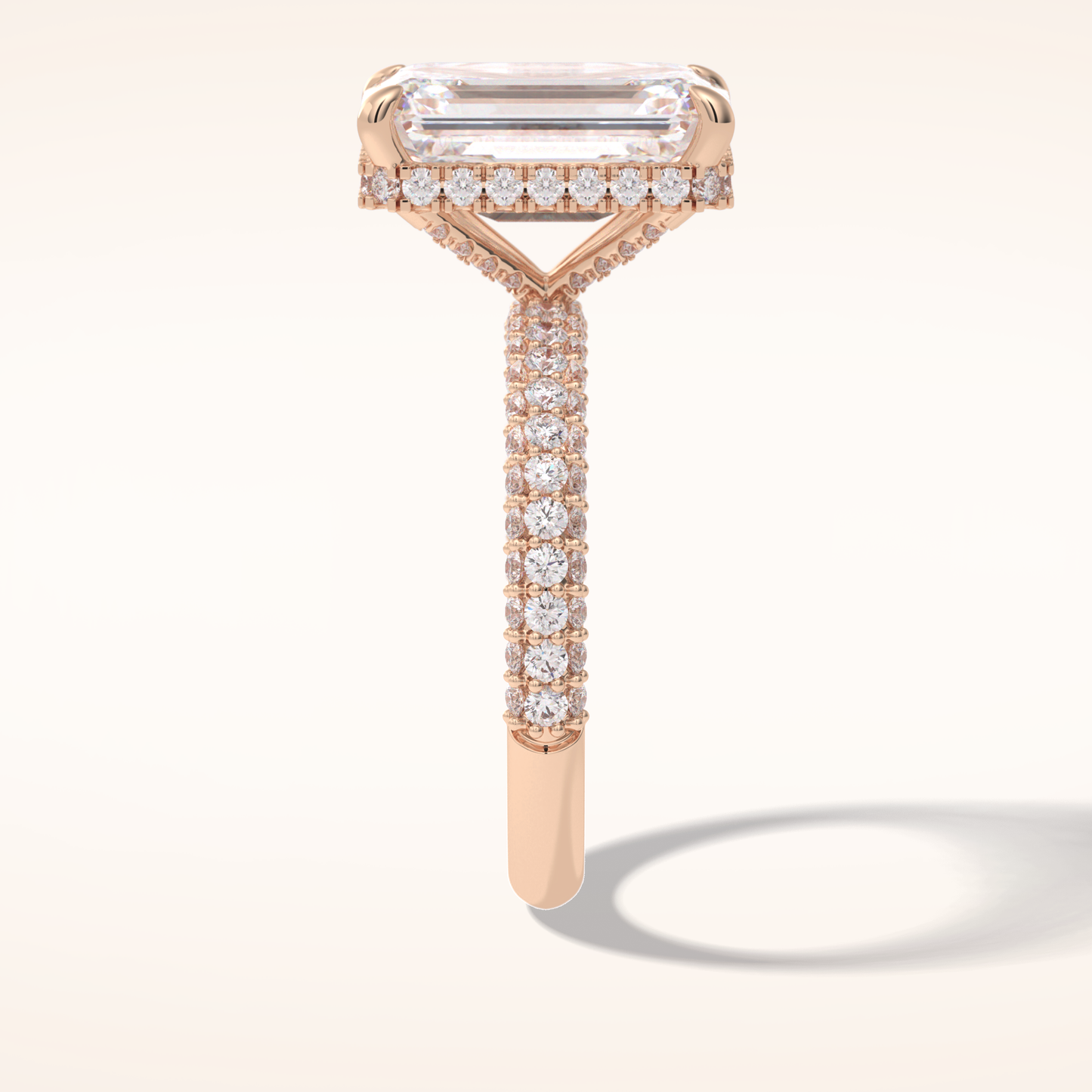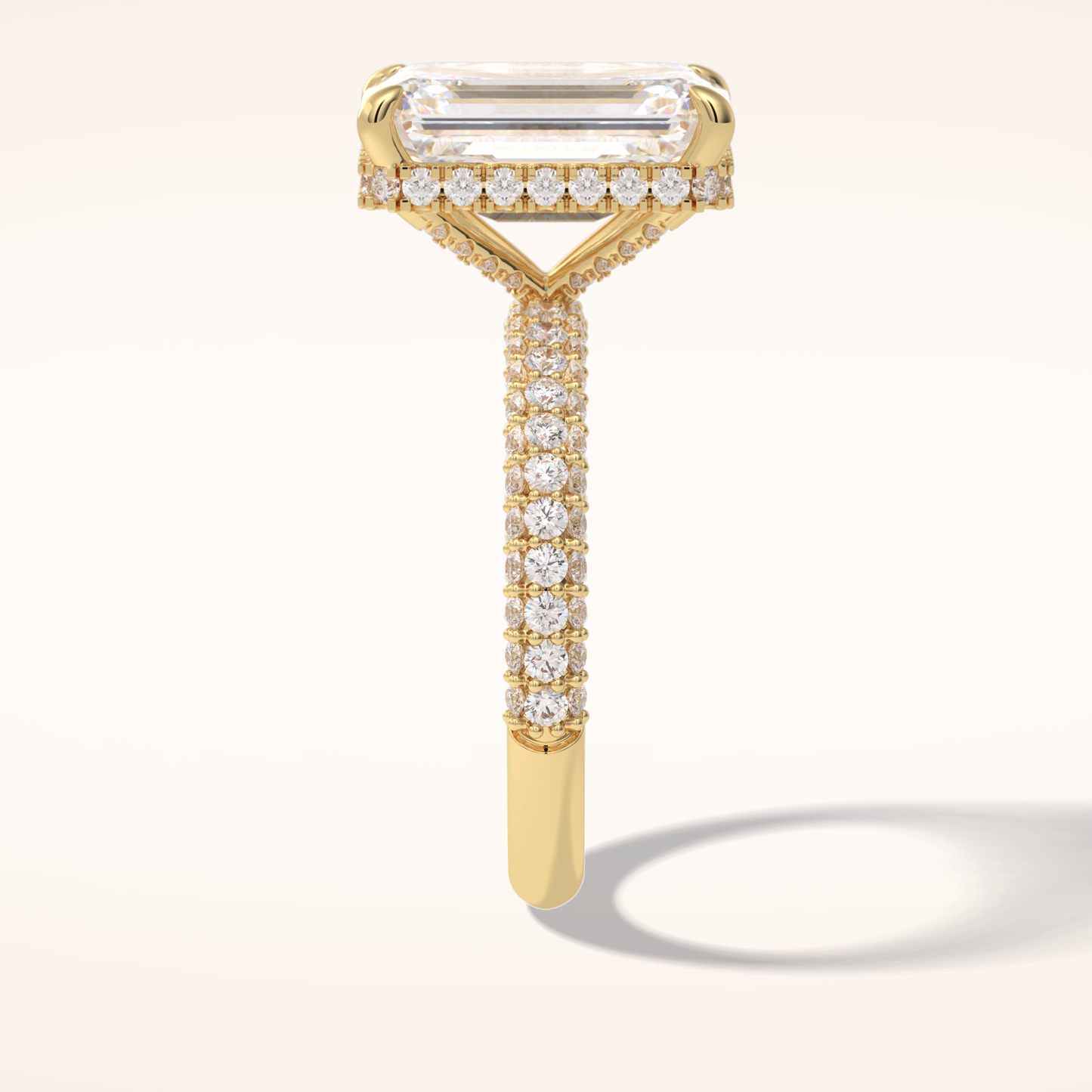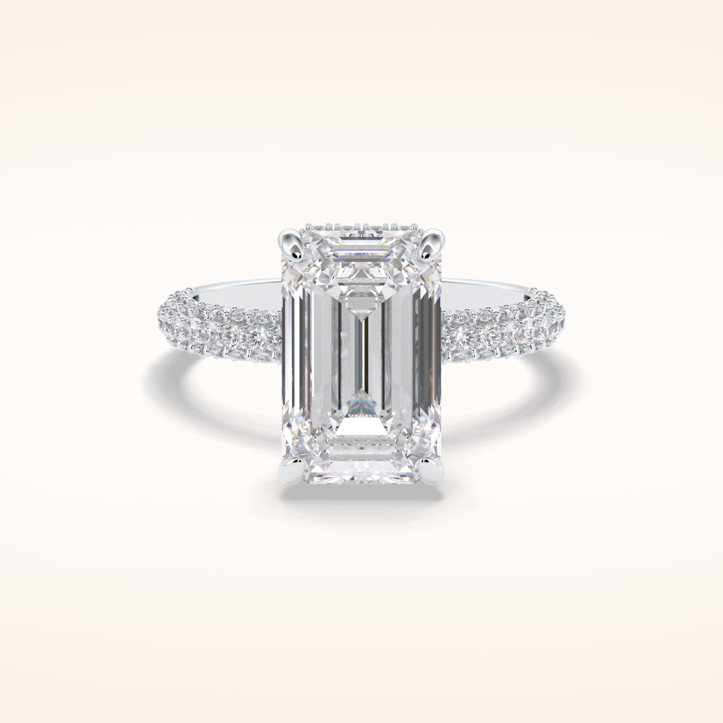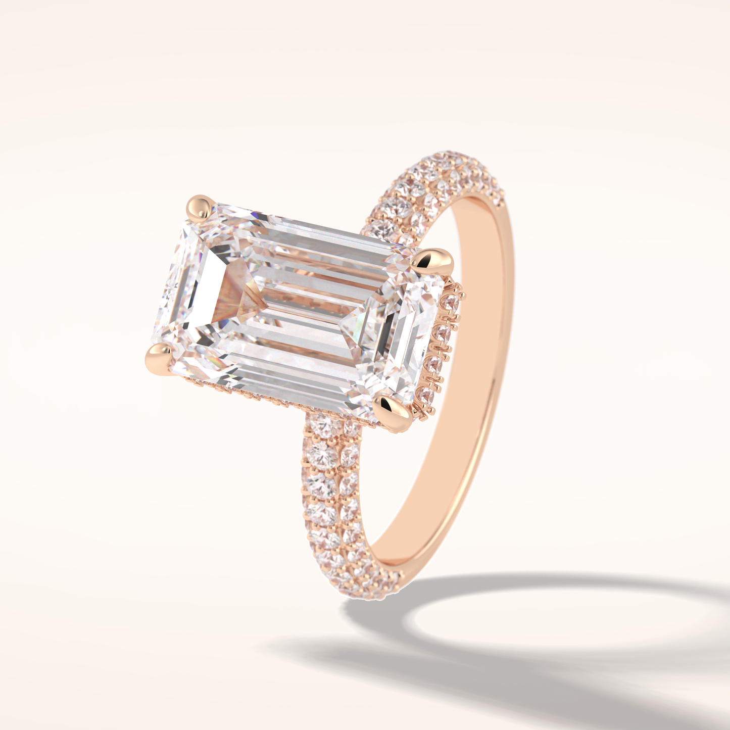 Emerald Cut Hidden Halo & Pave Style Moissanite Engagement Ring