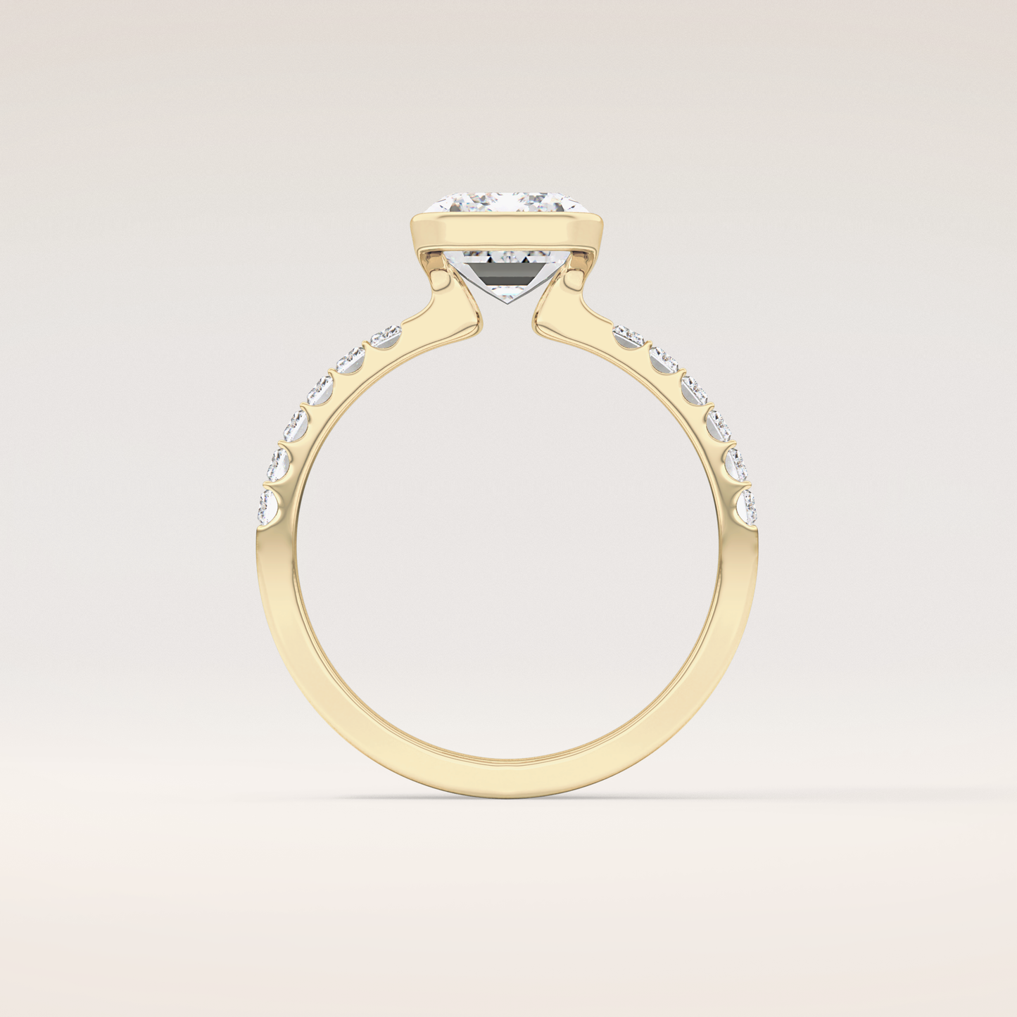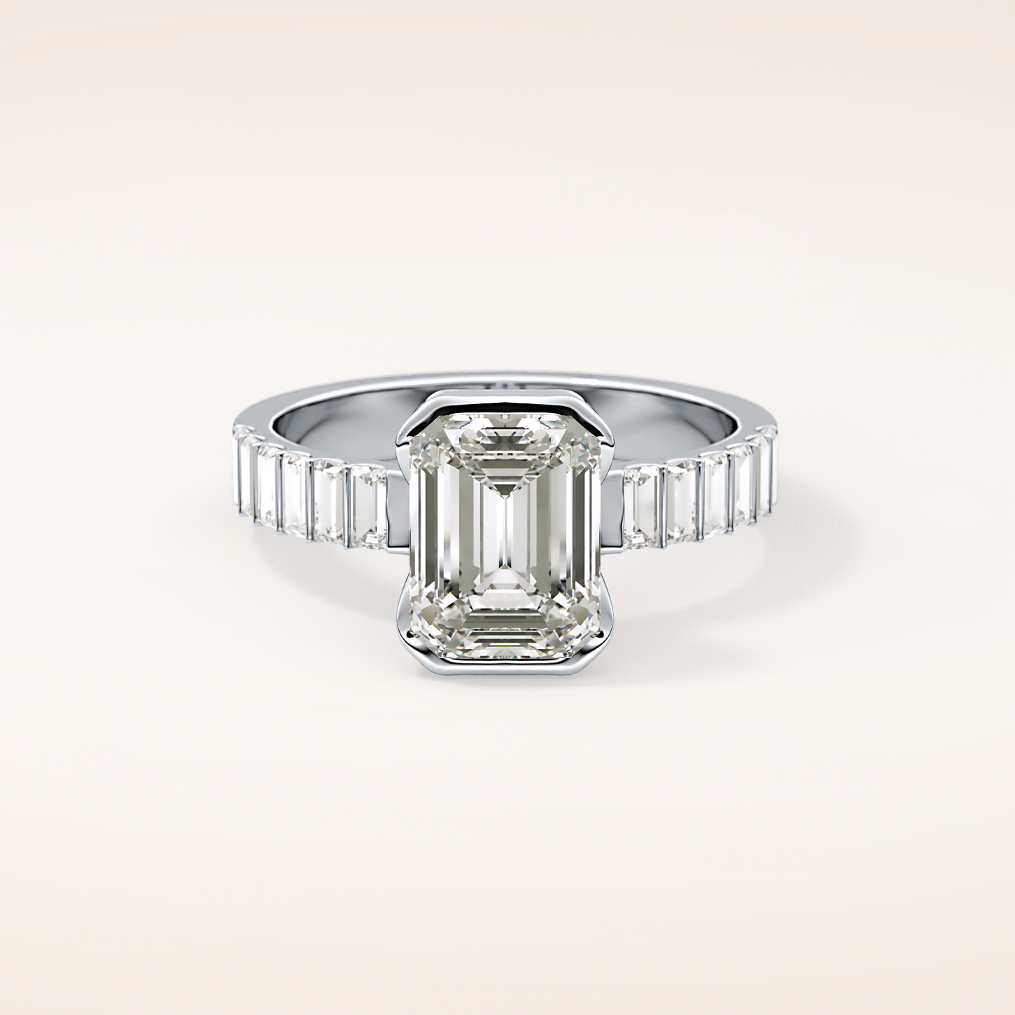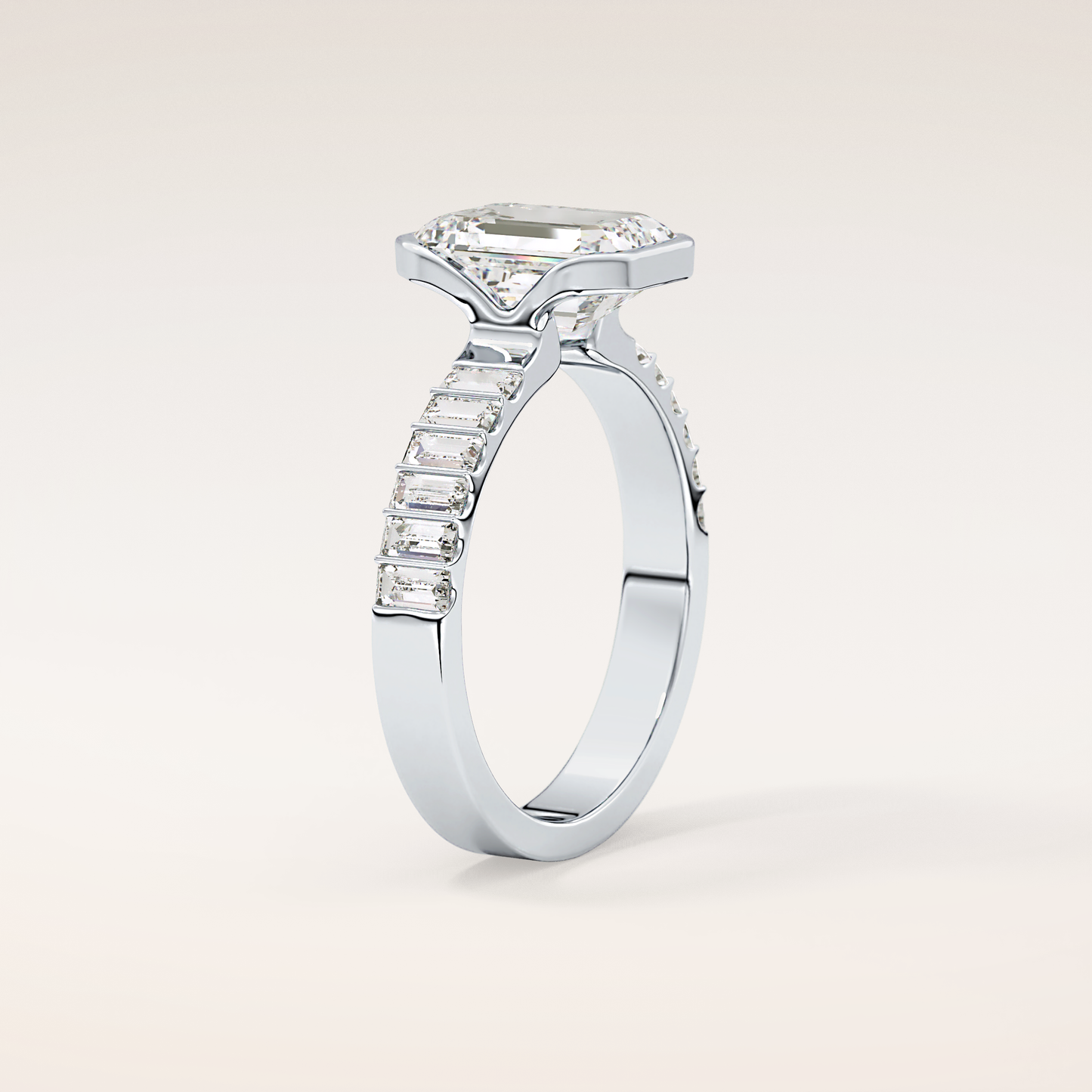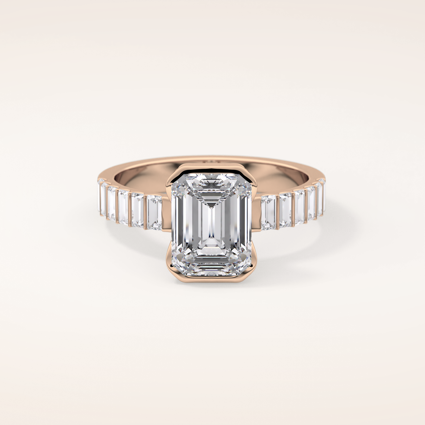 Emerald Half Bezel & Pave Lab Grown Diamond Engagement Ring