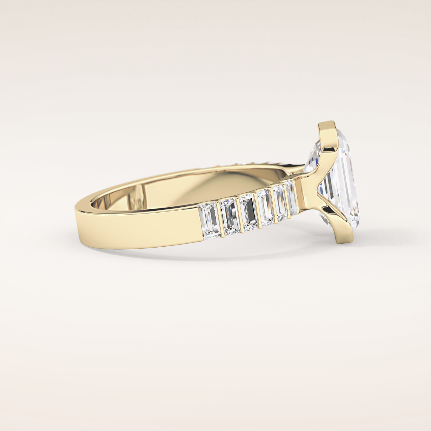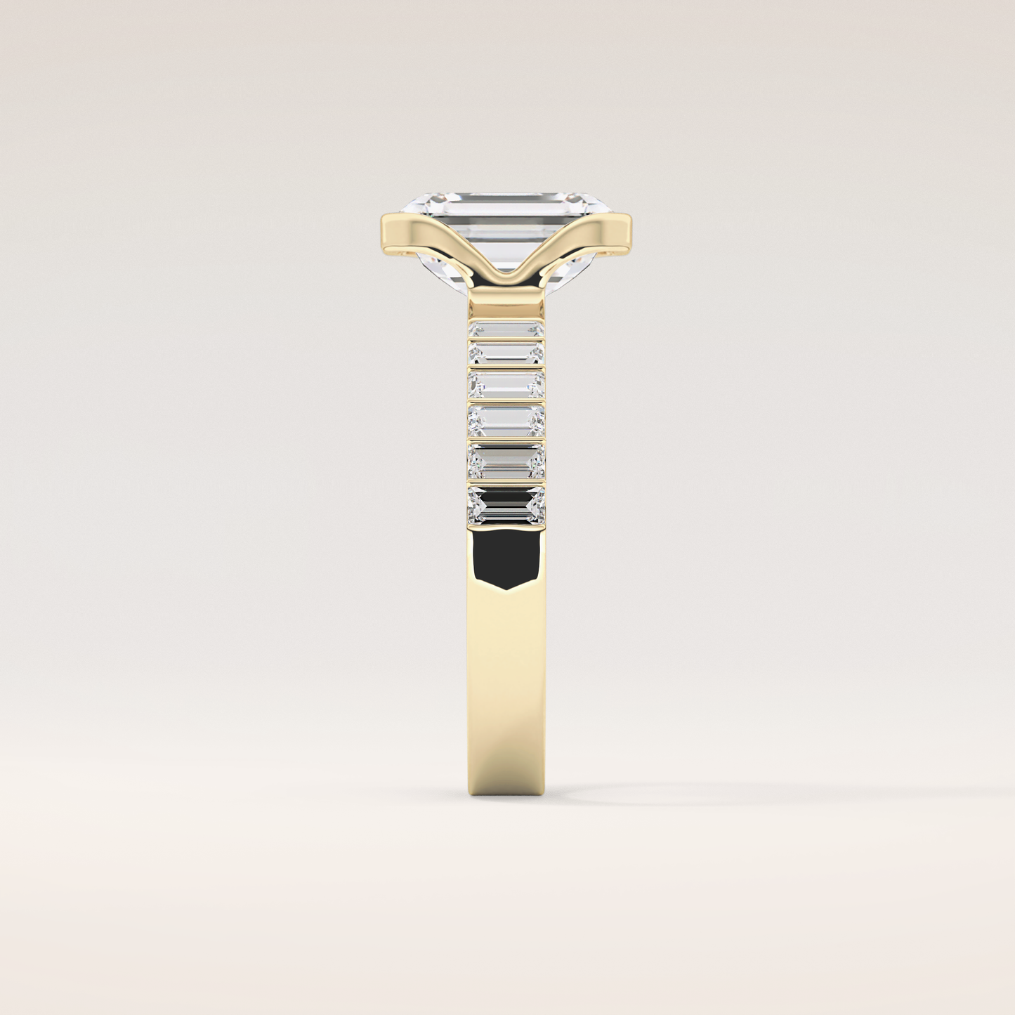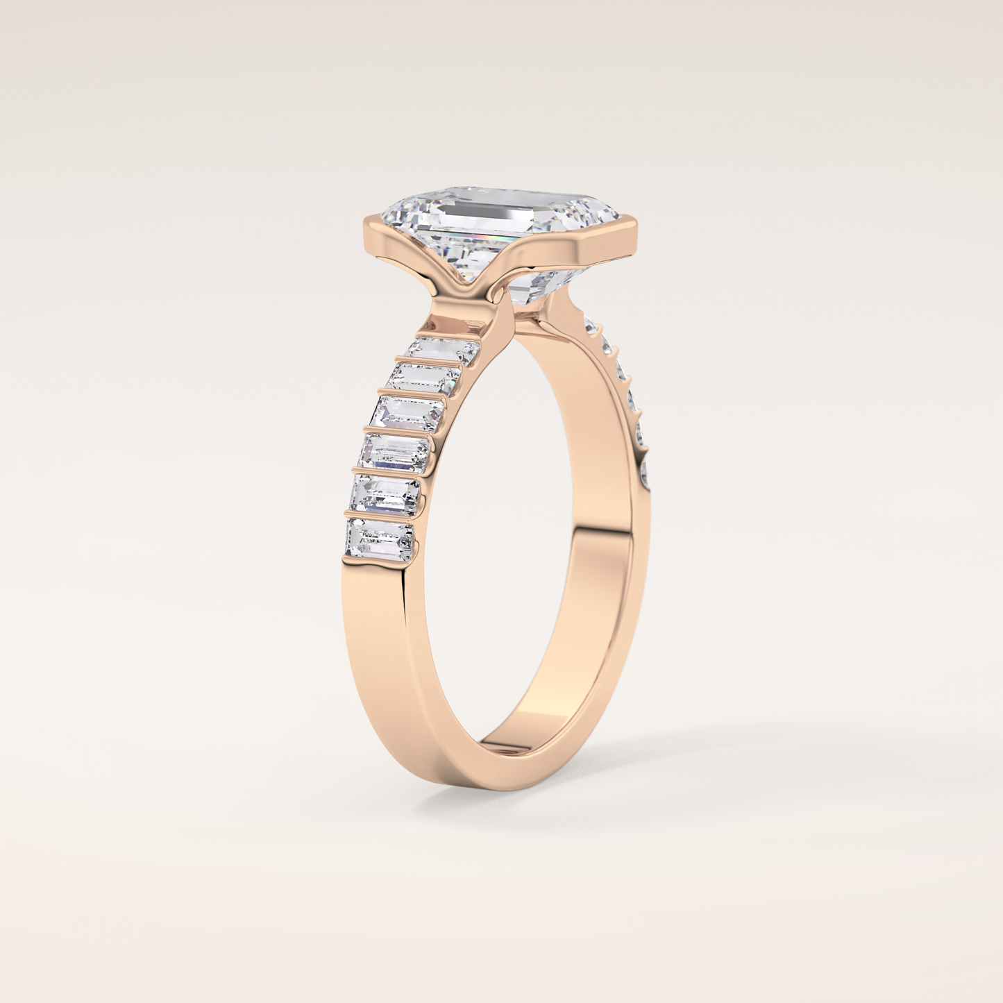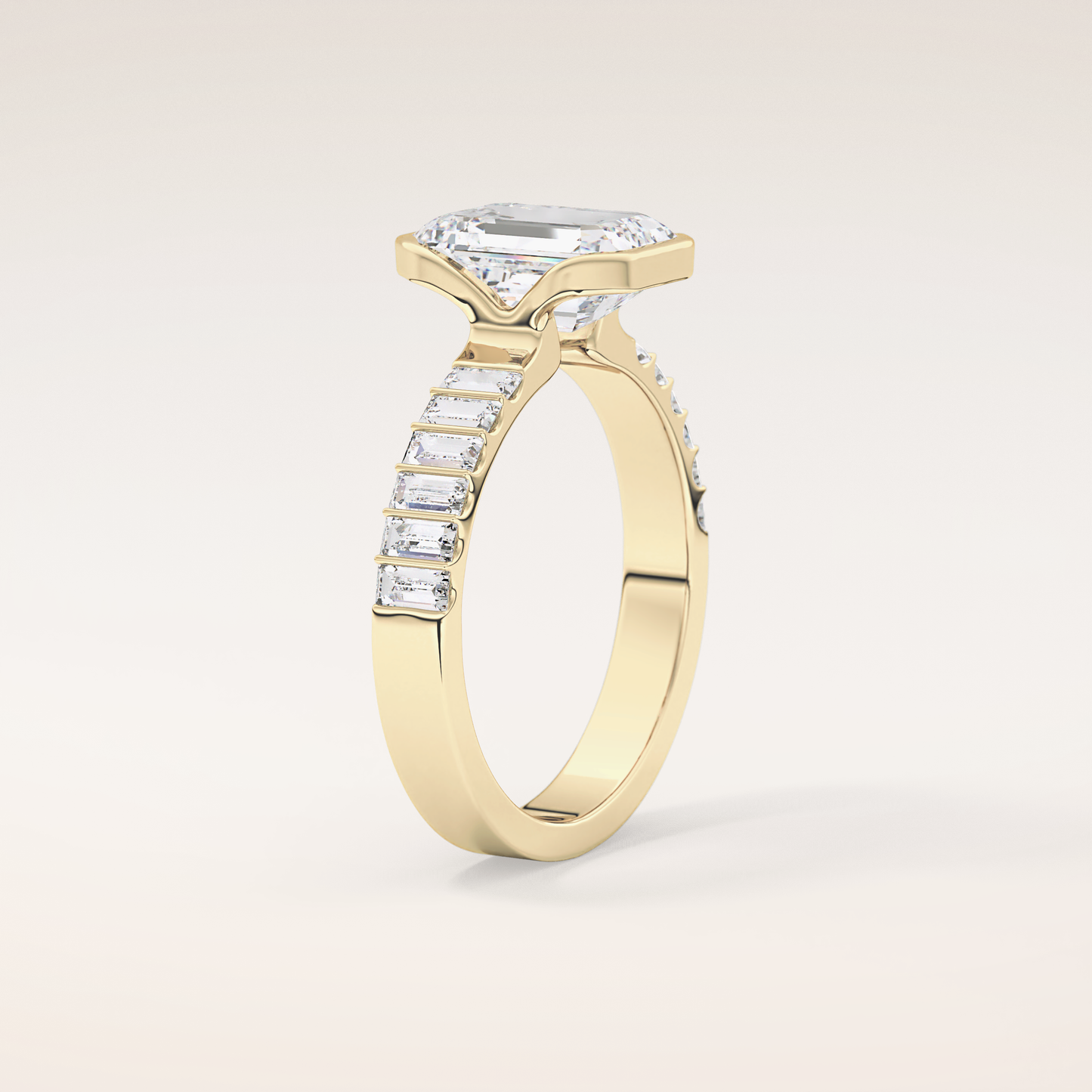 Emerald Half Bezel & Pave Lab Grown Diamond Engagement Ring