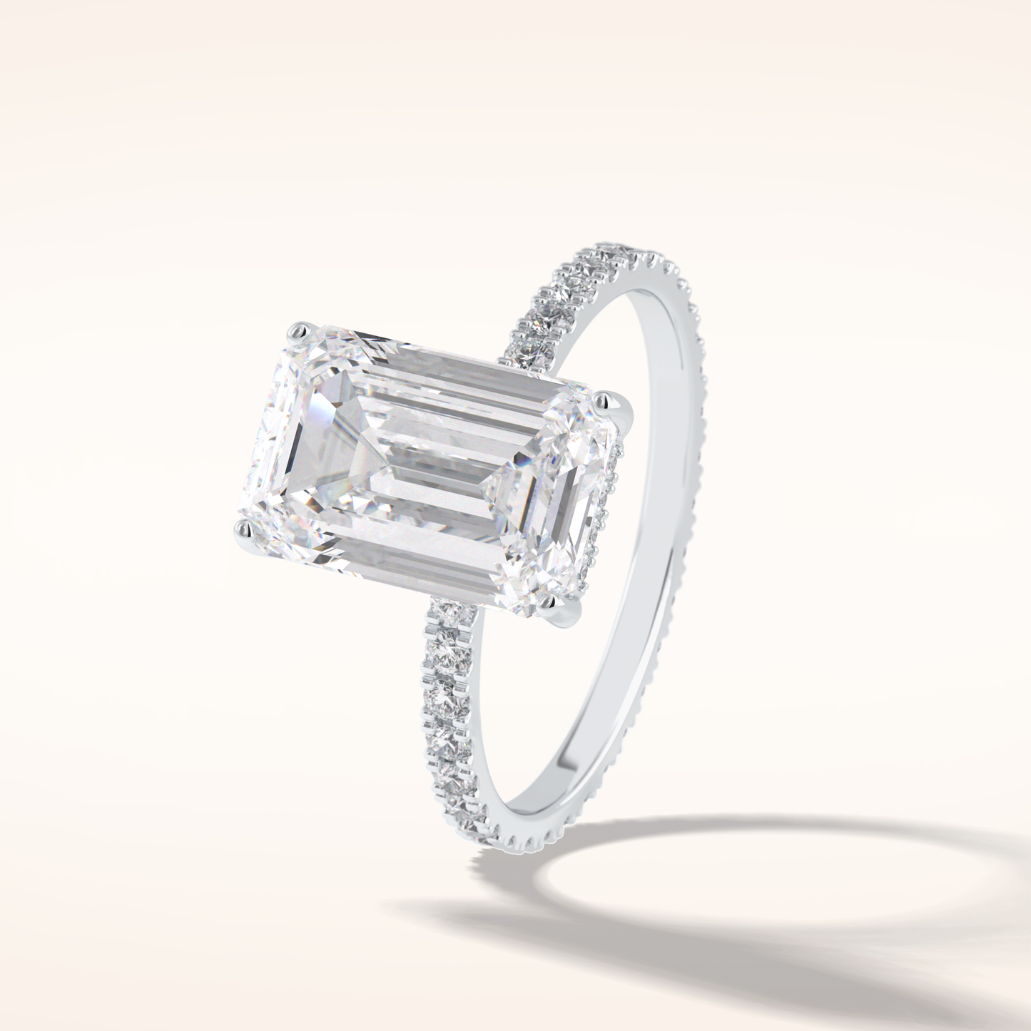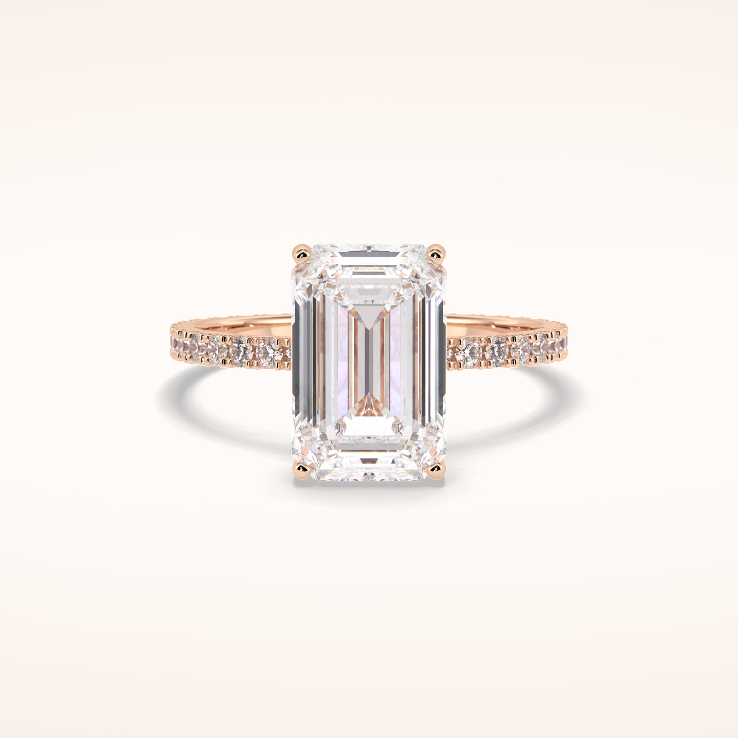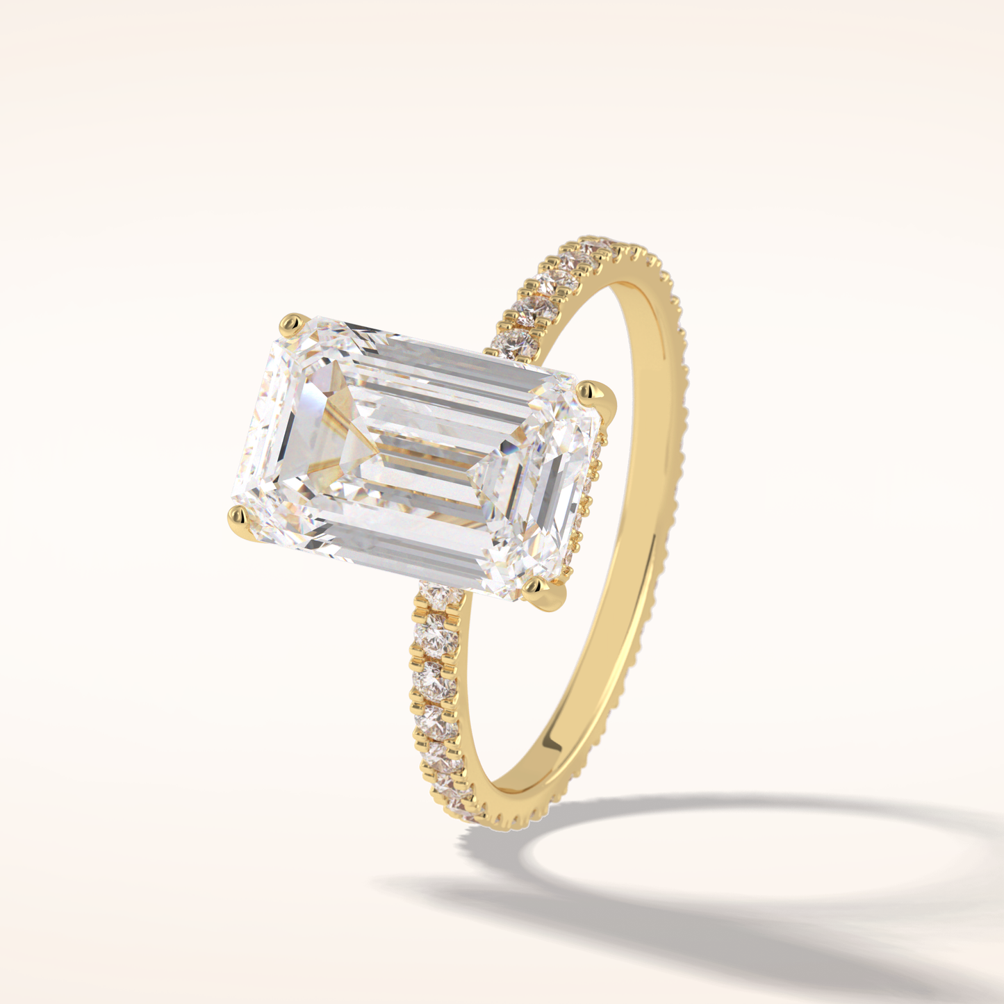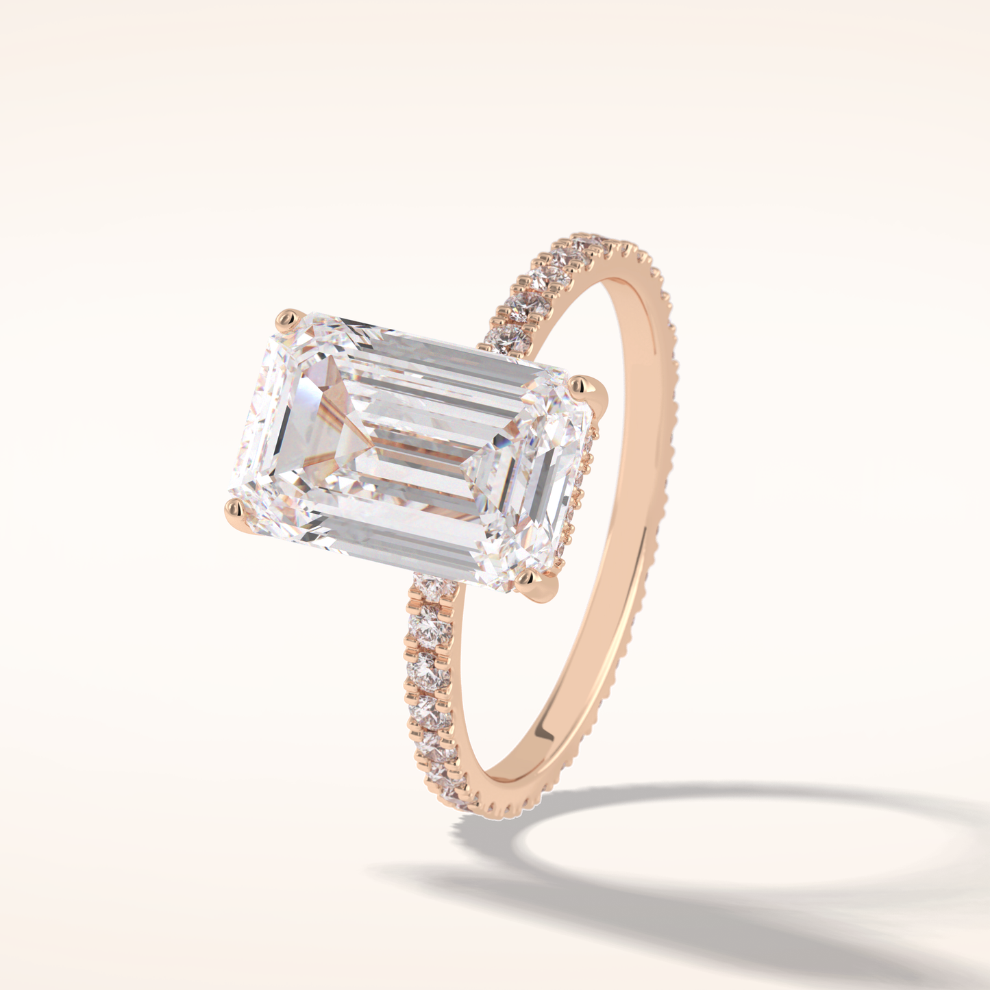 A luminous Emerald-cut lab grown diamond sits at the center, capturing light with extraordinary fire. It is gracefully balanced by a 0.52 TCW Round side diamond that adds depth, dimension, and a soft, romantic glow. The band is thoughtfully accented with two additional stones, creating a seamless sparkle that dances with every movement. Choose your perfect metal in 14KT or 18KT, available in Yellow, White, or Rose Gold.
