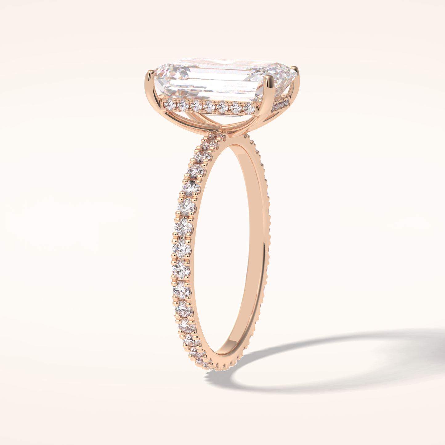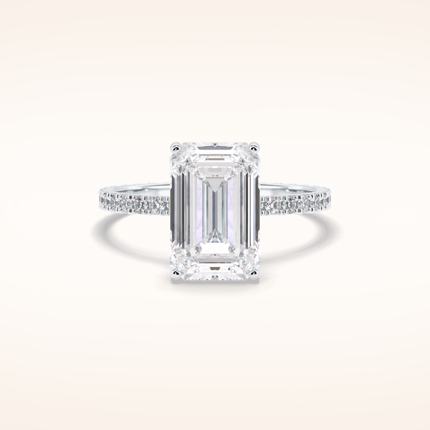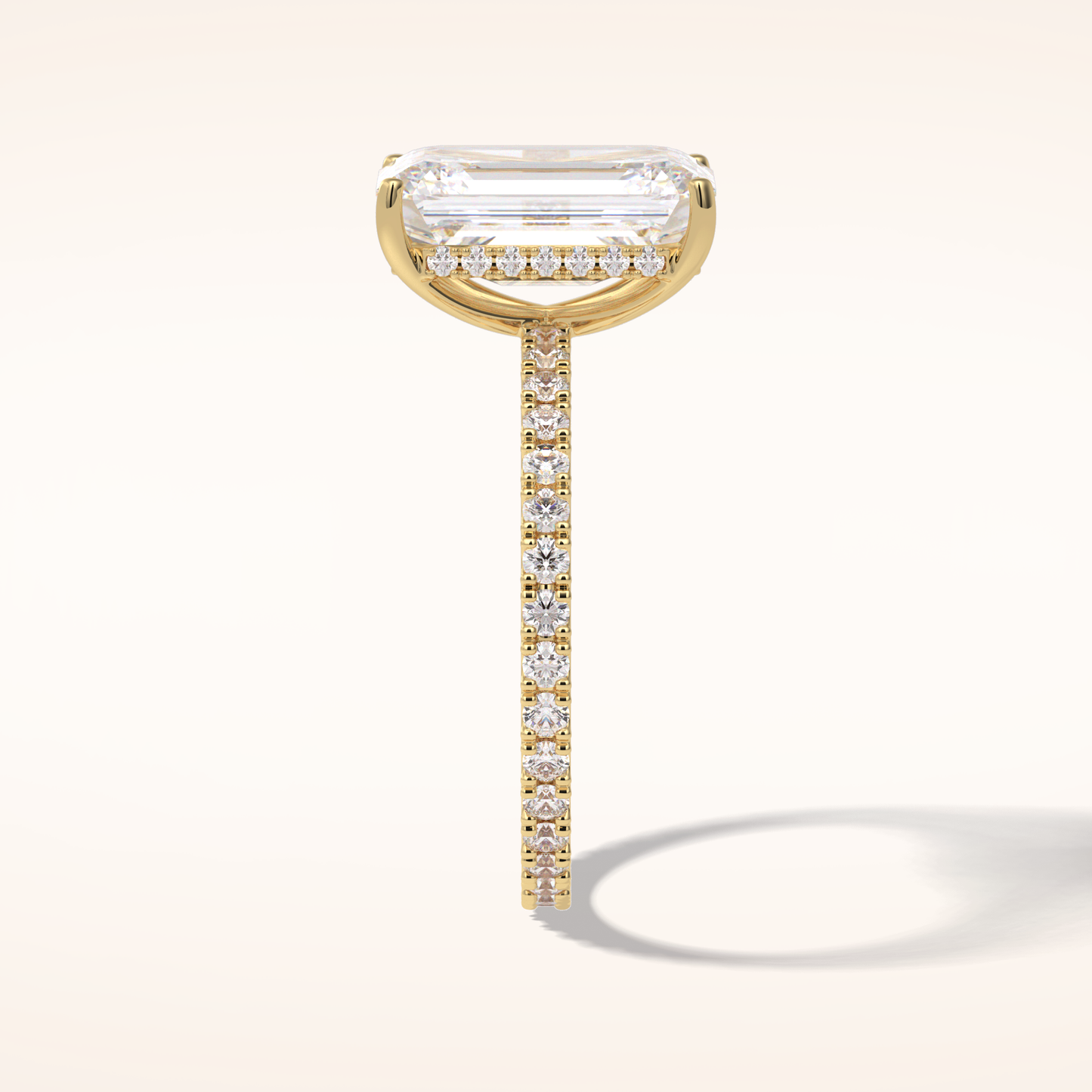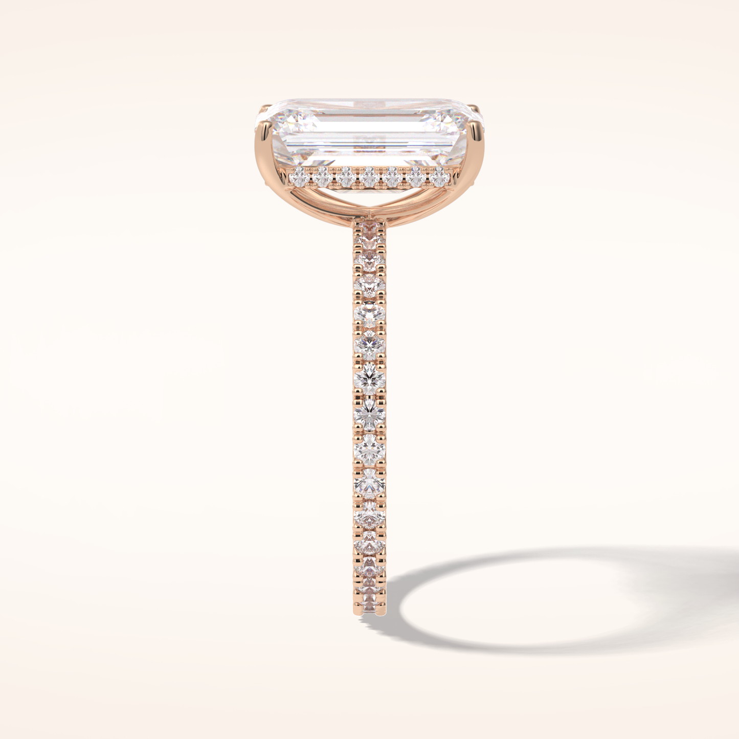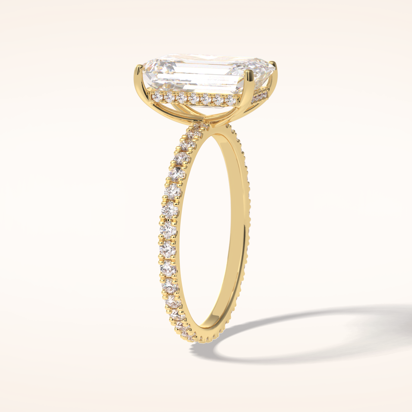 A luminous Emerald-cut lab grown diamond sits at the center, capturing light with extraordinary fire. It is gracefully balanced by a 0.52 TCW Round side diamond that adds depth, dimension, and a soft, romantic glow. The band is thoughtfully accented with two additional stones, creating a seamless sparkle that dances with every movement. Choose your perfect metal in 14KT or 18KT, available in Yellow, White, or Rose Gold.