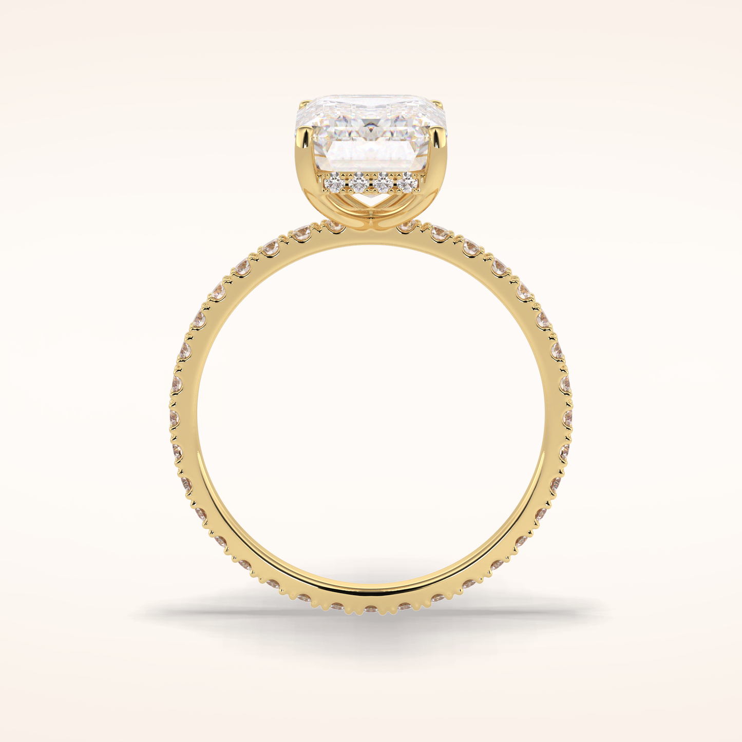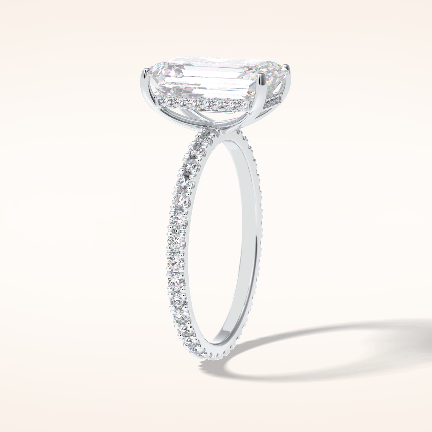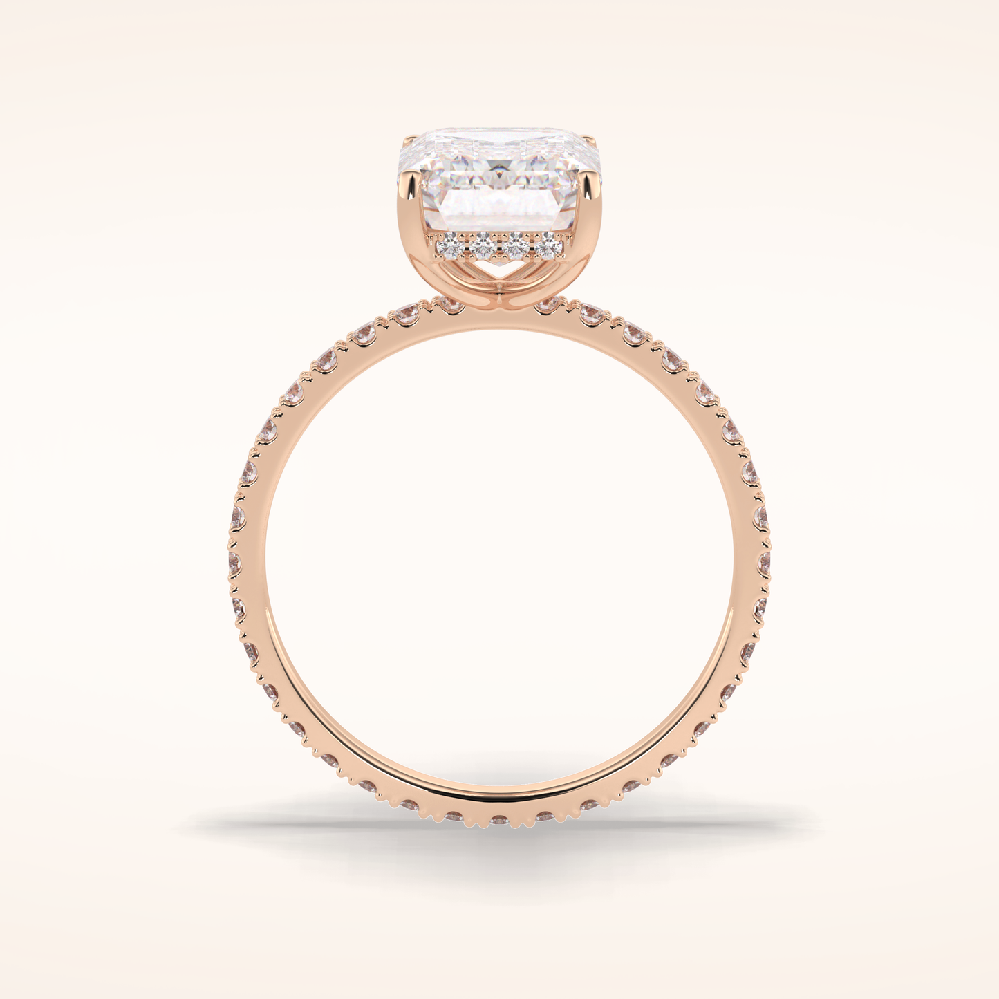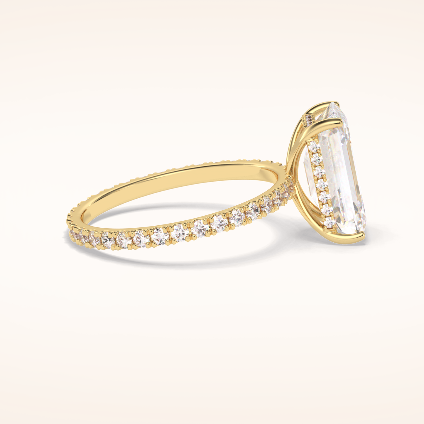 A luminous Emerald-cut lab grown diamond sits at the center, capturing light with extraordinary fire. It is gracefully balanced by a 0.52 TCW Round side diamond that adds depth, dimension, and a soft, romantic glow. The band is thoughtfully accented with two additional stones, creating a seamless sparkle that dances with every movement. Choose your perfect metal in 14KT or 18KT, available in Yellow, White, or Rose Gold.