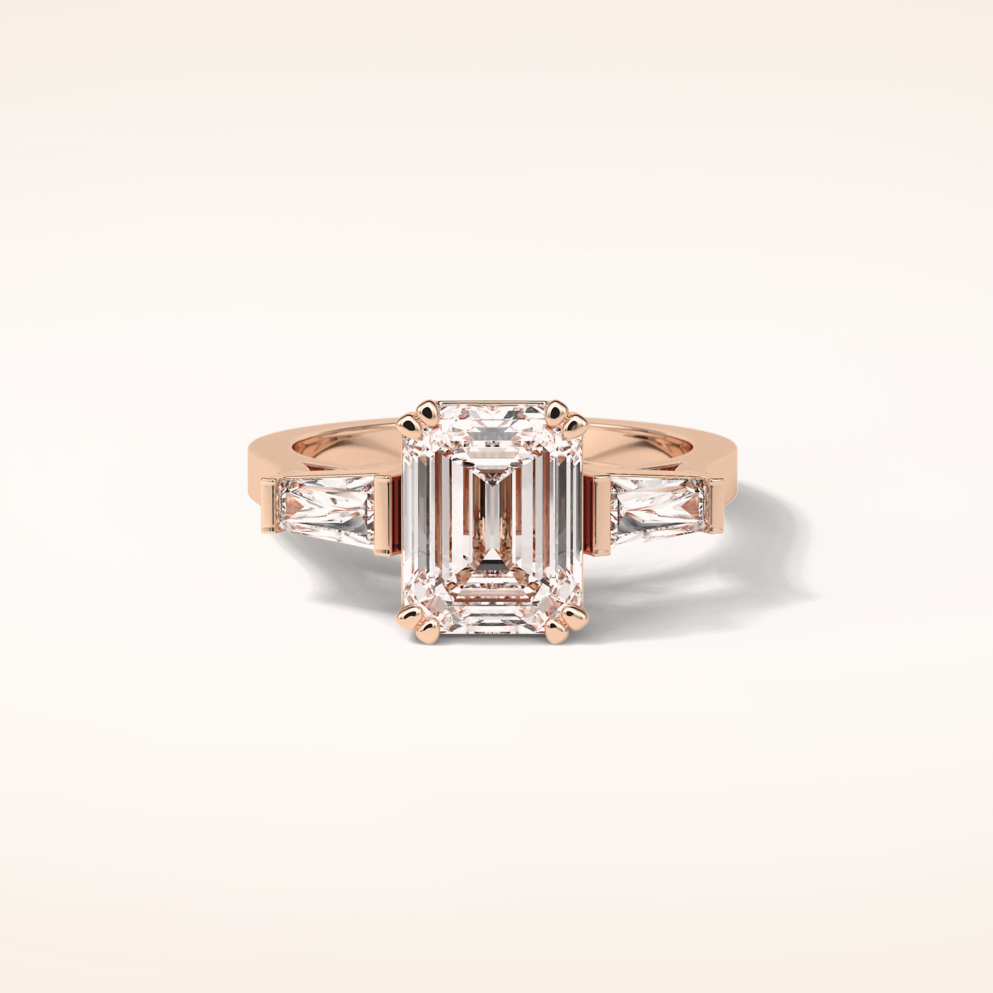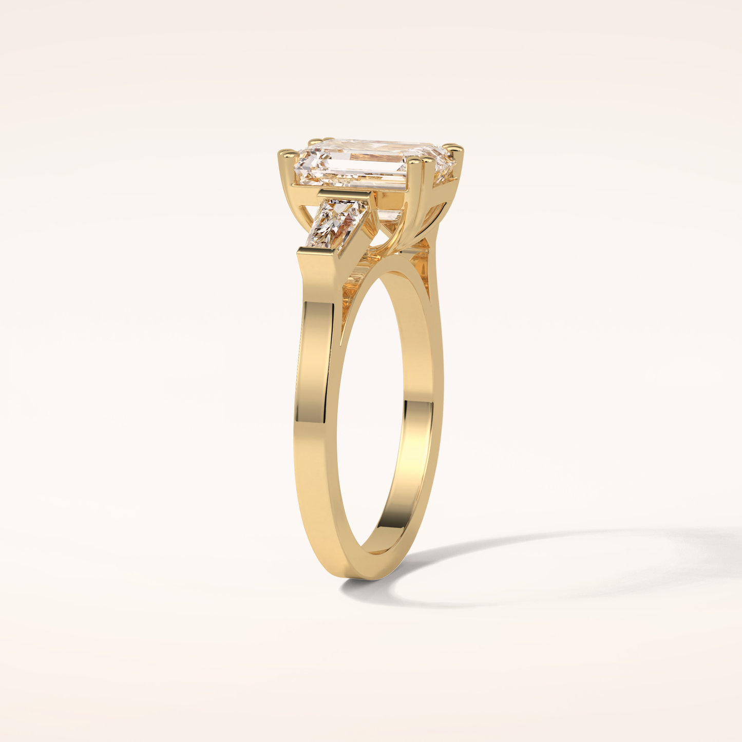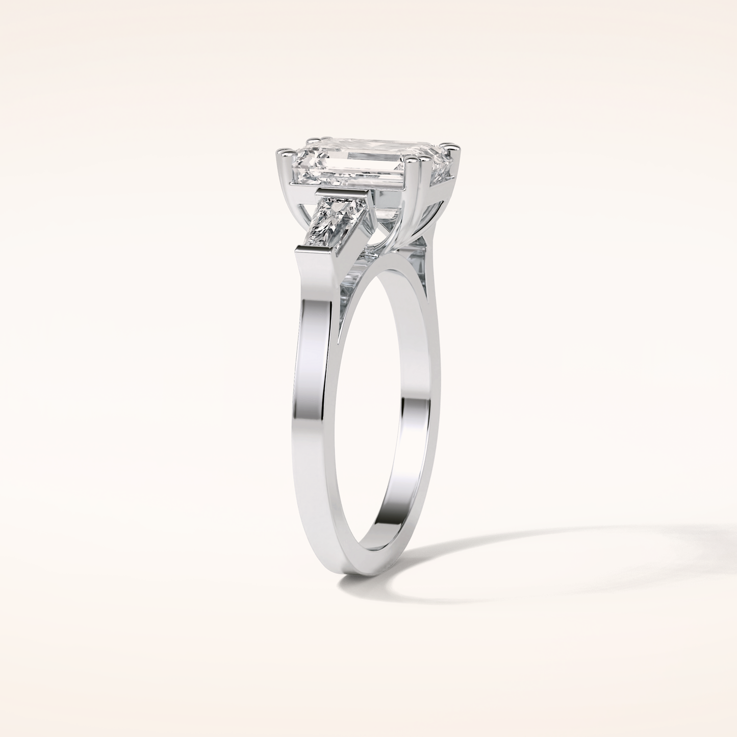 Emerald Three Stones Lab Grown Diamond Engagement Ring