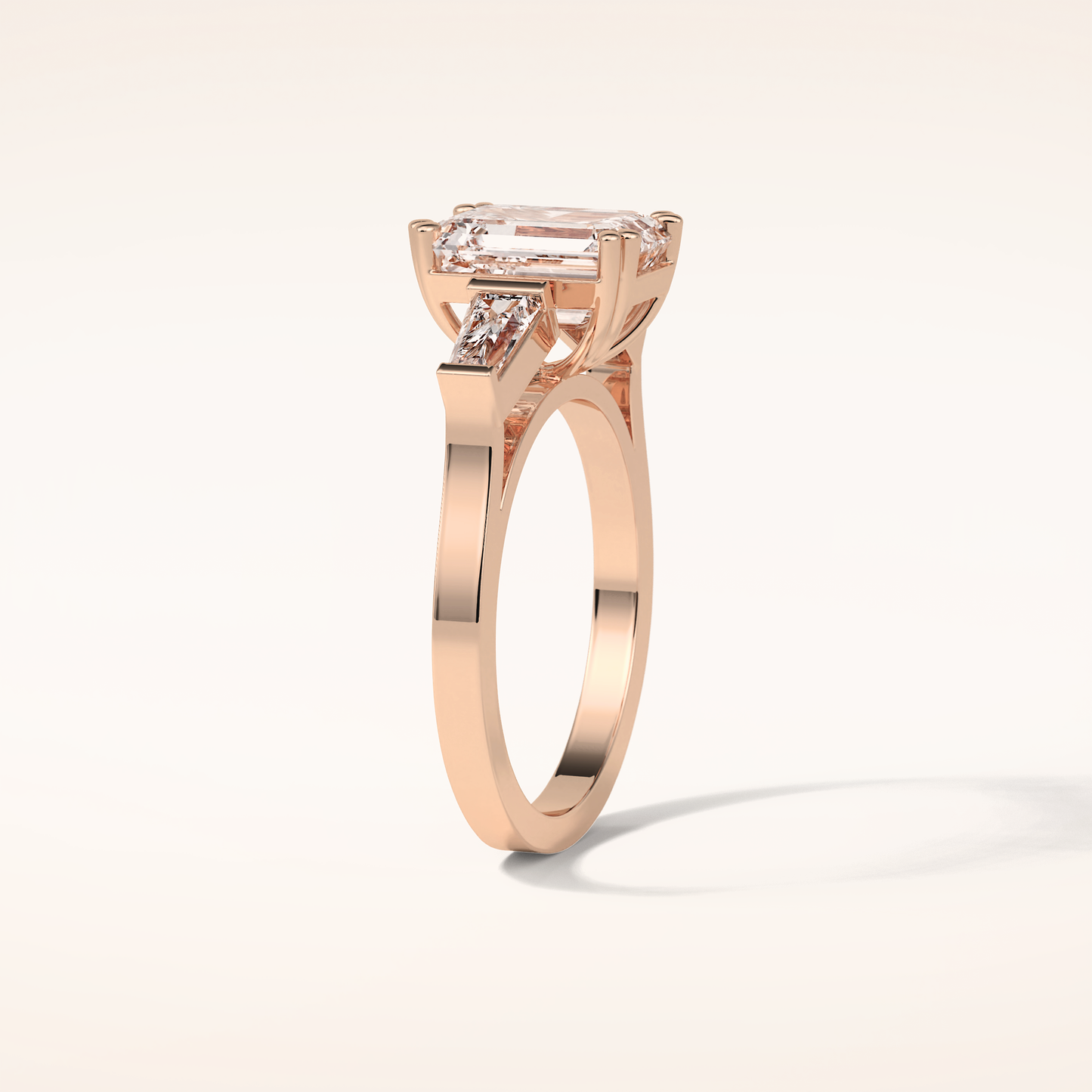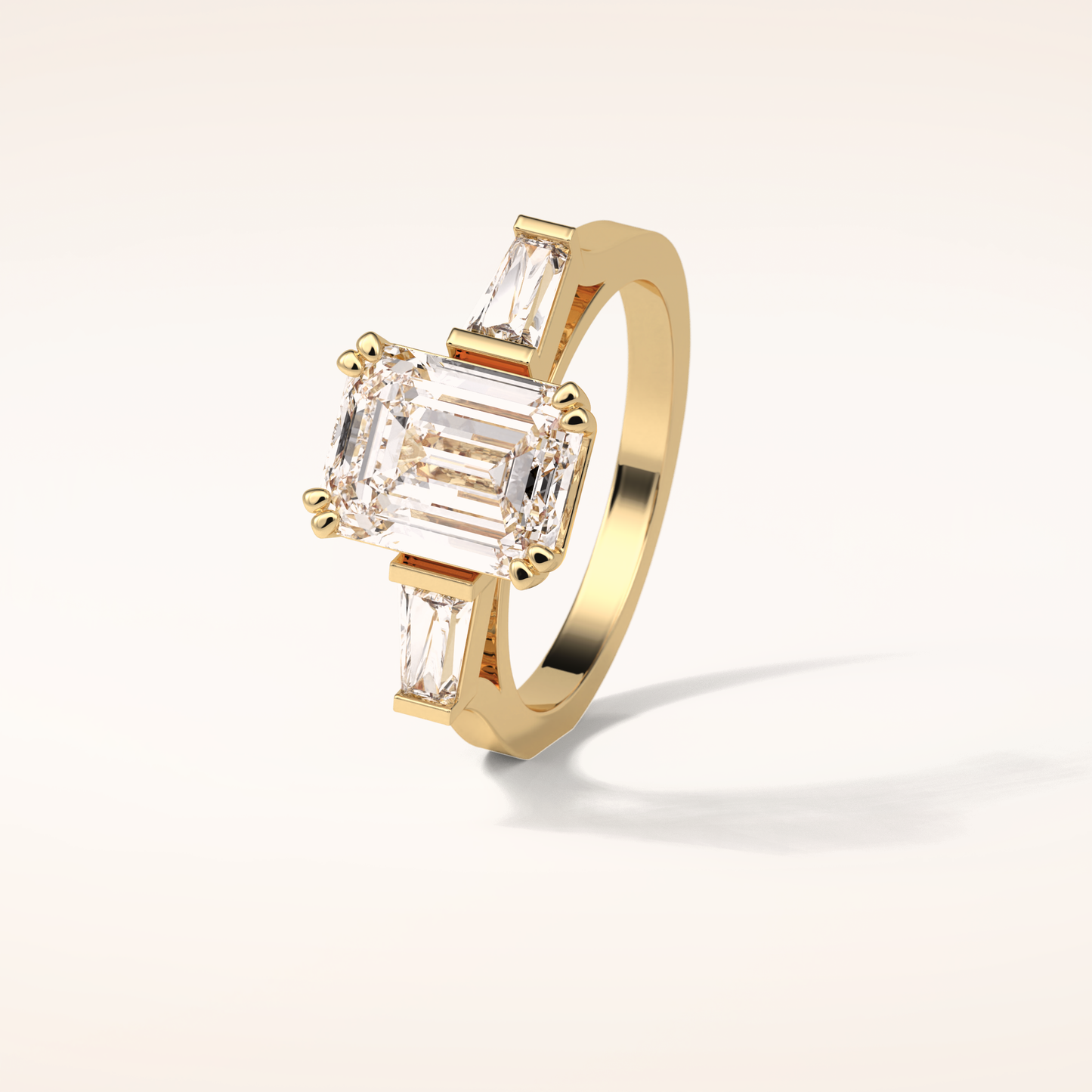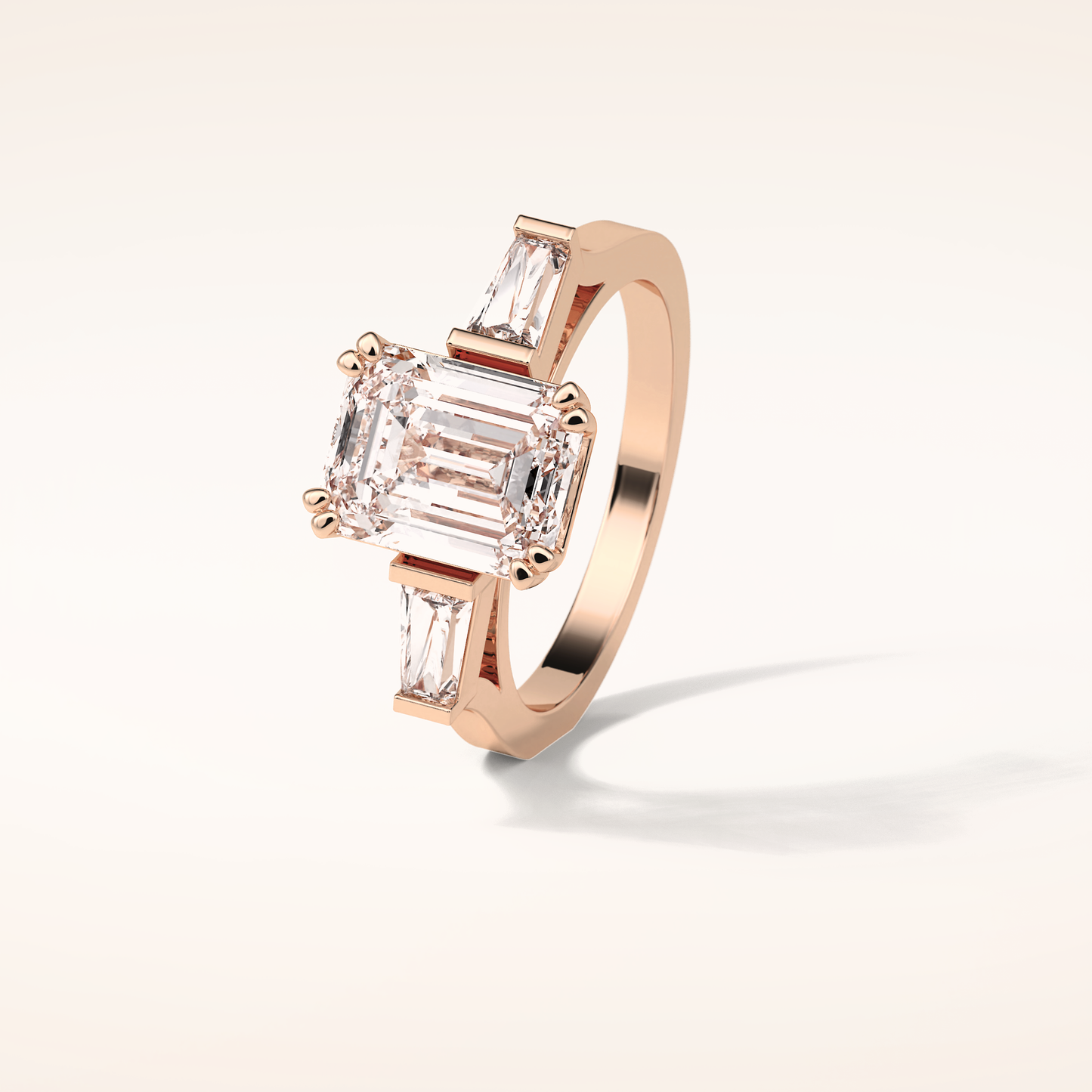 Emerald Three Stones Lab Grown Diamond Engagement Ring