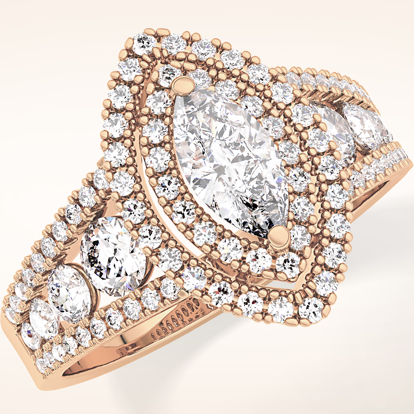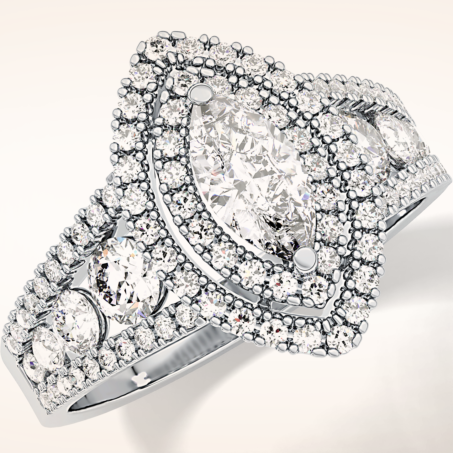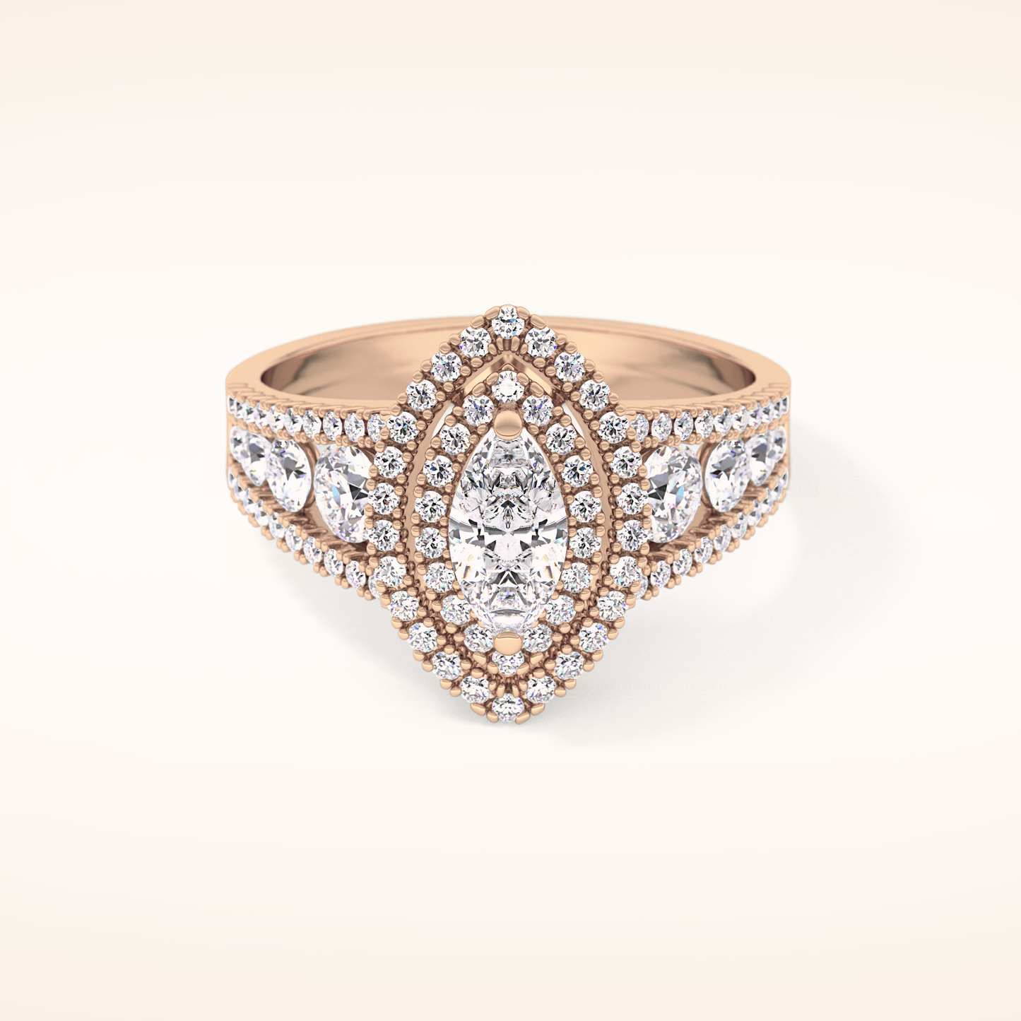 Marquise Double Halo & Pave Lab Grown Diamond Engagement Ring