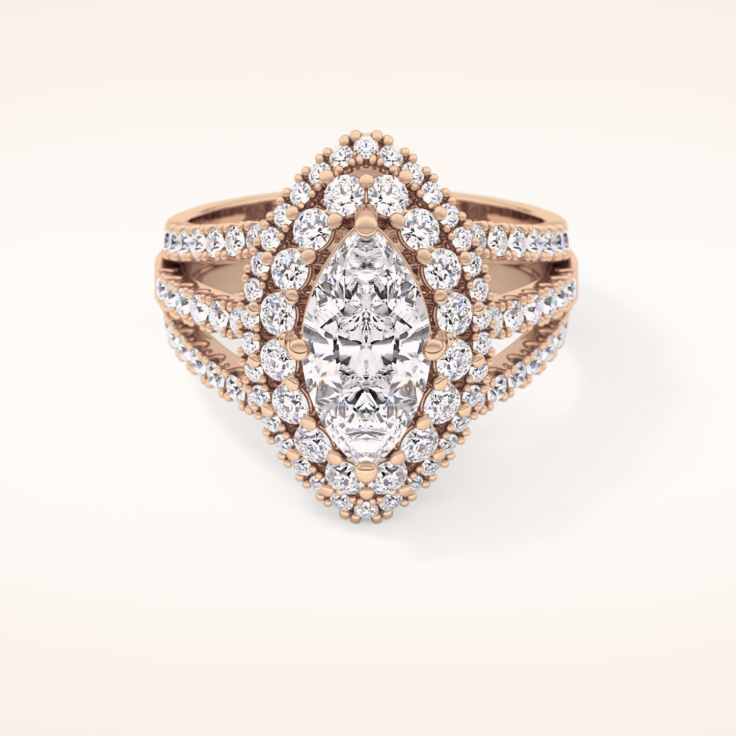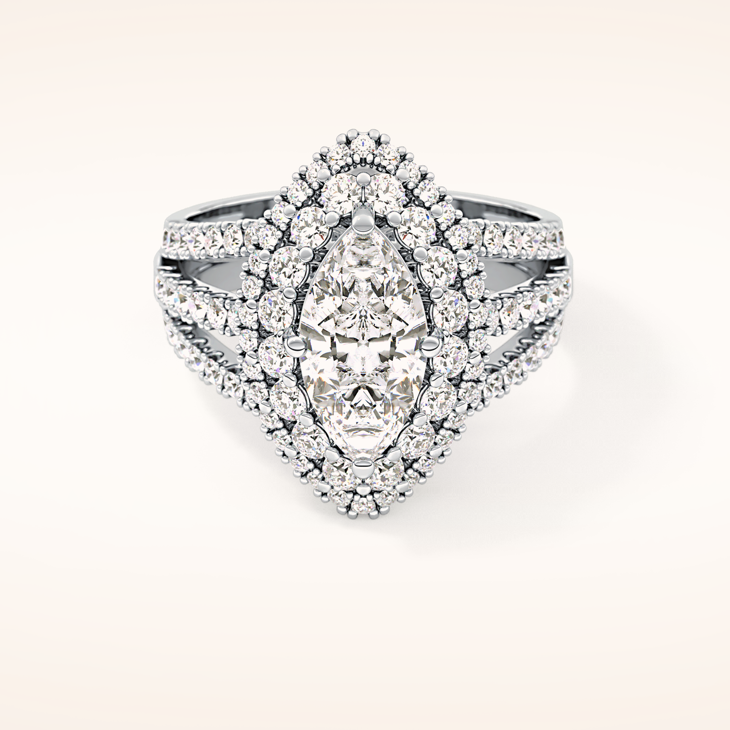 Marquise Double Halo & Split Shank Pave Lab Grown Diamond Engagement Ring