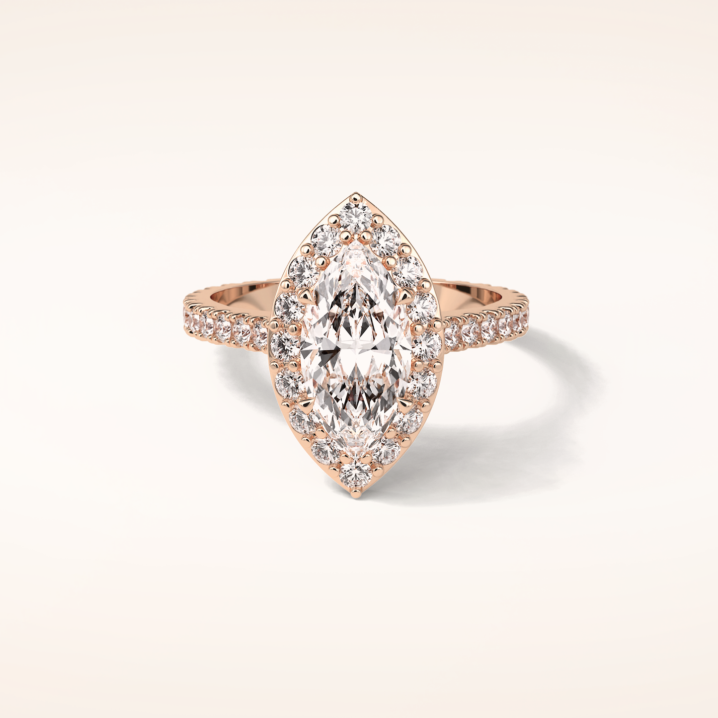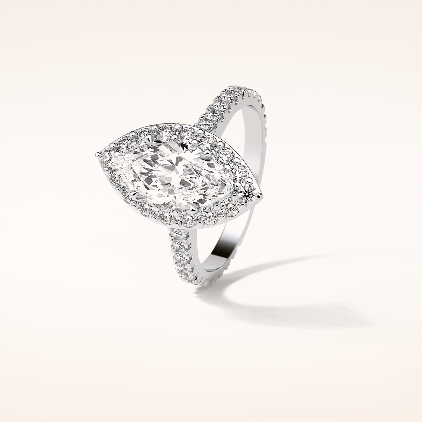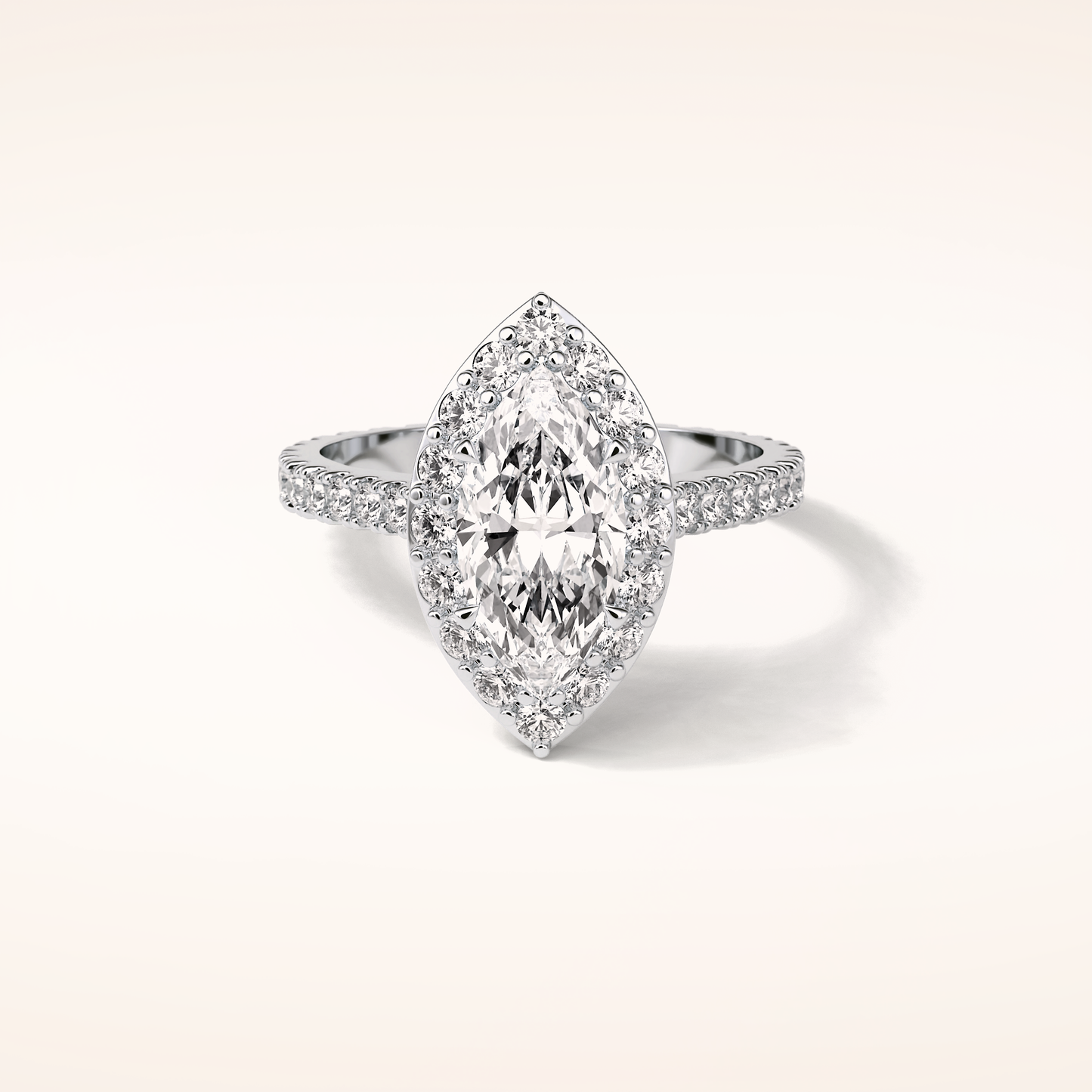 Marquise Pave & Halo Lab Grown Diamond Engagement Ring