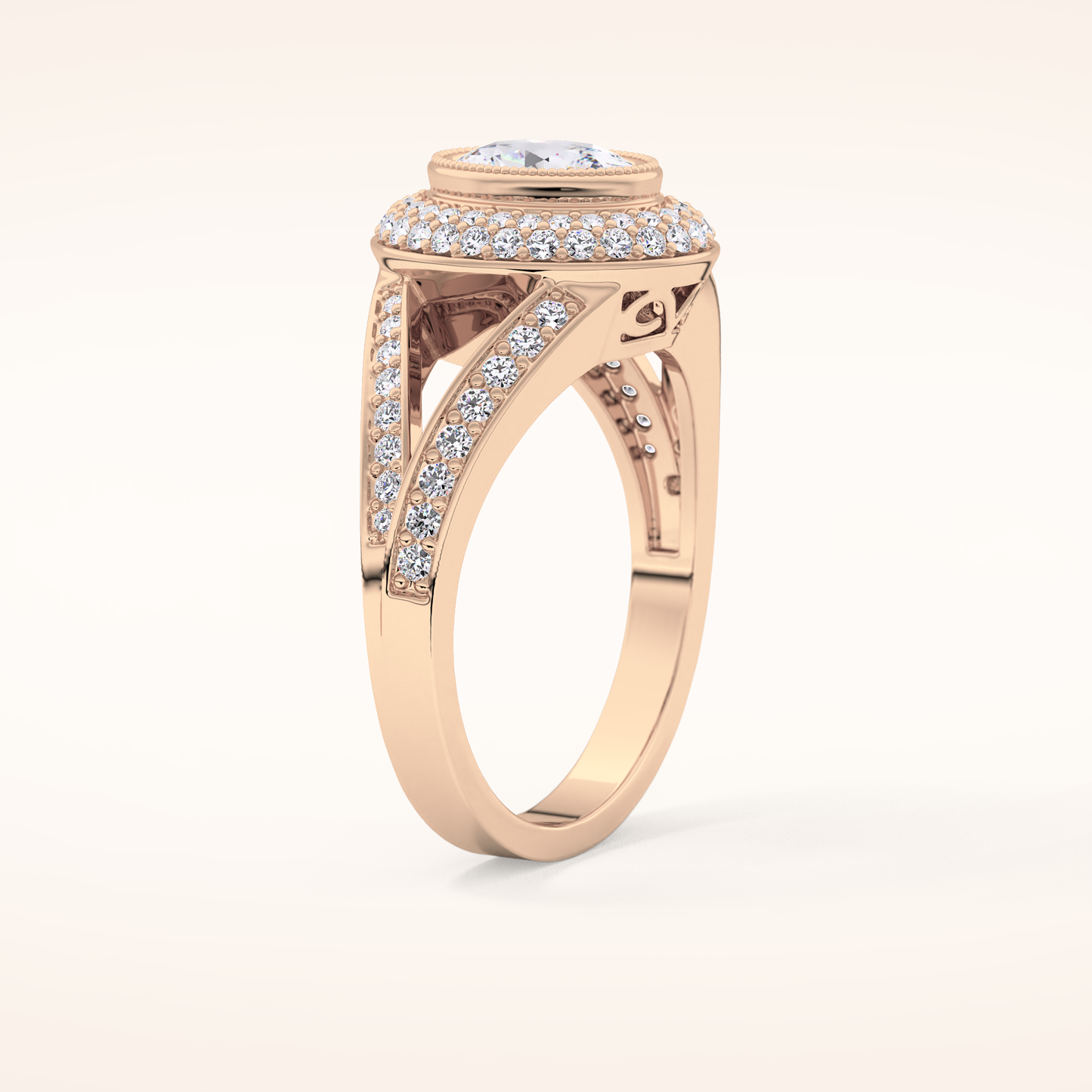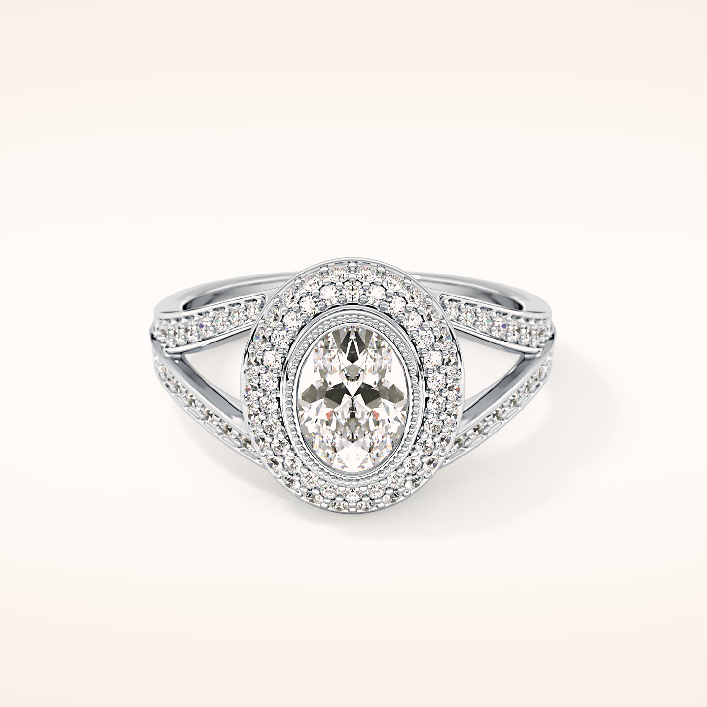 Oval Halo & Split Shank Pave Lab Grown Diamond Engagement Ring