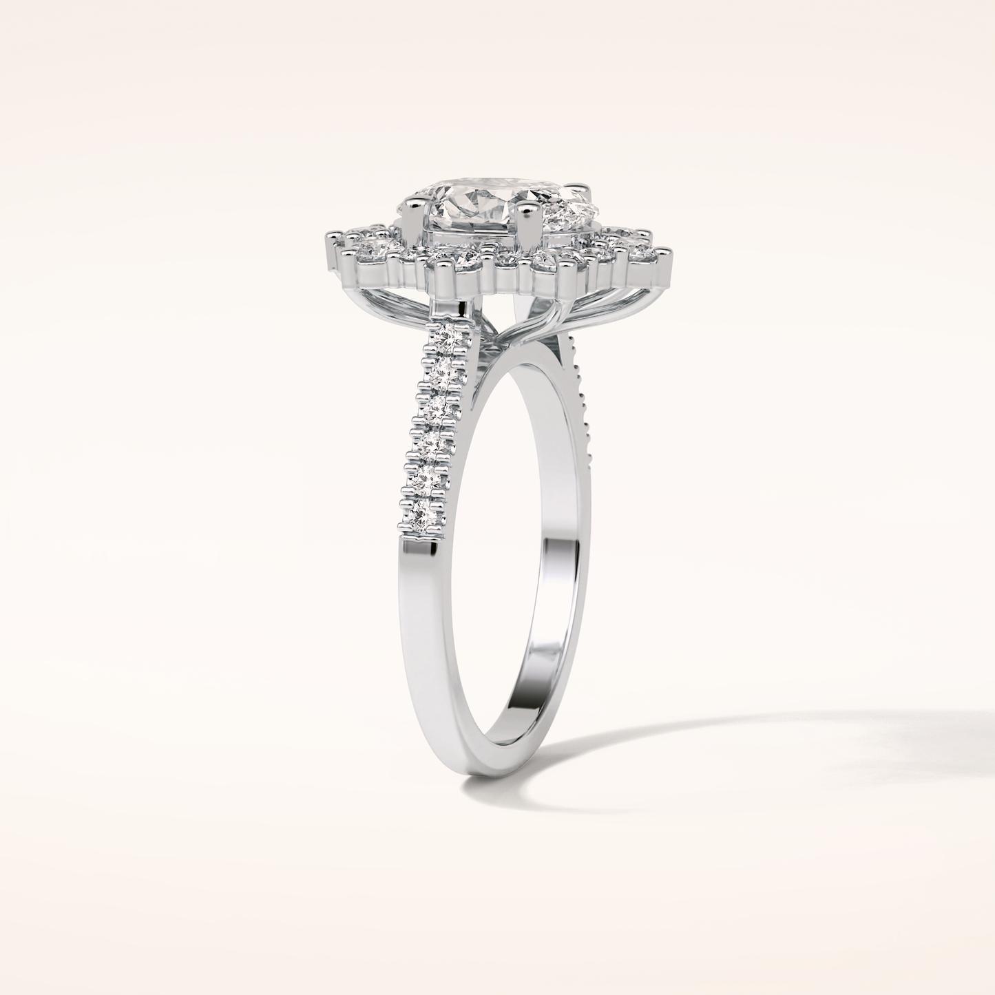 Oval Pave & Halo Lab Grown Diamond Engagement Ring