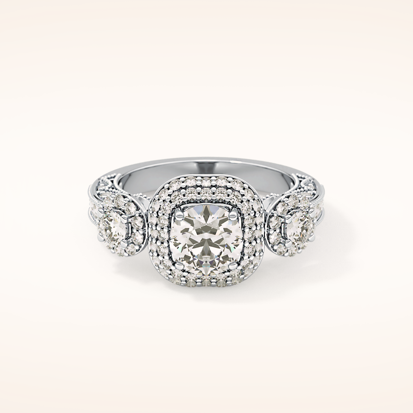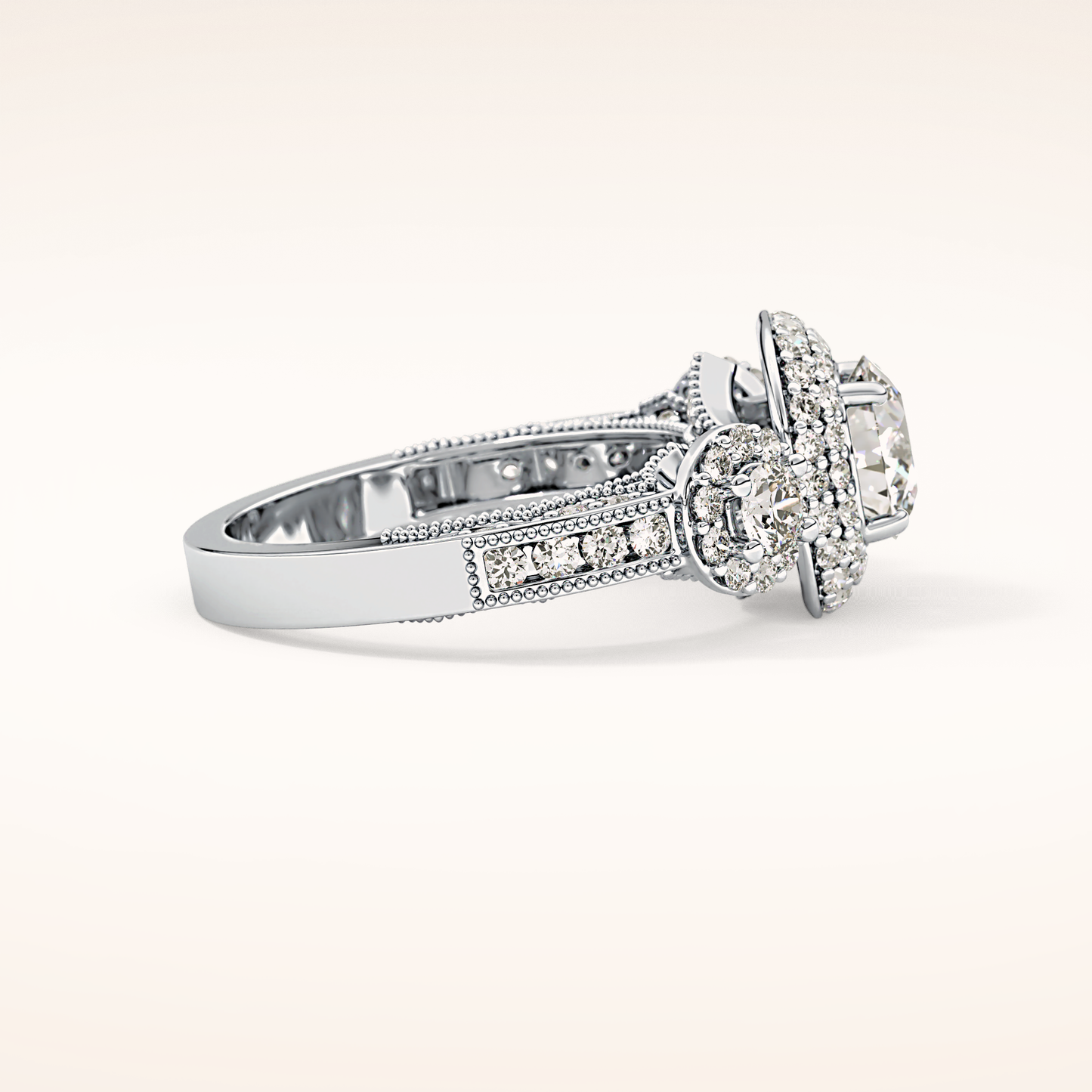 Round Cut Cluster Lab Grown Diamond Engagement Ring