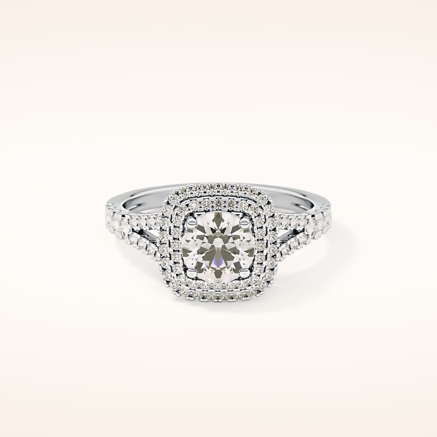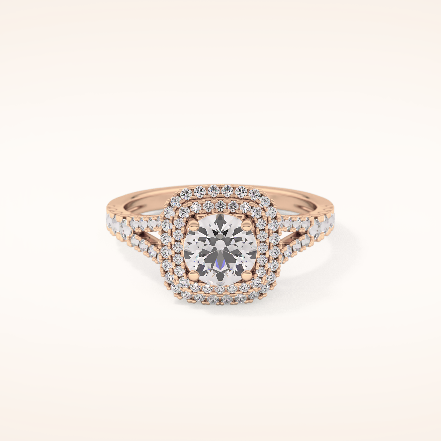Round Double Halo & Split Shank Pave Lab Grown Diamond Engagement Ring