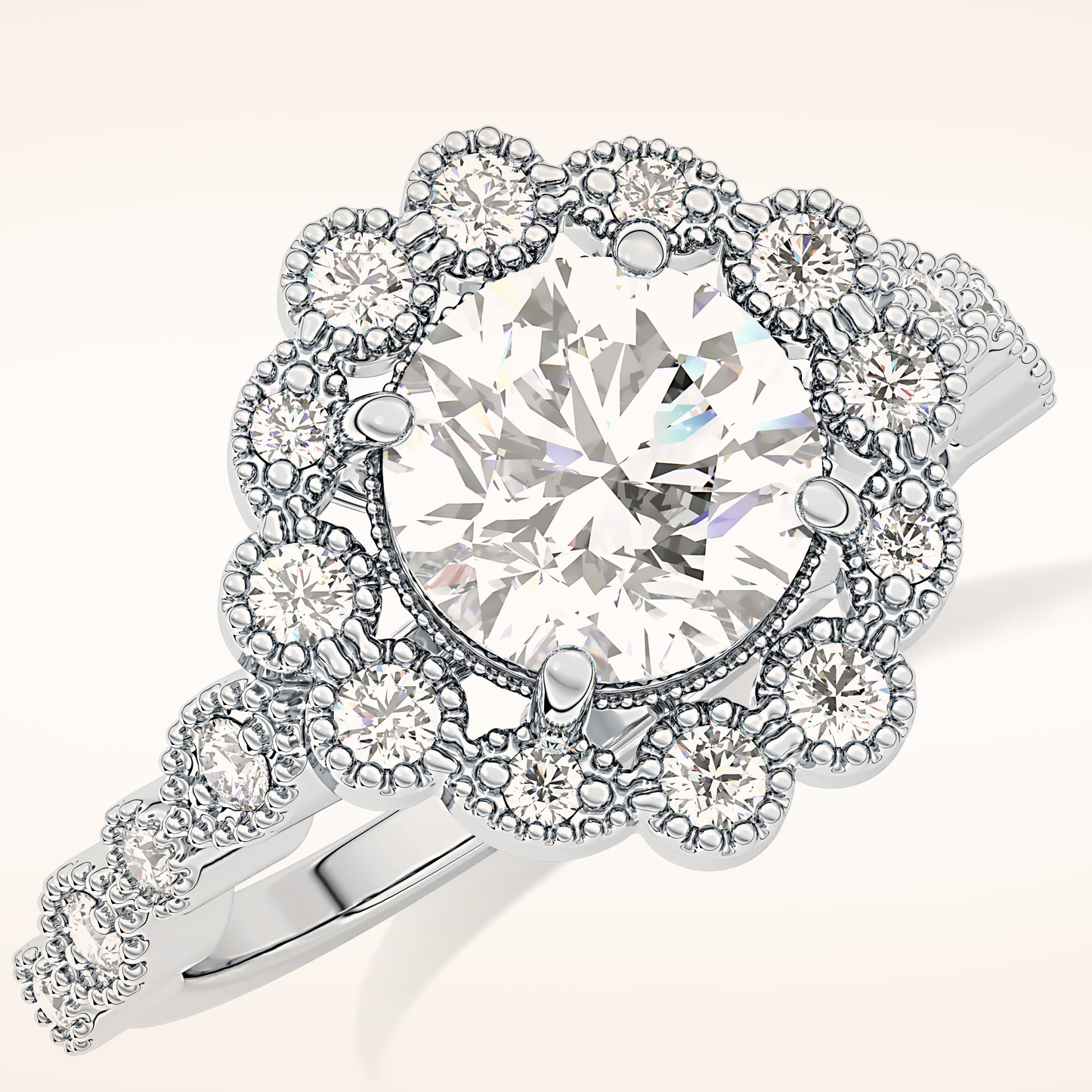 Round Halo & Pave Lab Grown Diamond Engagement Ring