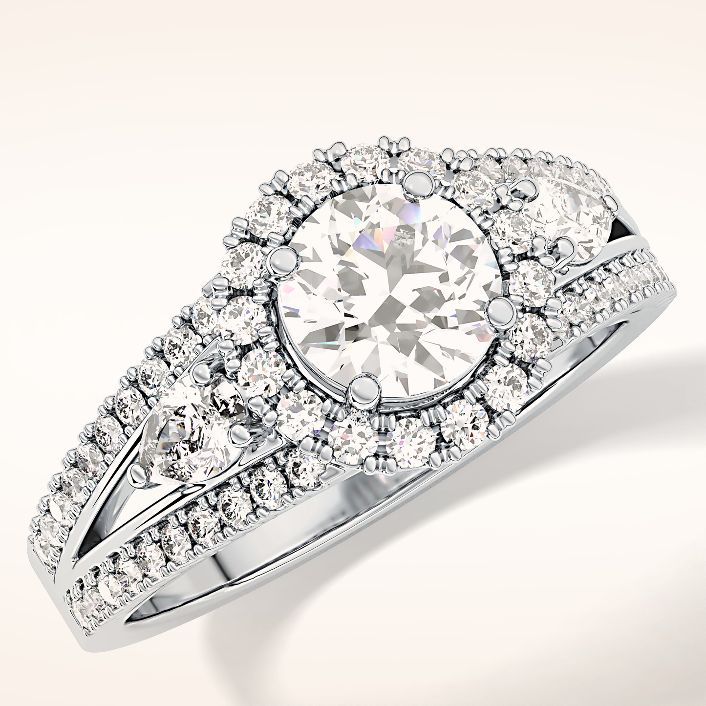 Round Halo & Split Shank Pave Lab Grown Diamond Engagement Ring