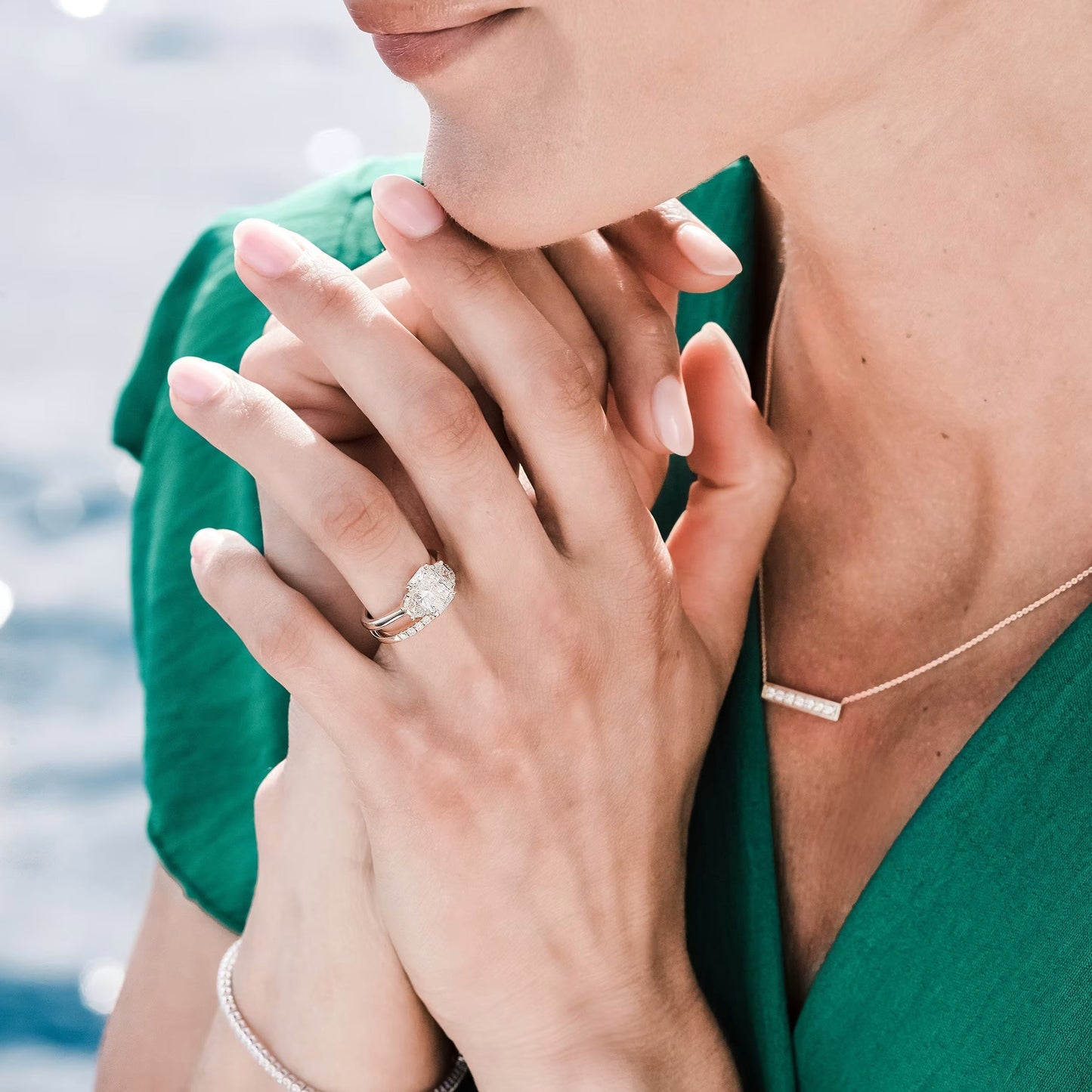 0.30 TCW Round Moissanite Diamond Bar Pendant Necklace in Solid Gold 6