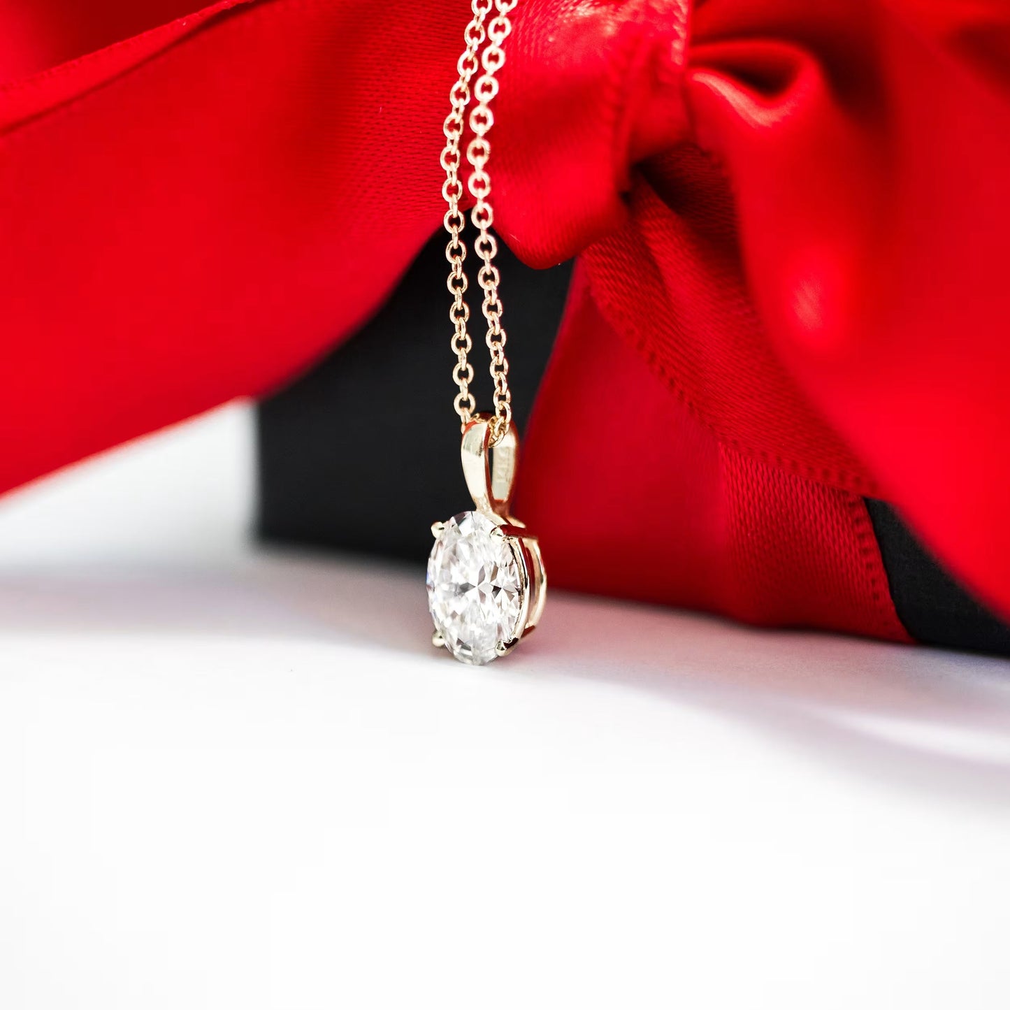 1.0 CT Oval Cut Moissanite Diamond Solitaire Pendant Necklace in Solid Gold
