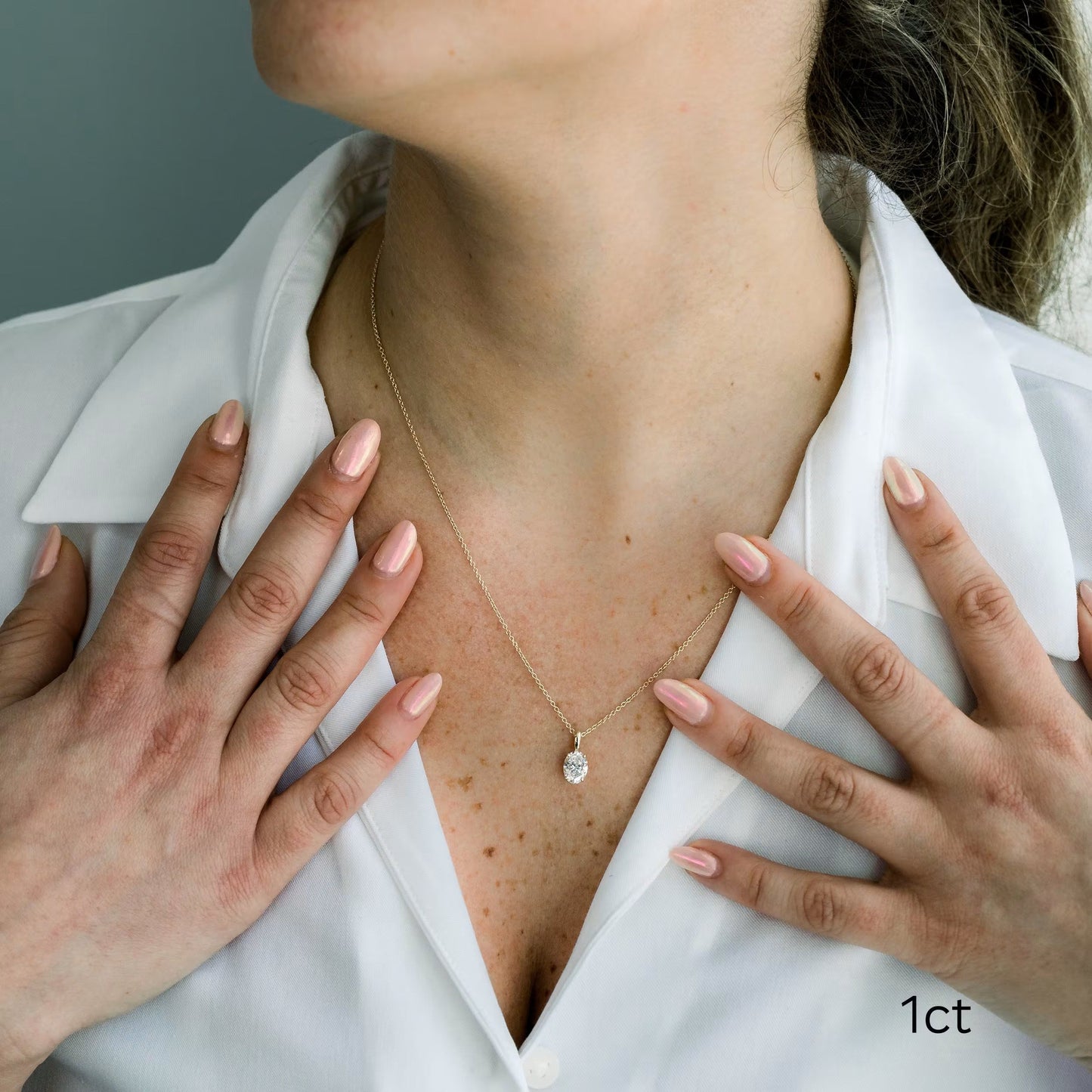 1.0 CT Oval Cut Moissanite Diamond Solitaire Pendant Necklace in Solid Gold 8