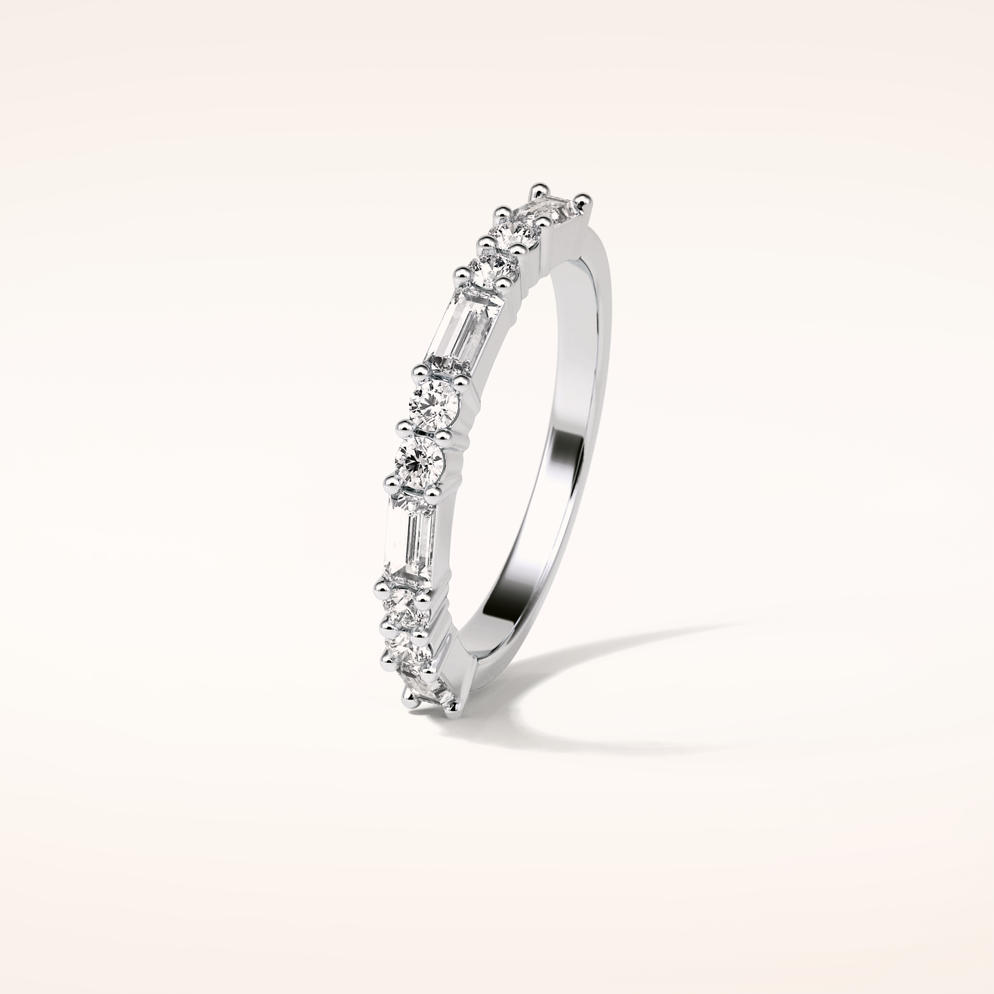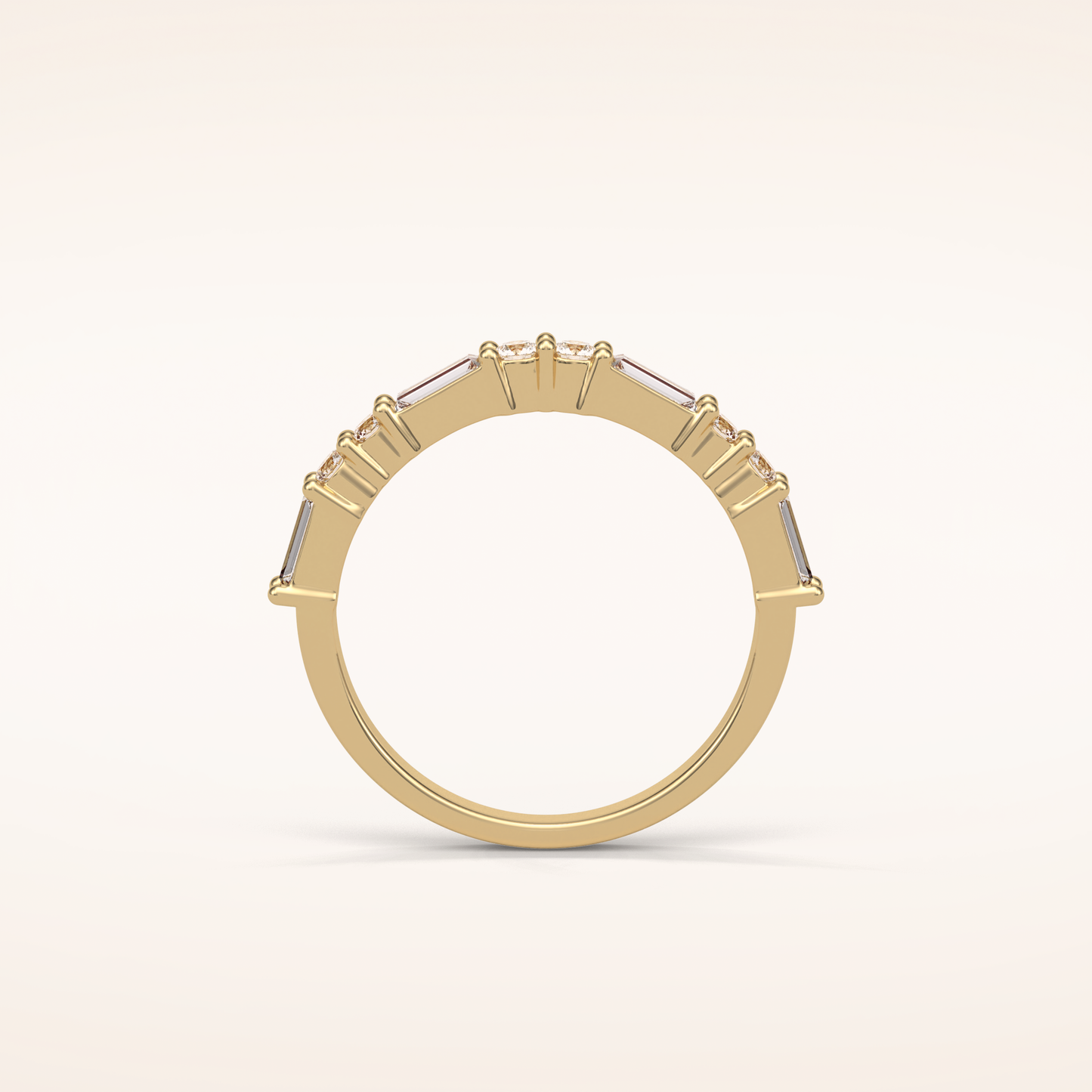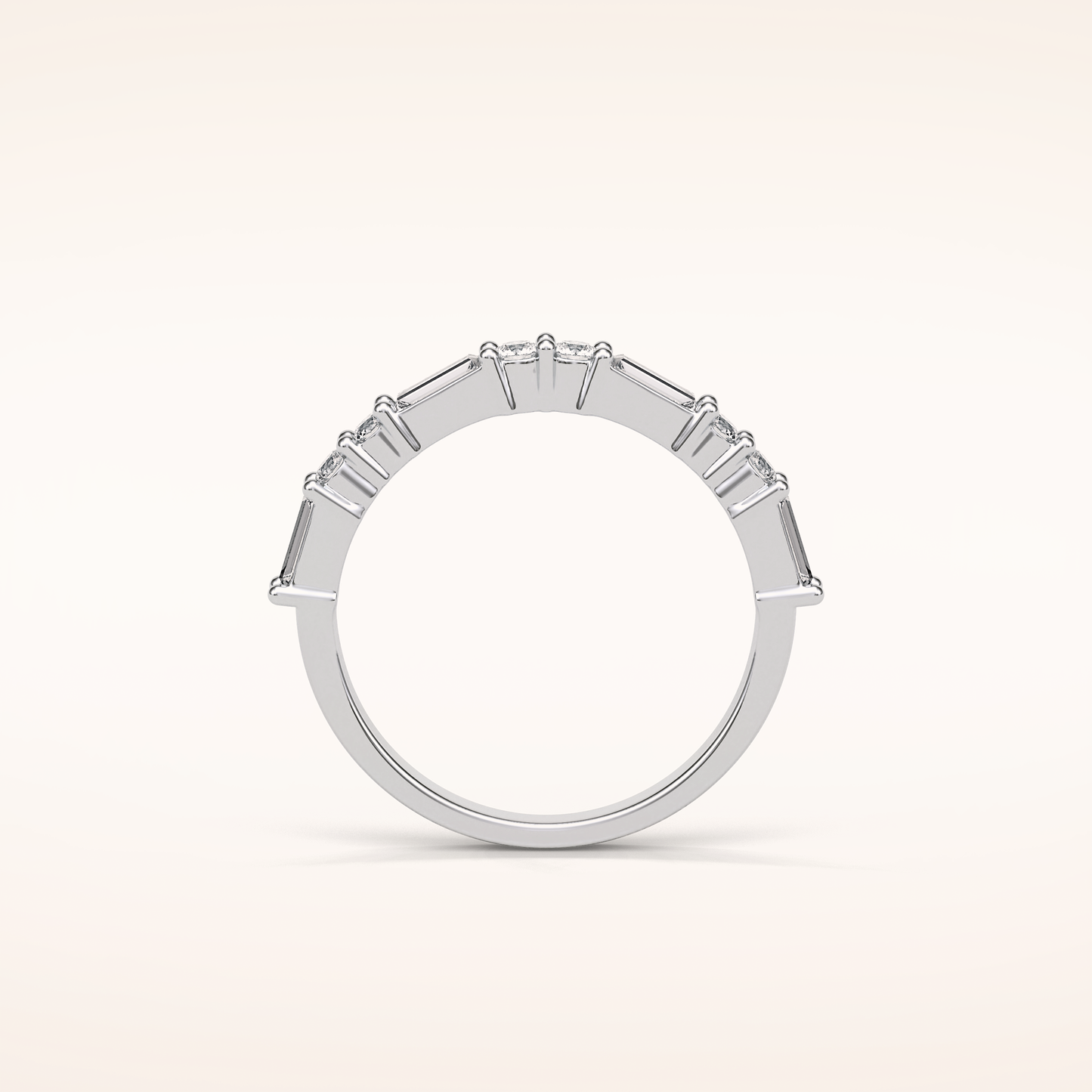 0.64 CT Baguette and Round Moissanite Half Eternity Wedding Band in Solid Gold – DEF Color, VVS Clarity