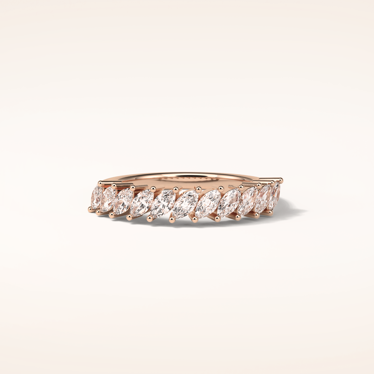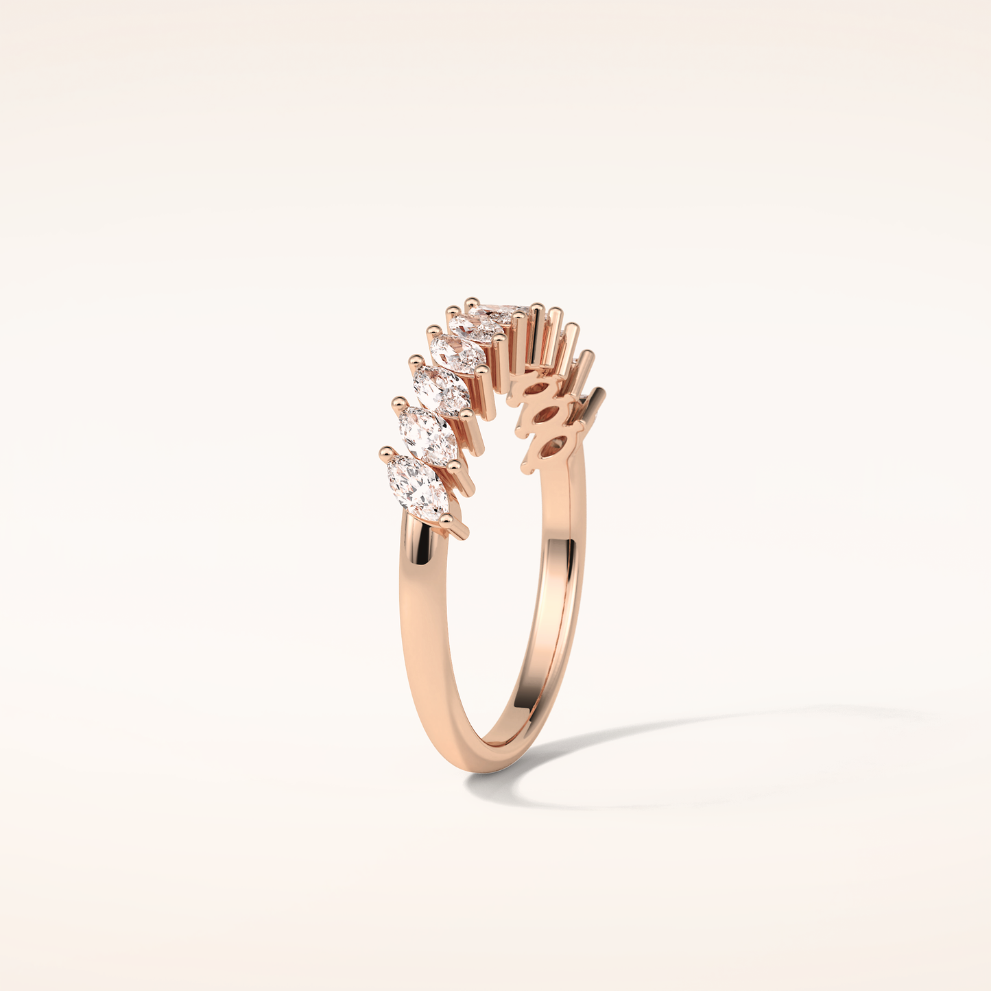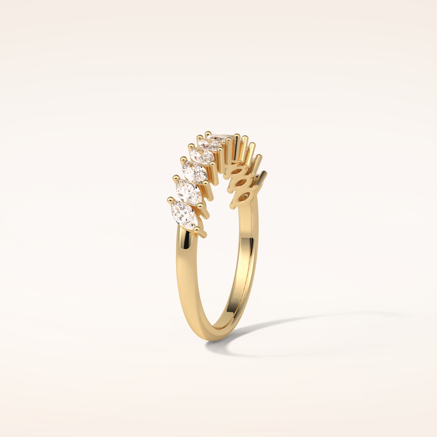 0.78 CT Marquise Moissanite Half Eternity Wedding Band in Solid Gold – DEF Color, VVS Clarity