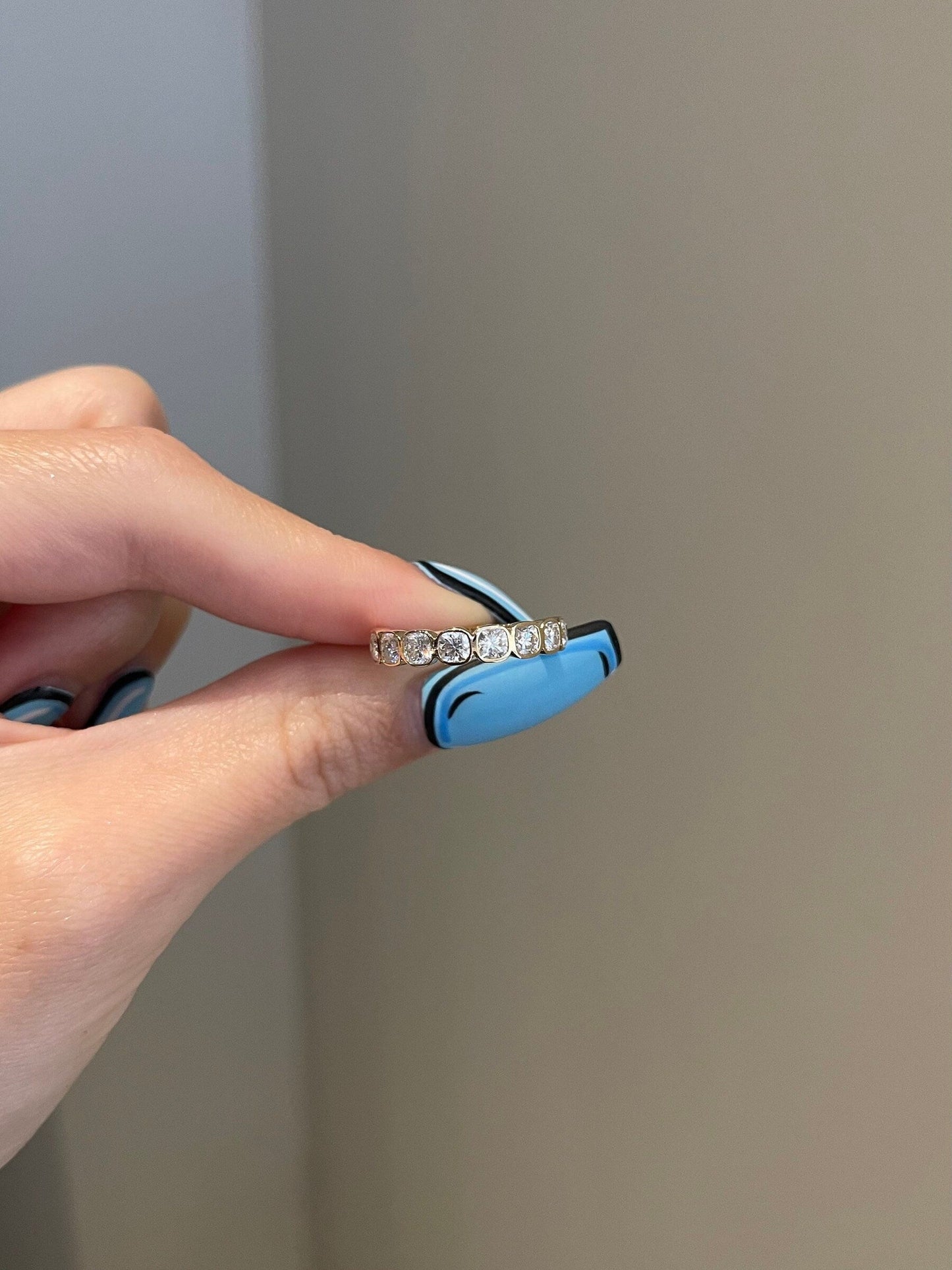 ✦ The Band Shown in the Picture Holds Beautiful 0.90 TCW Cushion Moissanite.