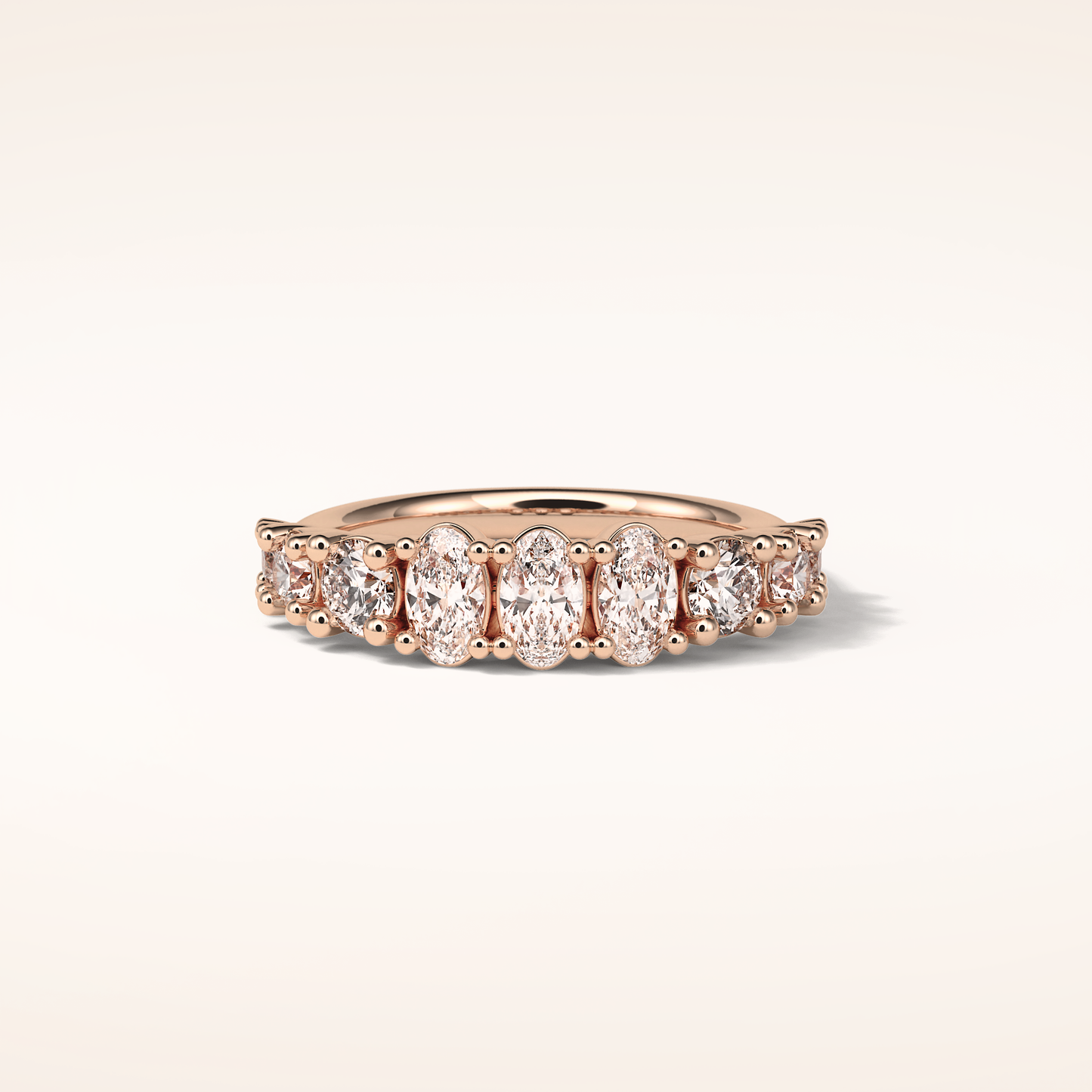 1.2 CT Oval and Round Moissanite Half Eternity Wedding Band in Solid Gold – DEF Color, VVS Clarity