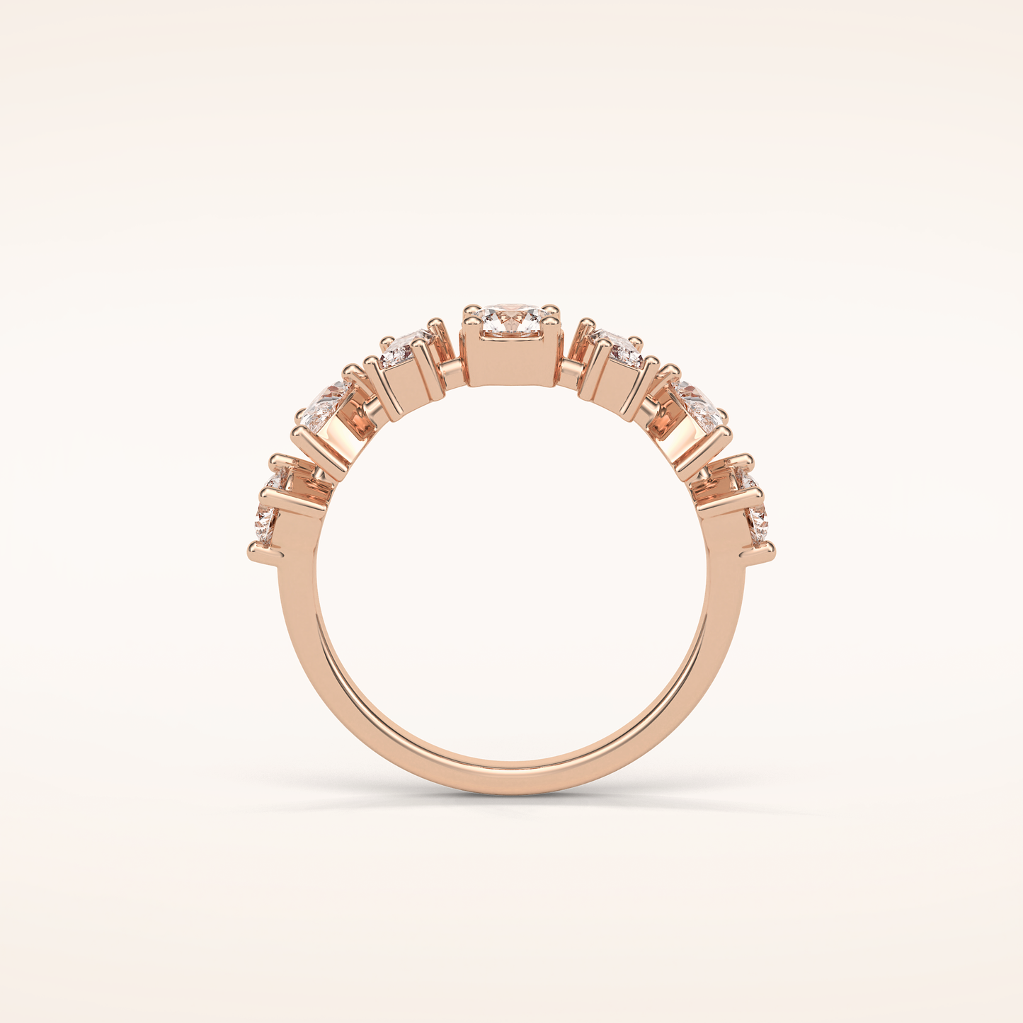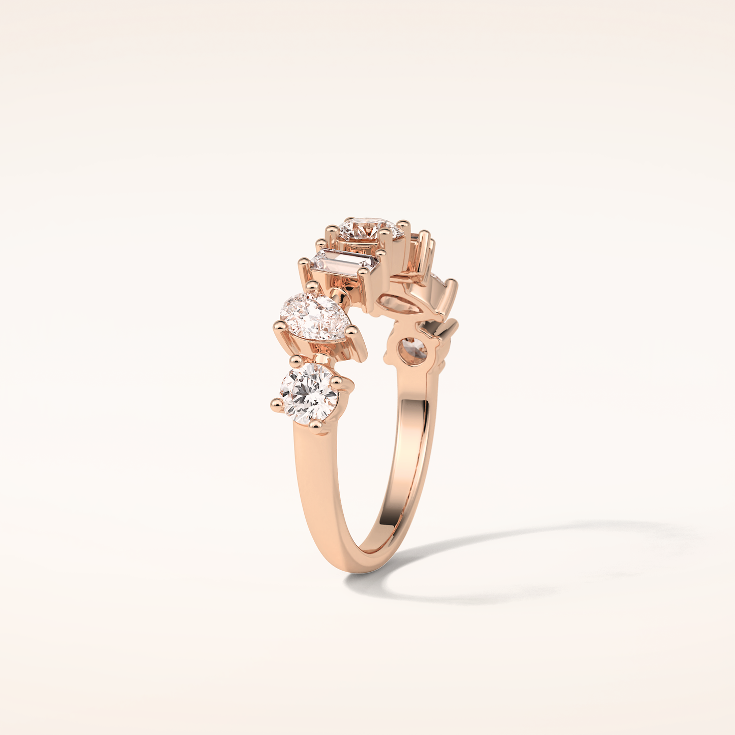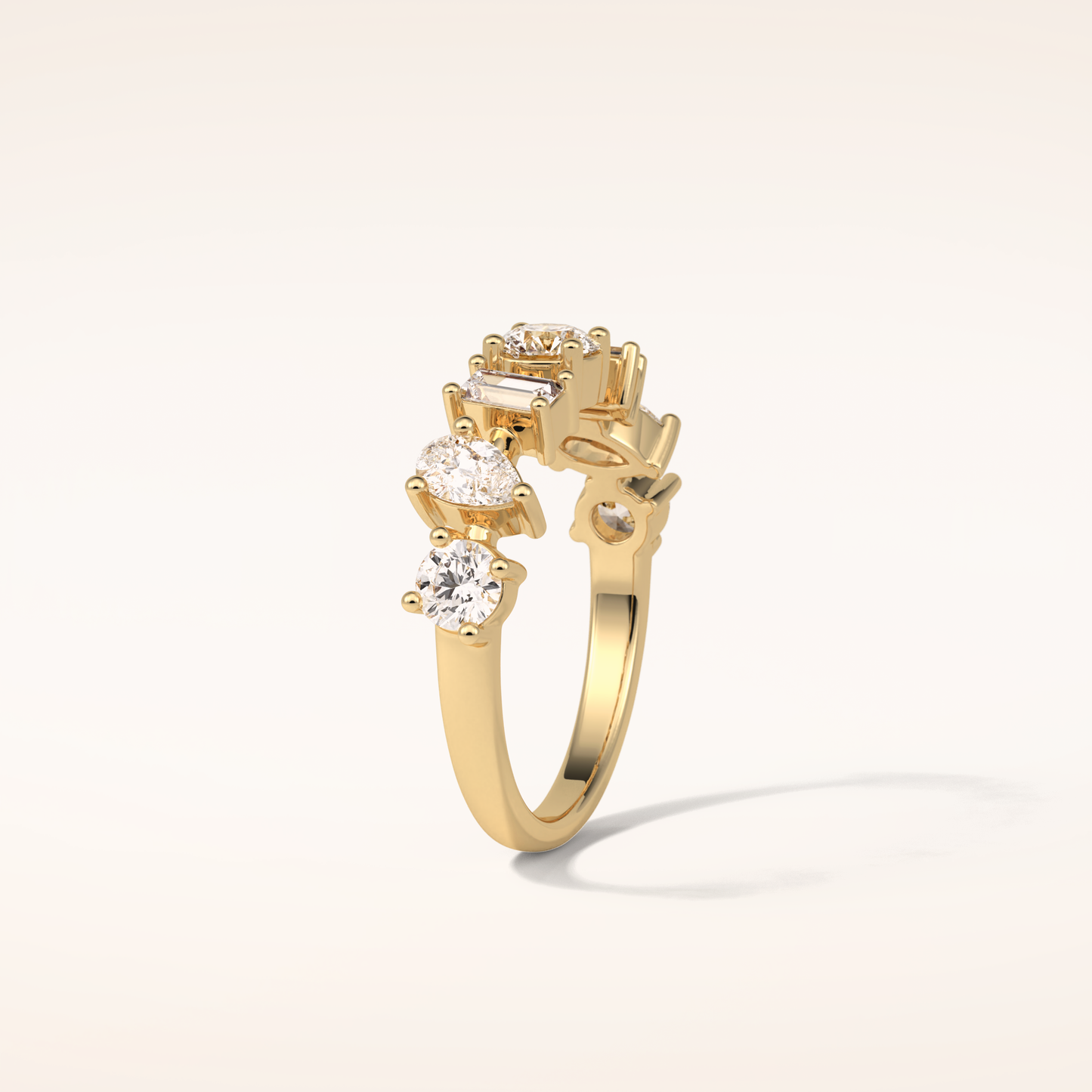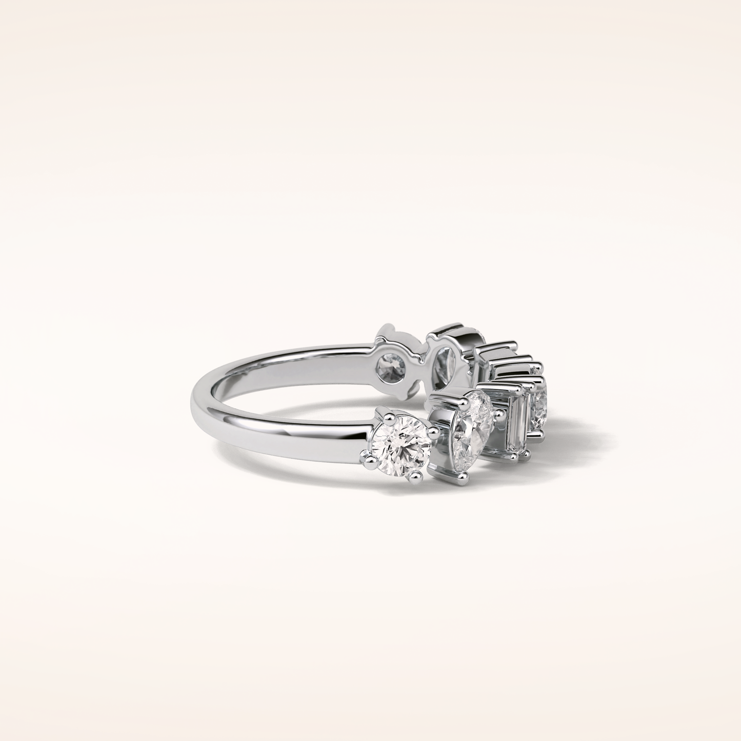 Elegant, modern, and full of meaning—this Half Eternity Moissanite wedding band adds a graceful contour to any engagement ring or makes a statement all on its own. Featuring 1.4 total carats of pear, baguette and round-cut Moissanite, each stone is carefully set to follow the gentle curve of the band, creating a sophisticated sparkle that complements every hand.
