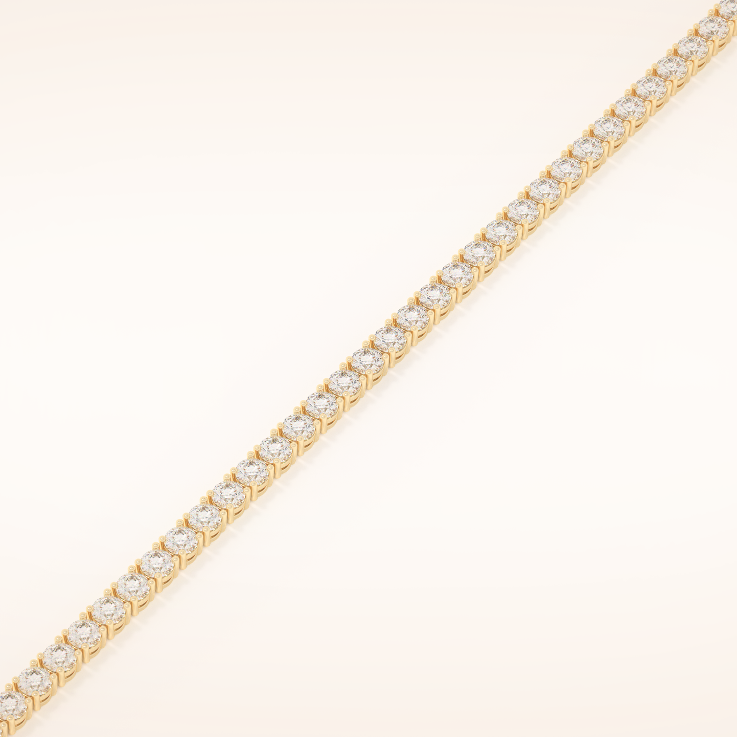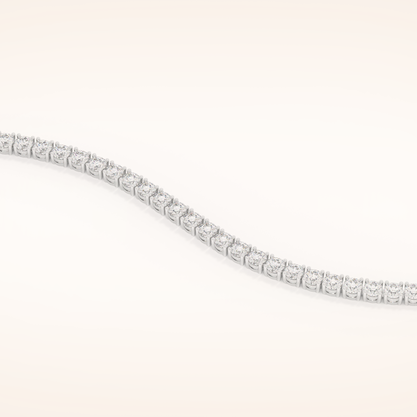 This bracelet showcases ethically grown lab-created round cut diamonds celebrated for their sharp symmetry and refined brilliance. With total diamond weights ranging from 5.07 carats, each stone is selected in EF color and VS1 clarity, offering luminous sparkle with no visible inclusions.
