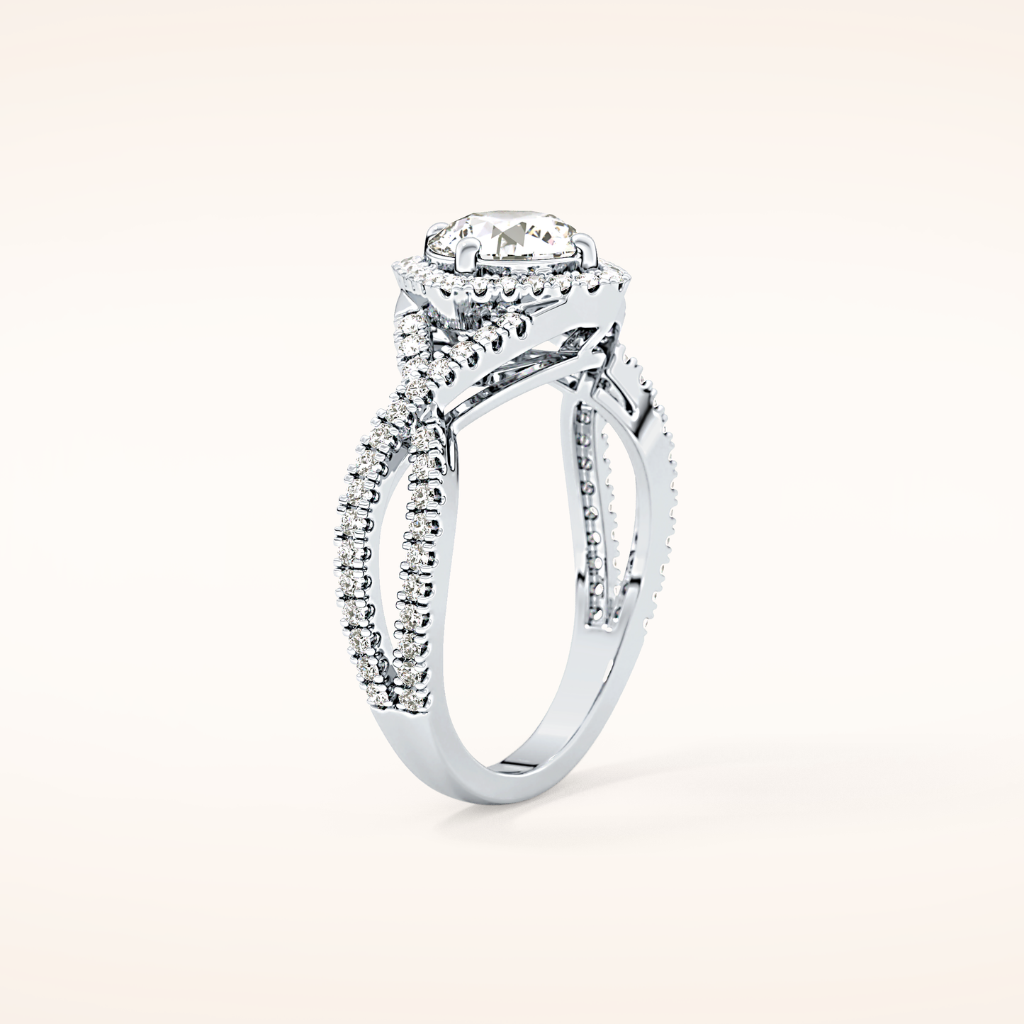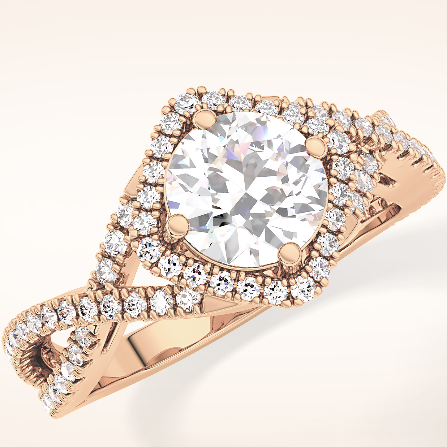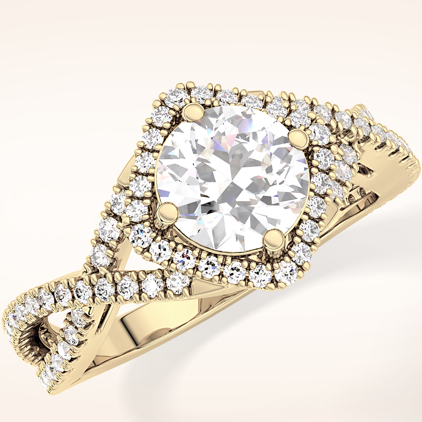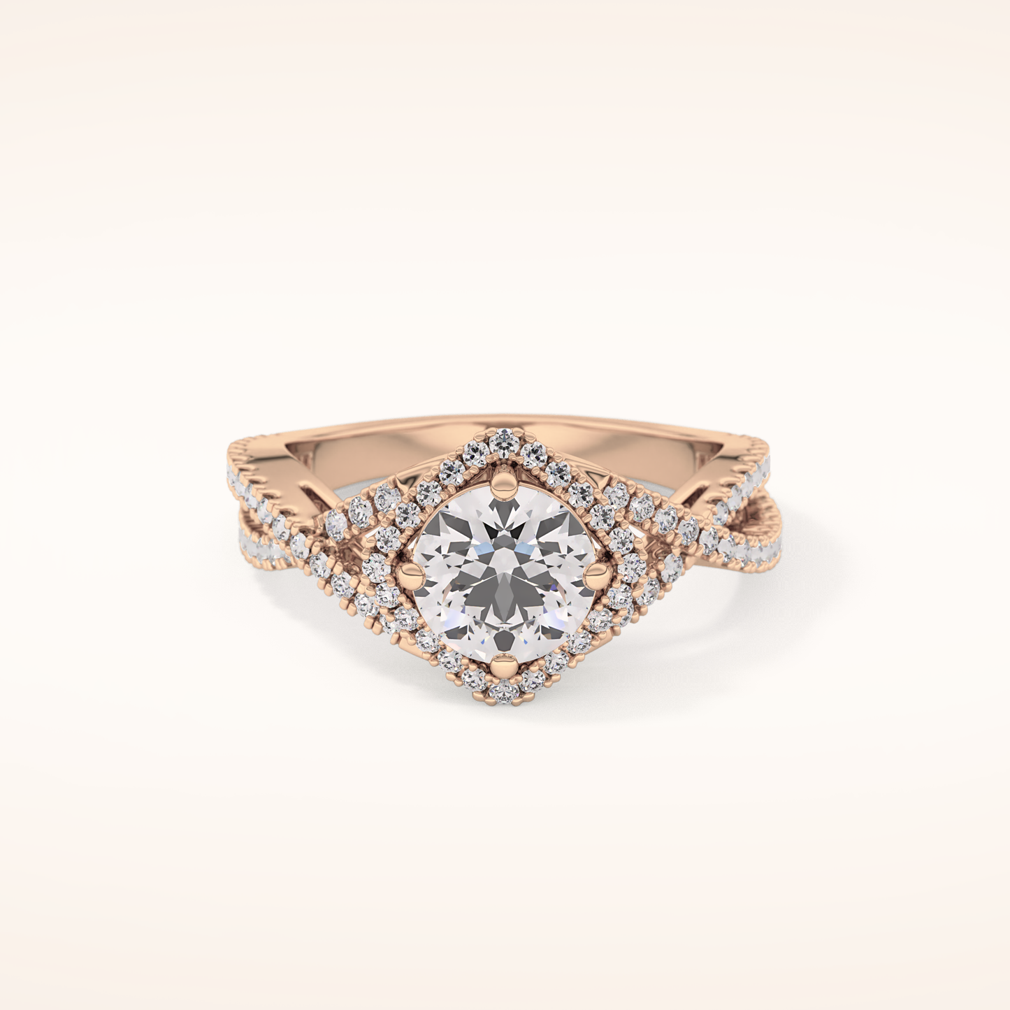 Round Halo Pave Lab Grown Diamond Engagement Ring
