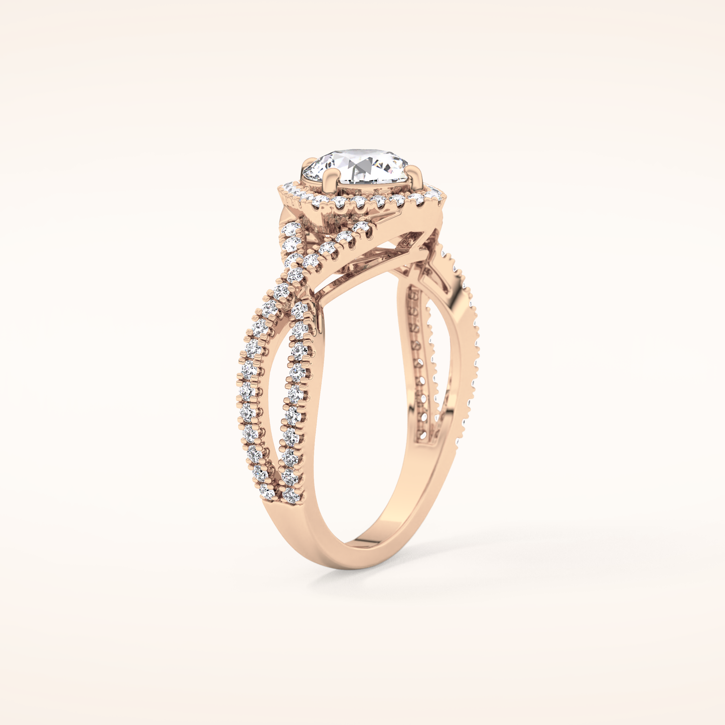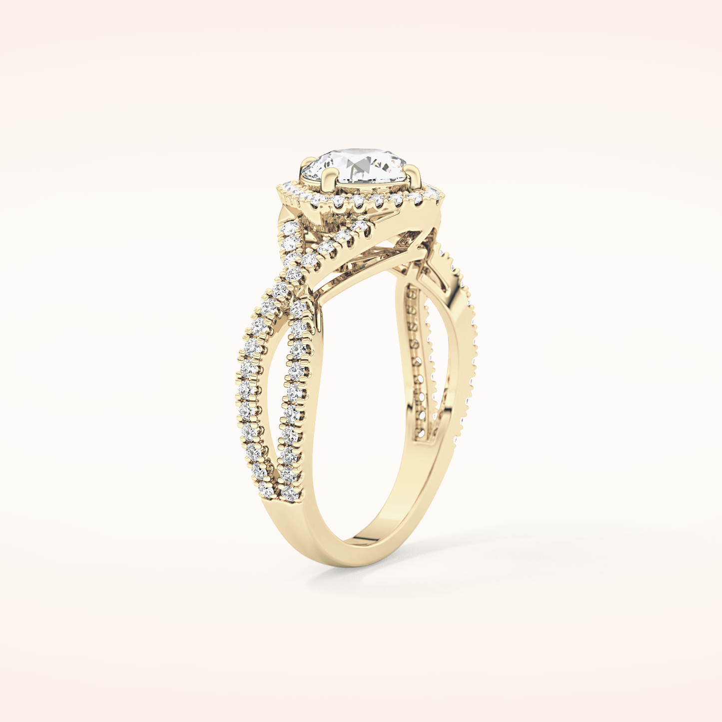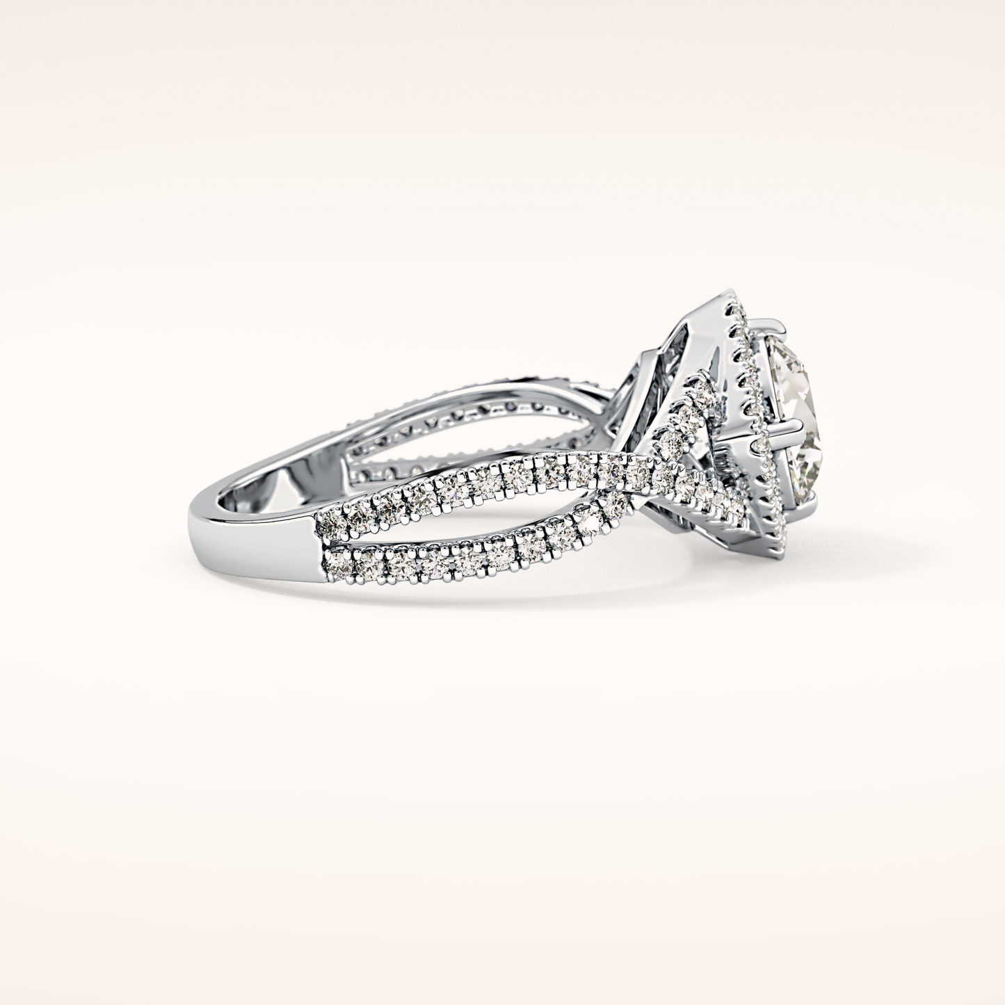 Round Halo Pave Lab Grown Diamond Engagement Ring