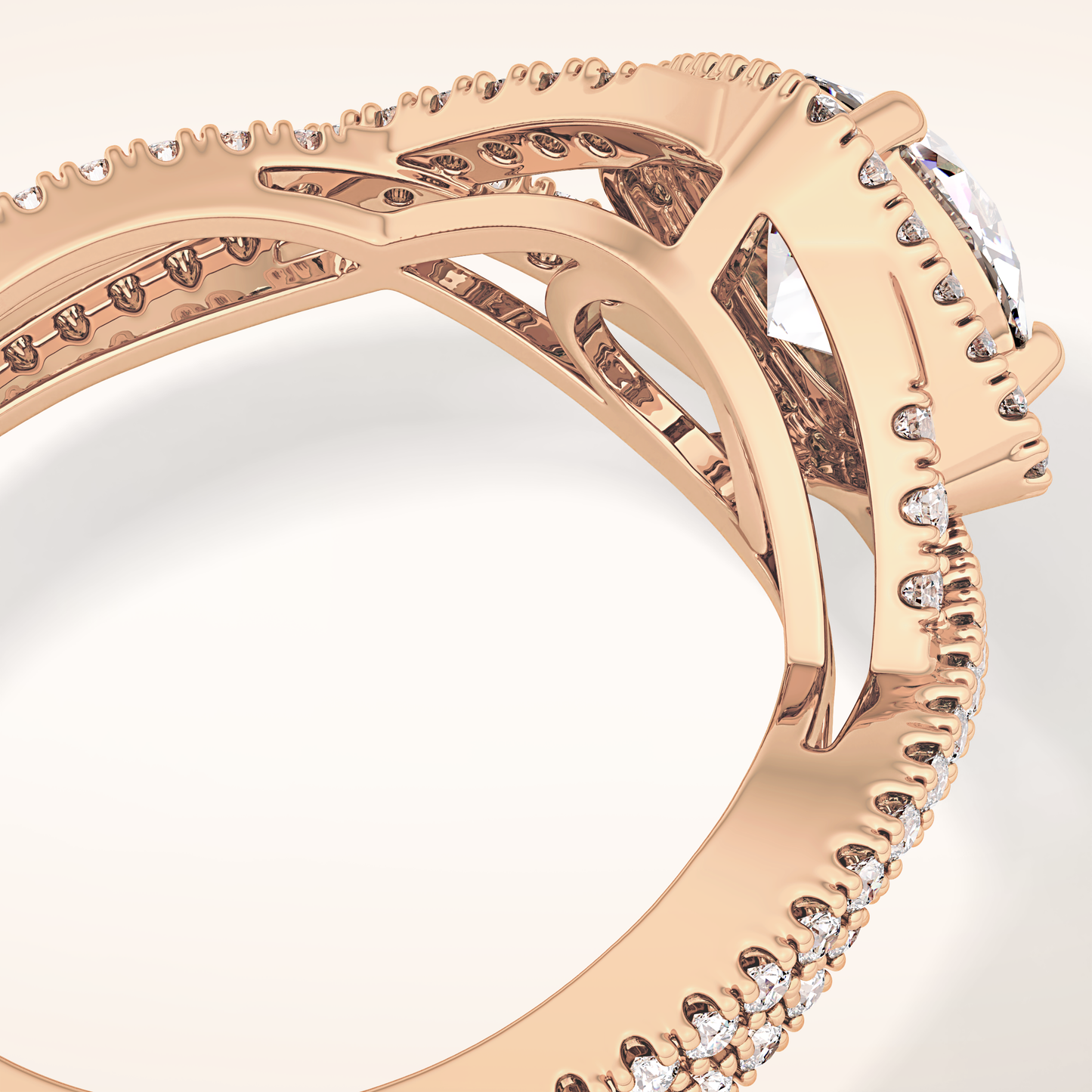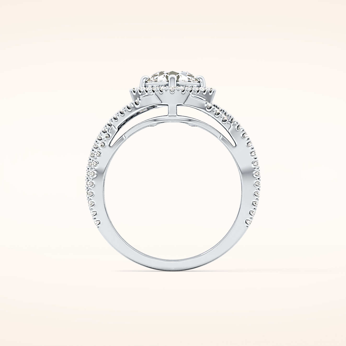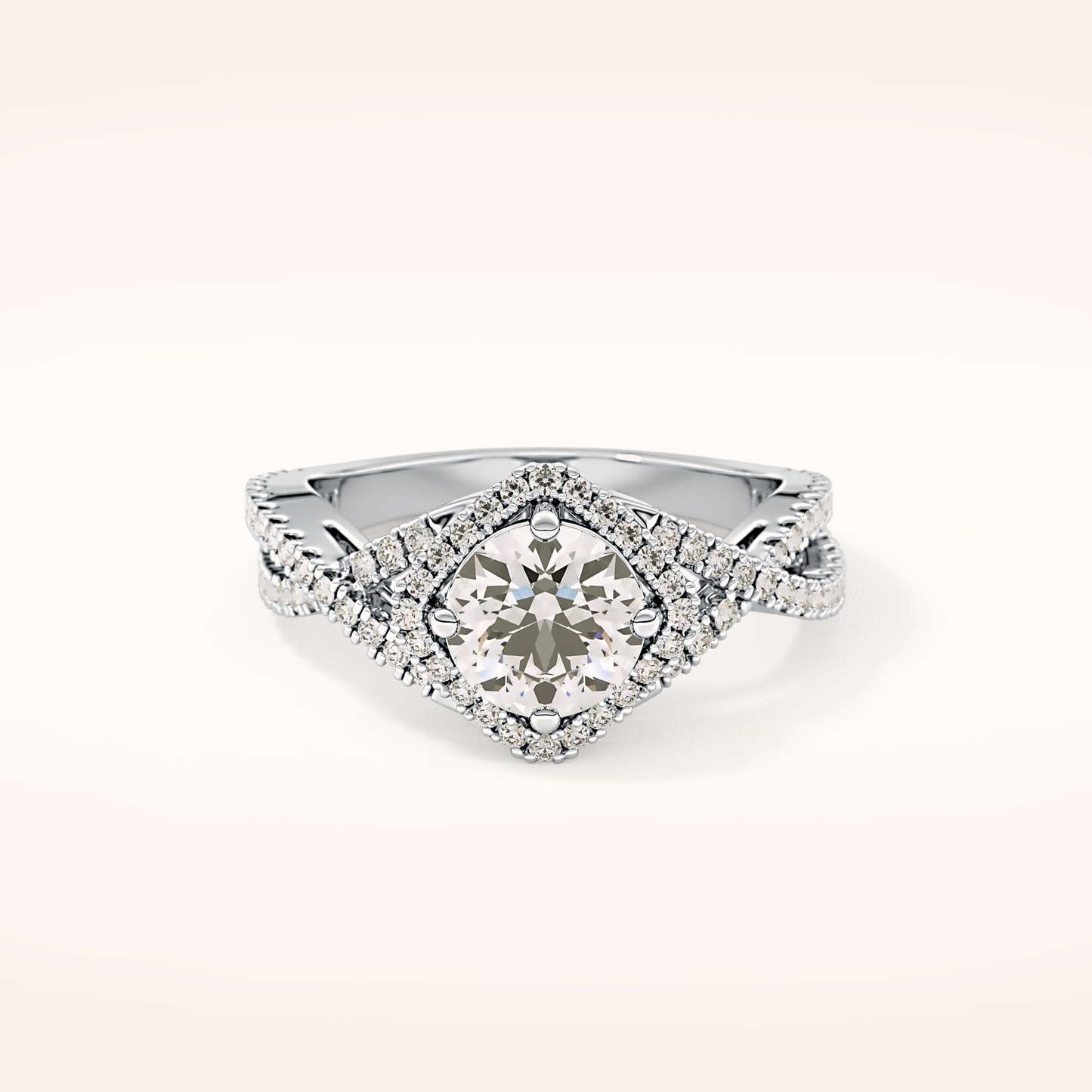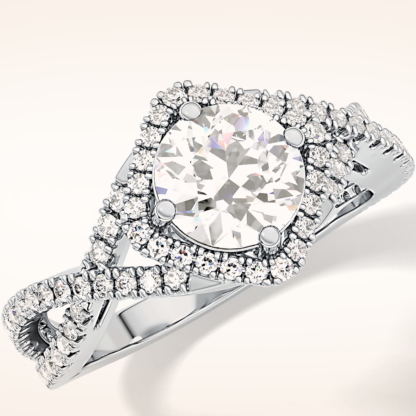 Round Halo Pave Lab Grown Diamond Engagement Ring