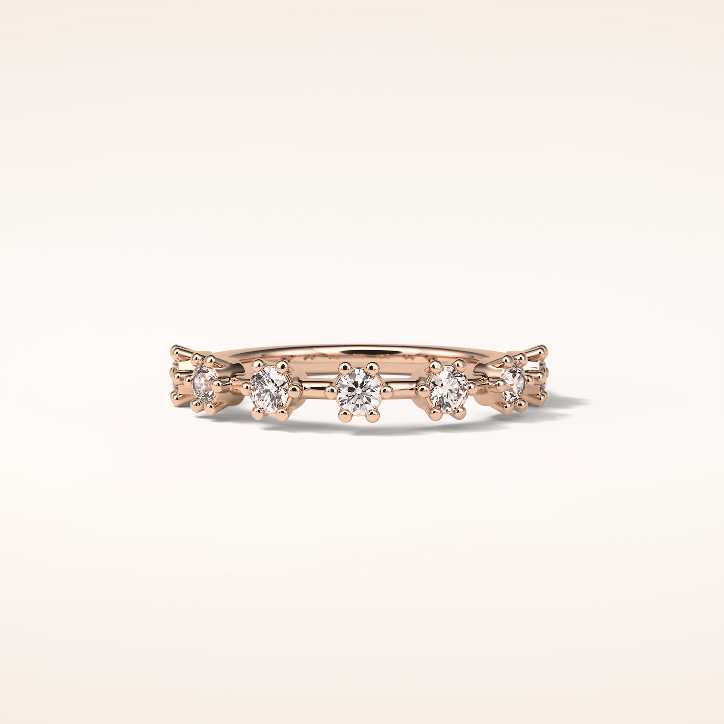 This exquisite wedding band is crafted from solid gold and offered in classic White Gold, warm Yellow Gold, and romantic Rose Gold. Choose between 14KT or 18KT gold, carefully selected to provide the ideal balance of durability, richness, and long-lasting beauty.