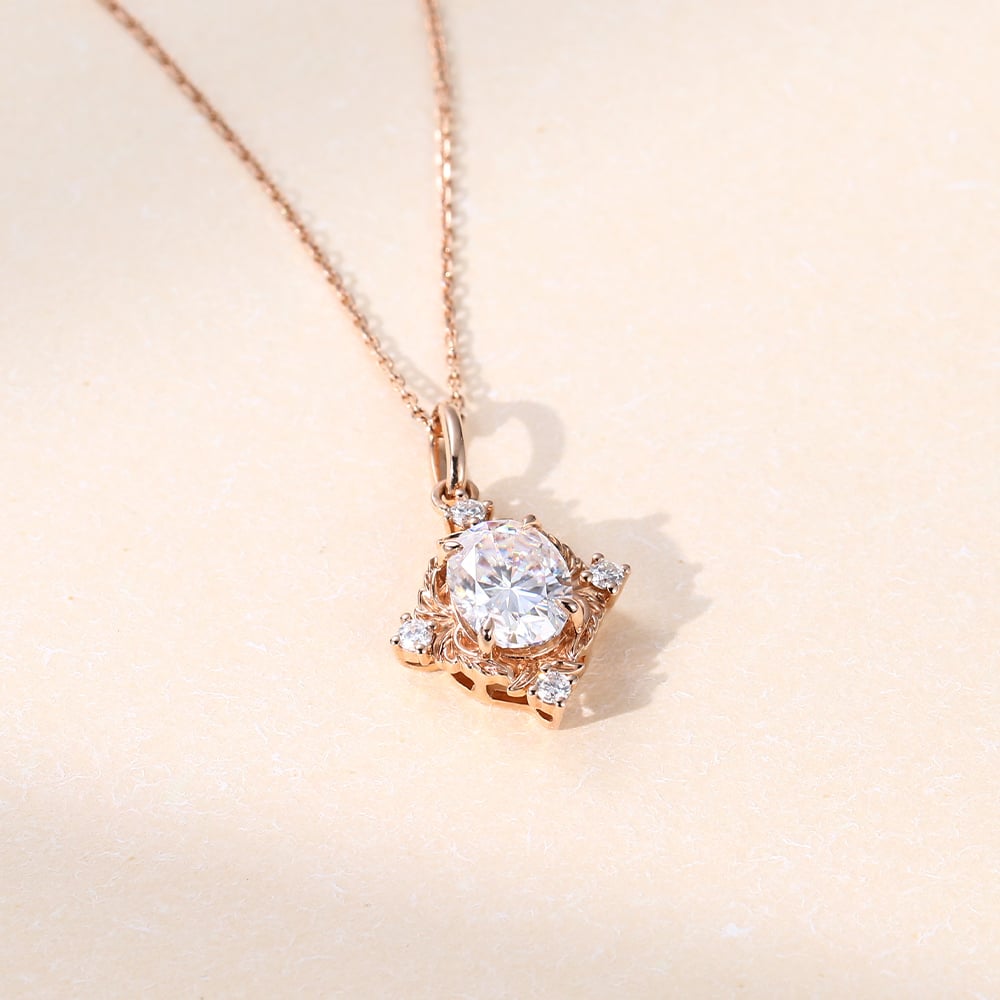 1.10 CT Oval Moissanite Diamond Art Nouveau Pendant Necklace in Solid Gold
