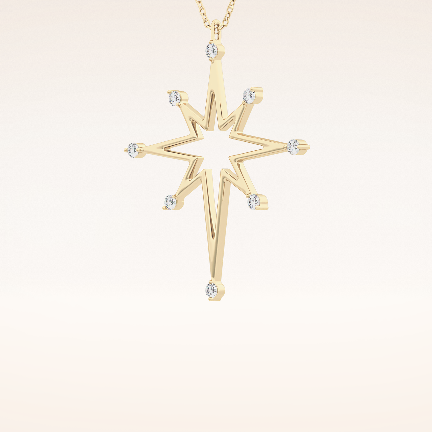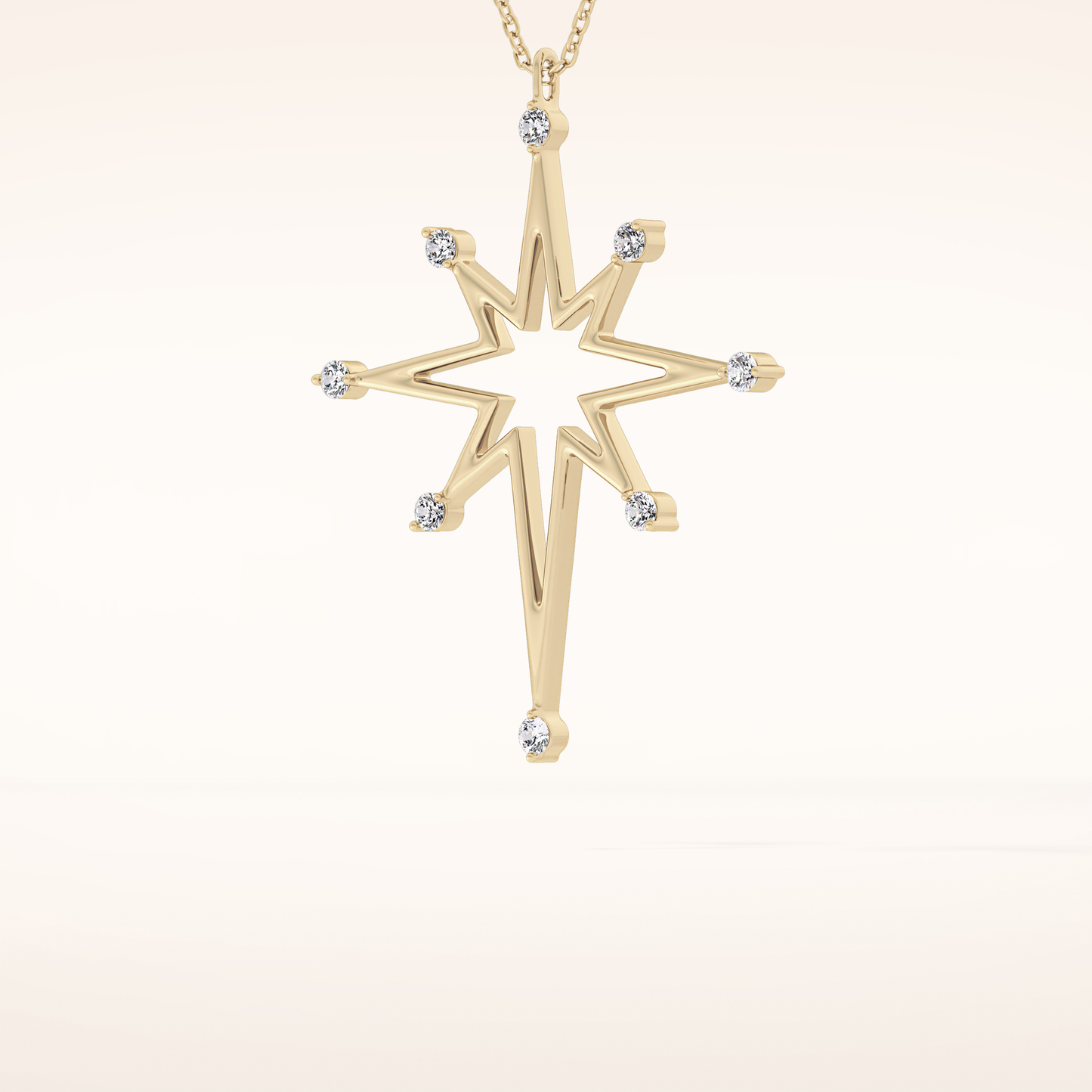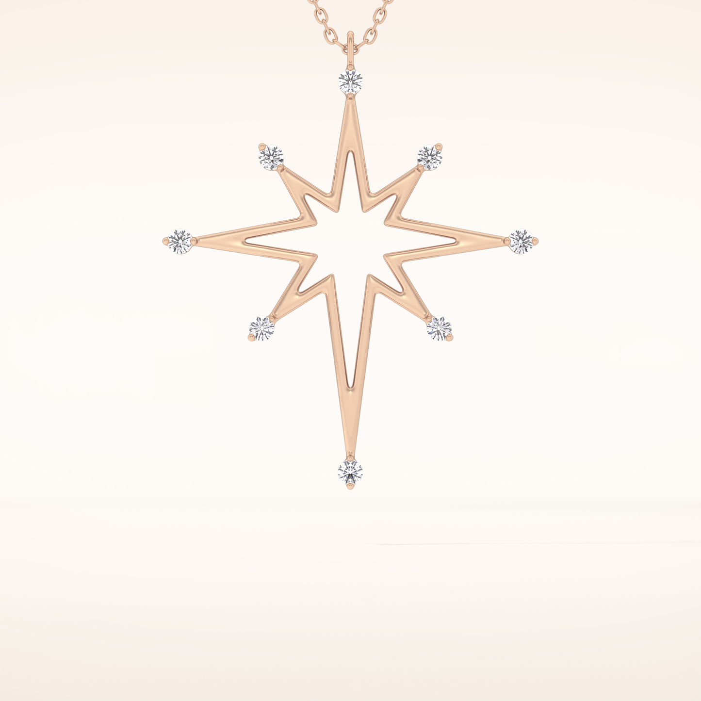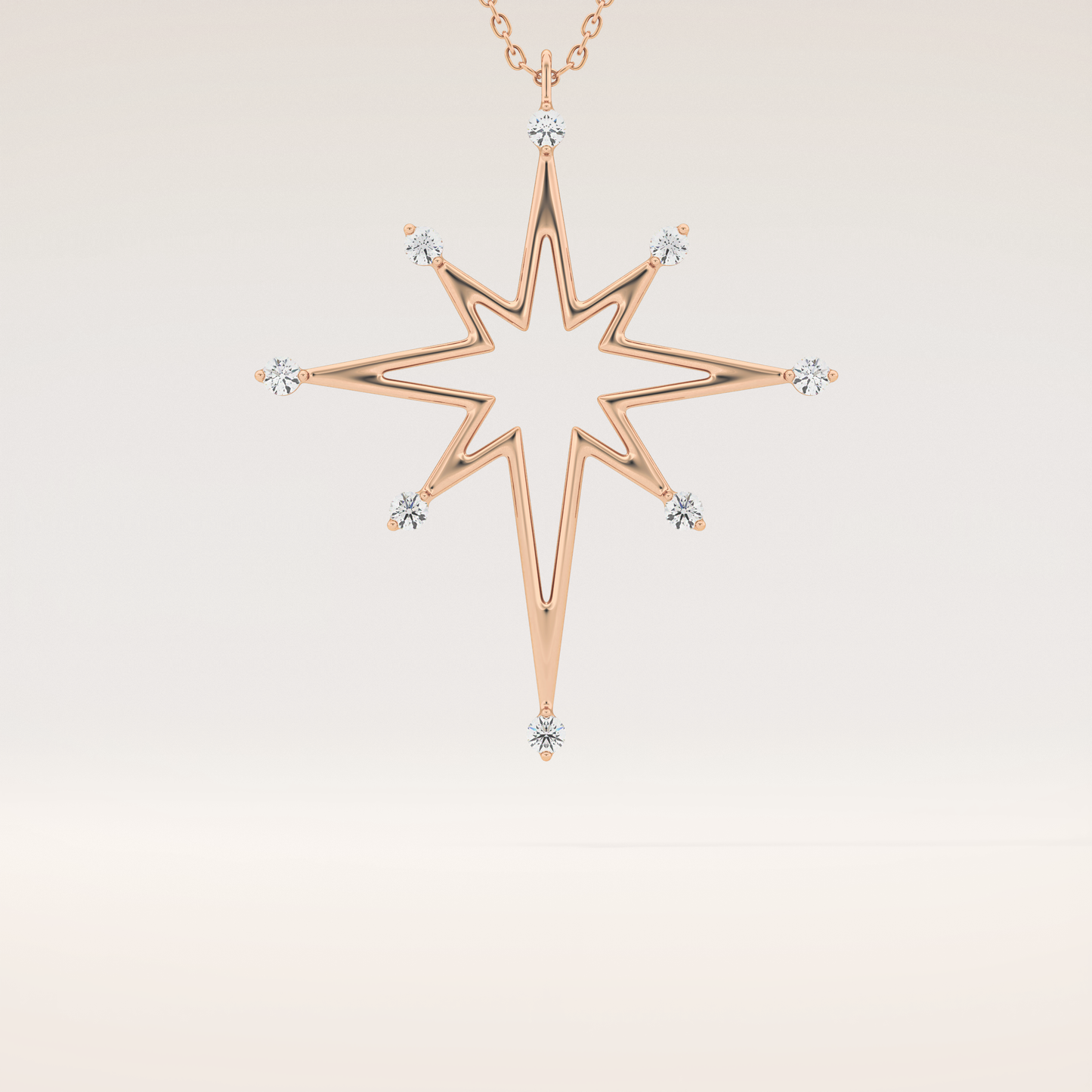 A timeless symbol of faith and elegance, this Star Shaped Pendant features a 0.17 CT Round-cut Moissanite, known for its brilliant sparkle and clarity. Crafted in your choice of solid 14K or 18K gold, it’s available in White, Yellow, or Rose Gold finishes. With DEF color and VVS clarity, this pendant offers a radiant yet meaningful statement—perfect for everyday wear or as a heartfelt gift.