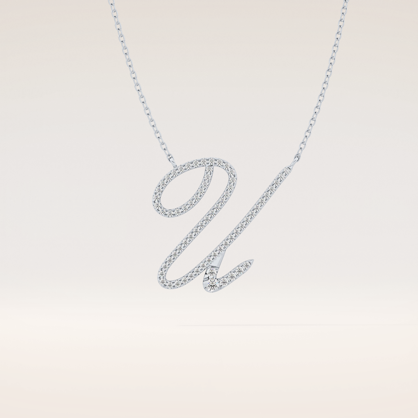 Solid Gold Moissanite U Initial Necklace – 0.157 Carat, Minimalist Design