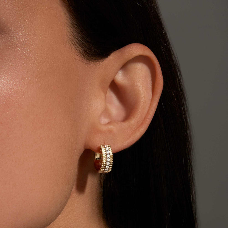 0.50 TCW Round Cut Moissanite Pirouette Huggies Earrings in Gold