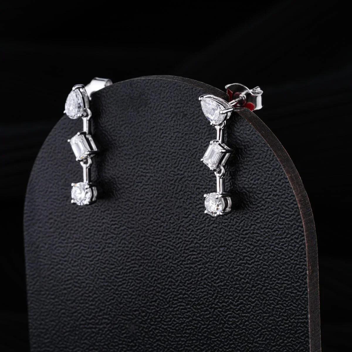 0.83 TCW Round, Pear & Emerald Cut Moissanite Earrings in Gold
