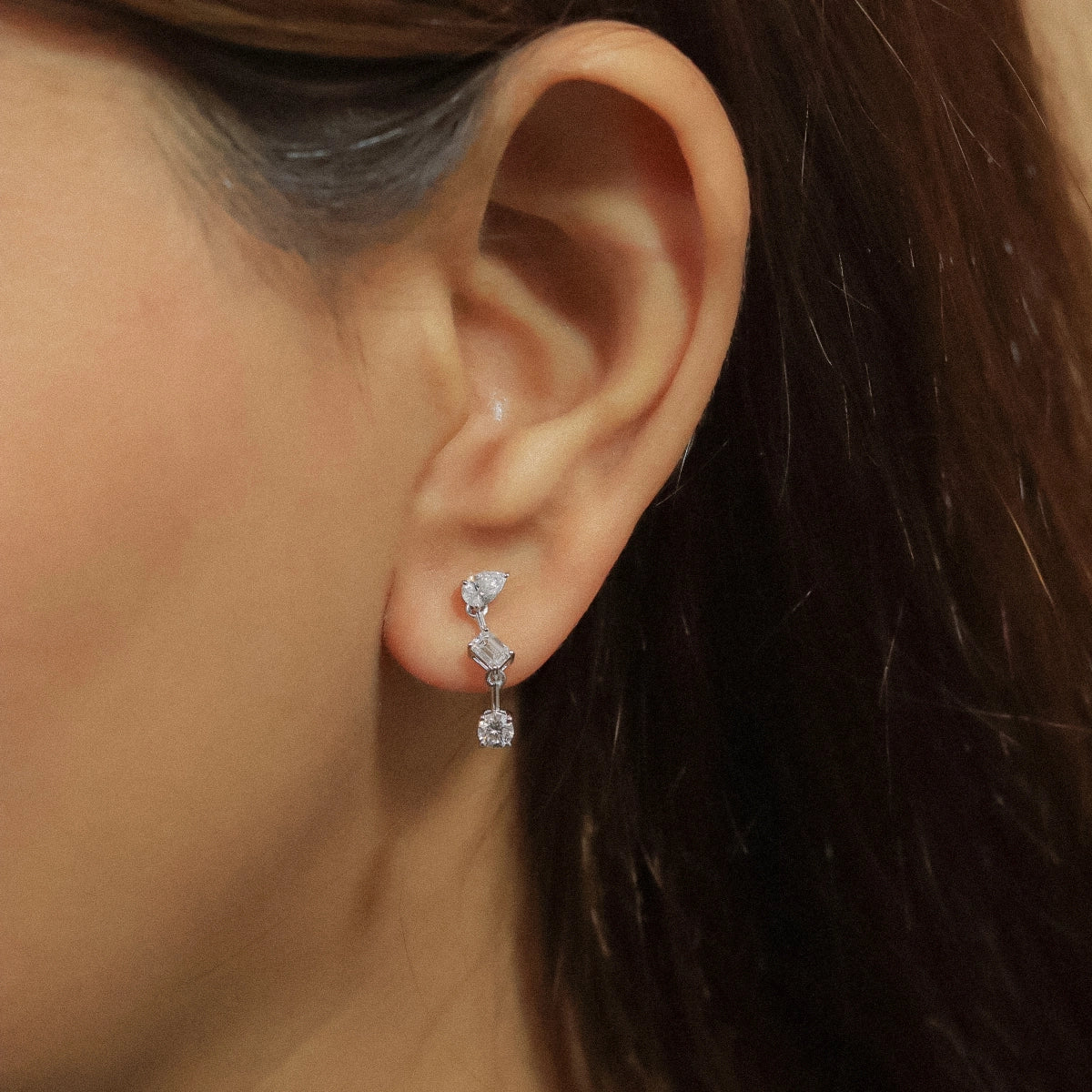 0.83 TCW Round, Pear & Emerald Cut Moissanite Earrings in Gold 3