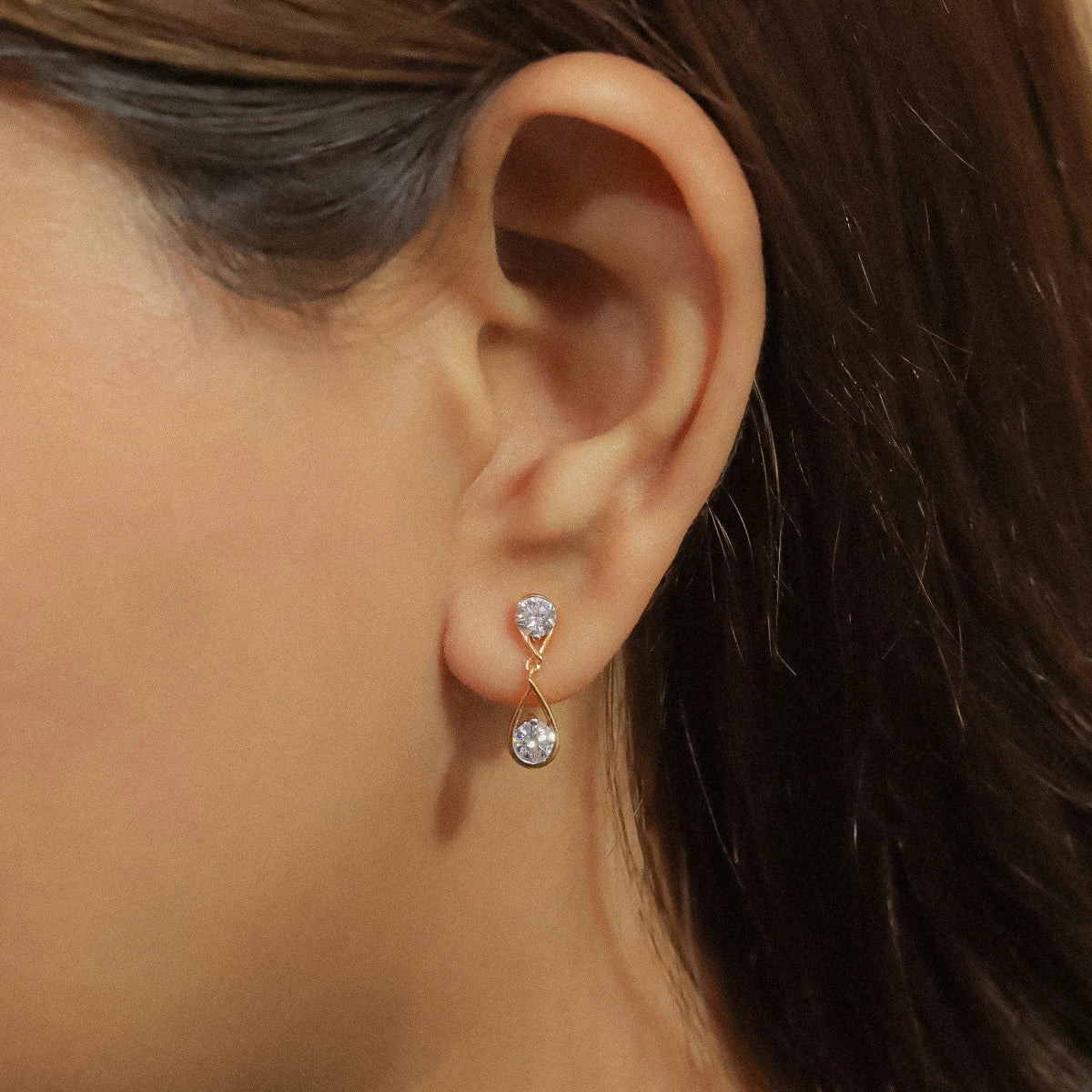 1.0 TCW Round Cut Moissanite Drop Earrings in Gold
