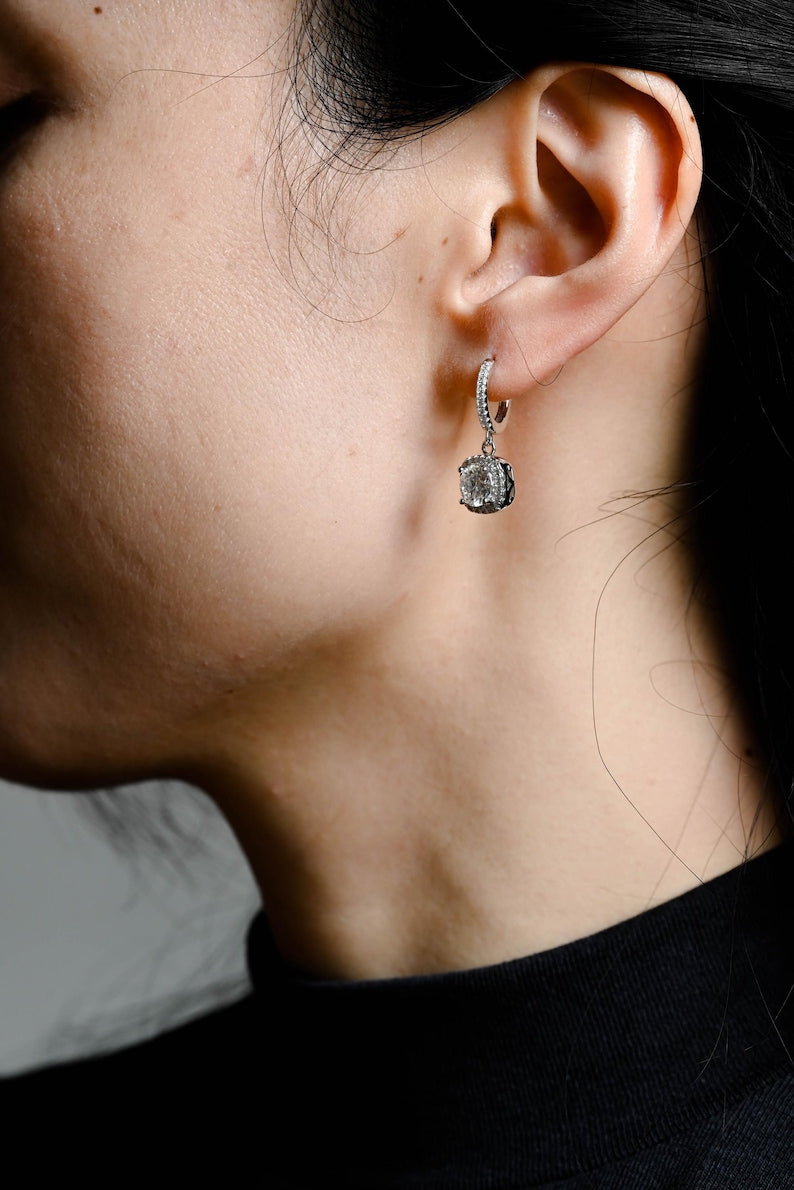 1.0 TCW Round Cut Moissanite Halo Drop Earrings in Gold 10