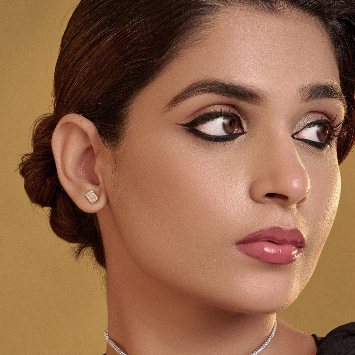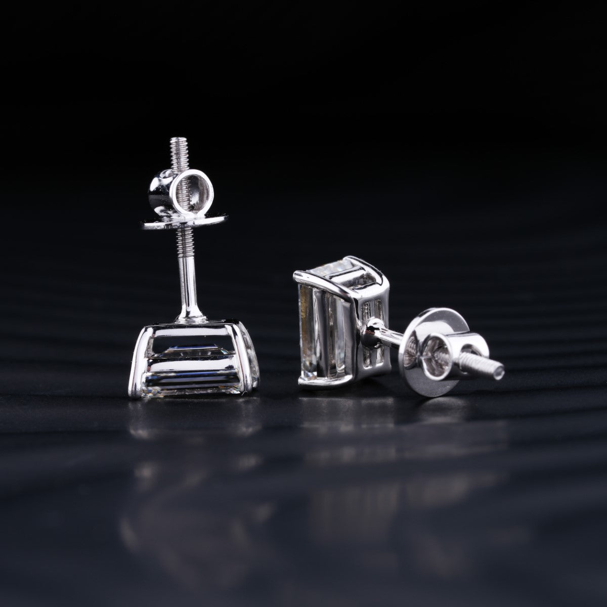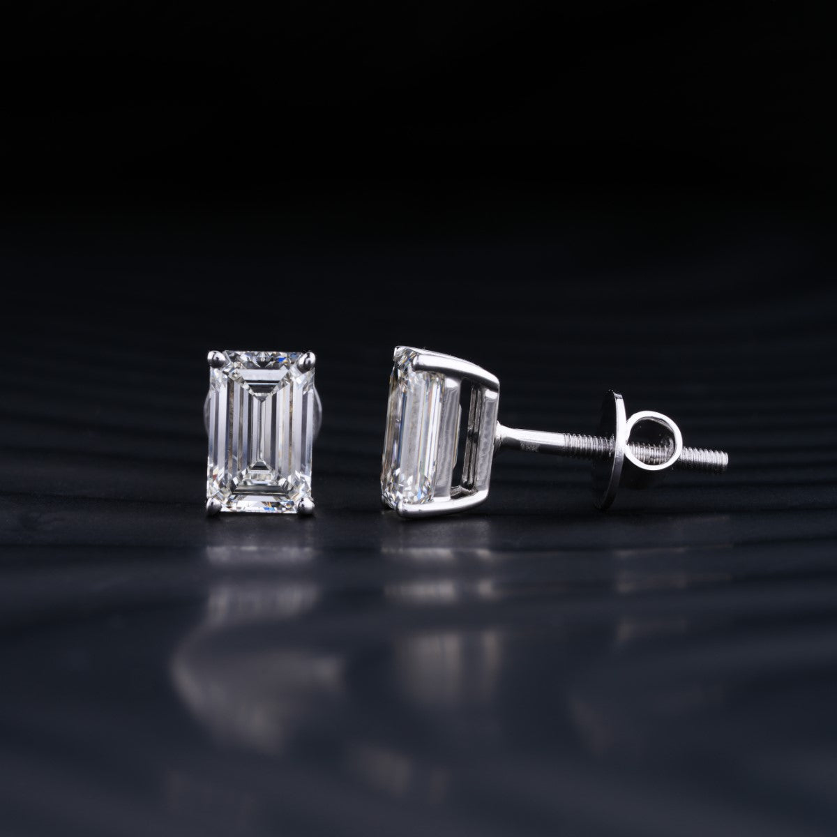 2.0 TCW Emerald Cut Moissanite Stud Earrings in Gold