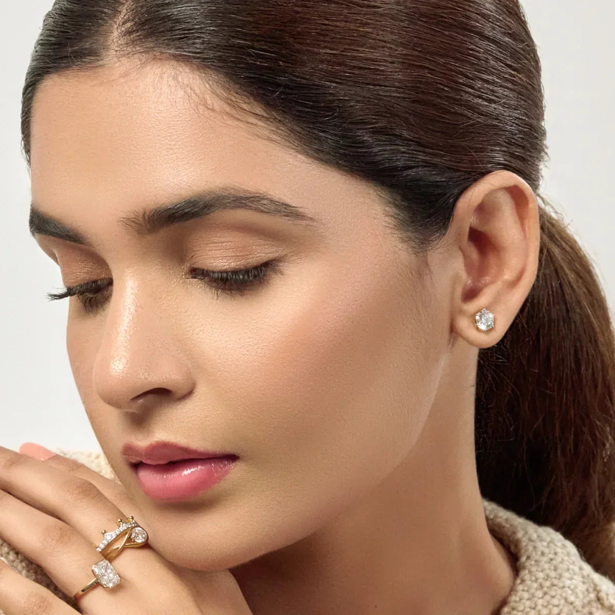 2.0 TCW Round Cut Moissanite Stud Earrings in Gold 4